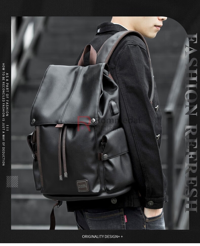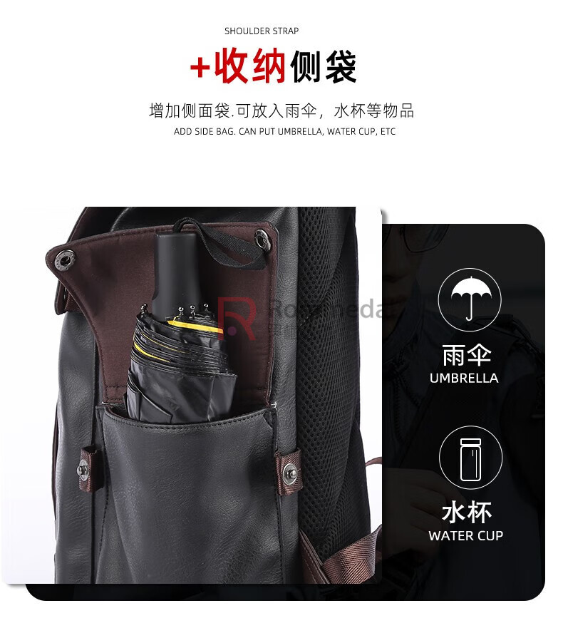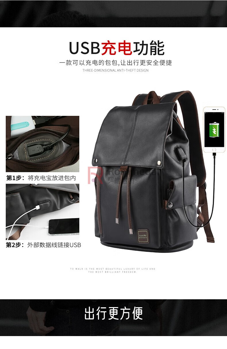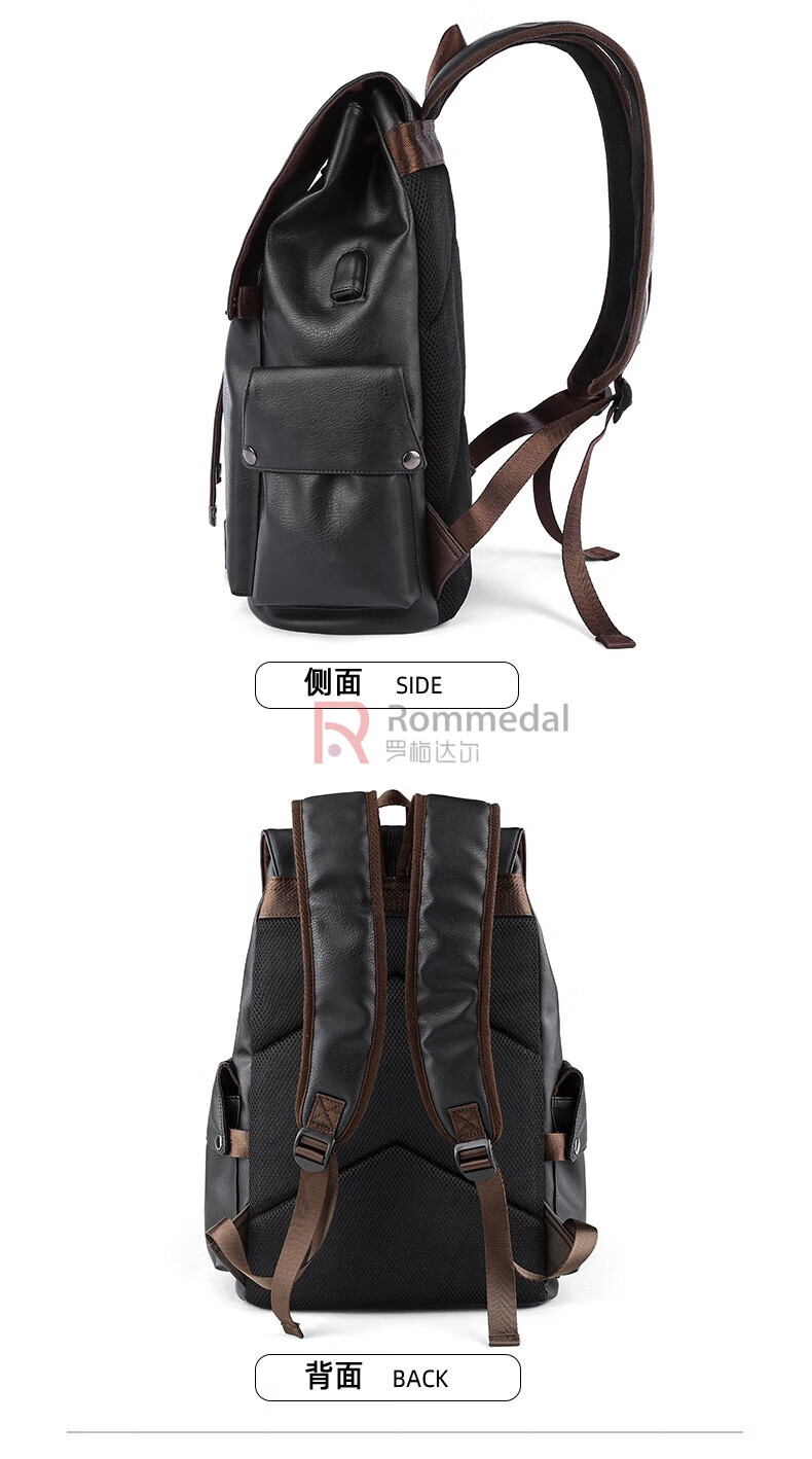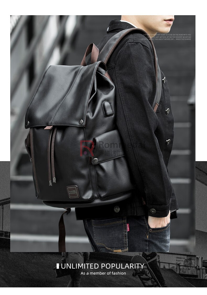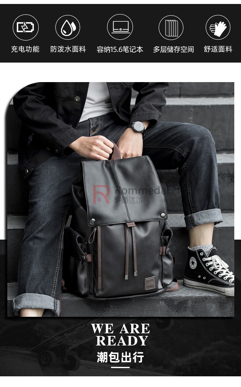 罗梅达尔(Rommedal)优质牛皮商务双肩包男士时尚大容量背包男新款旅行书包休闲双肩包 黑色【升级充电款】京仓次日达高44*长30*宽18CM