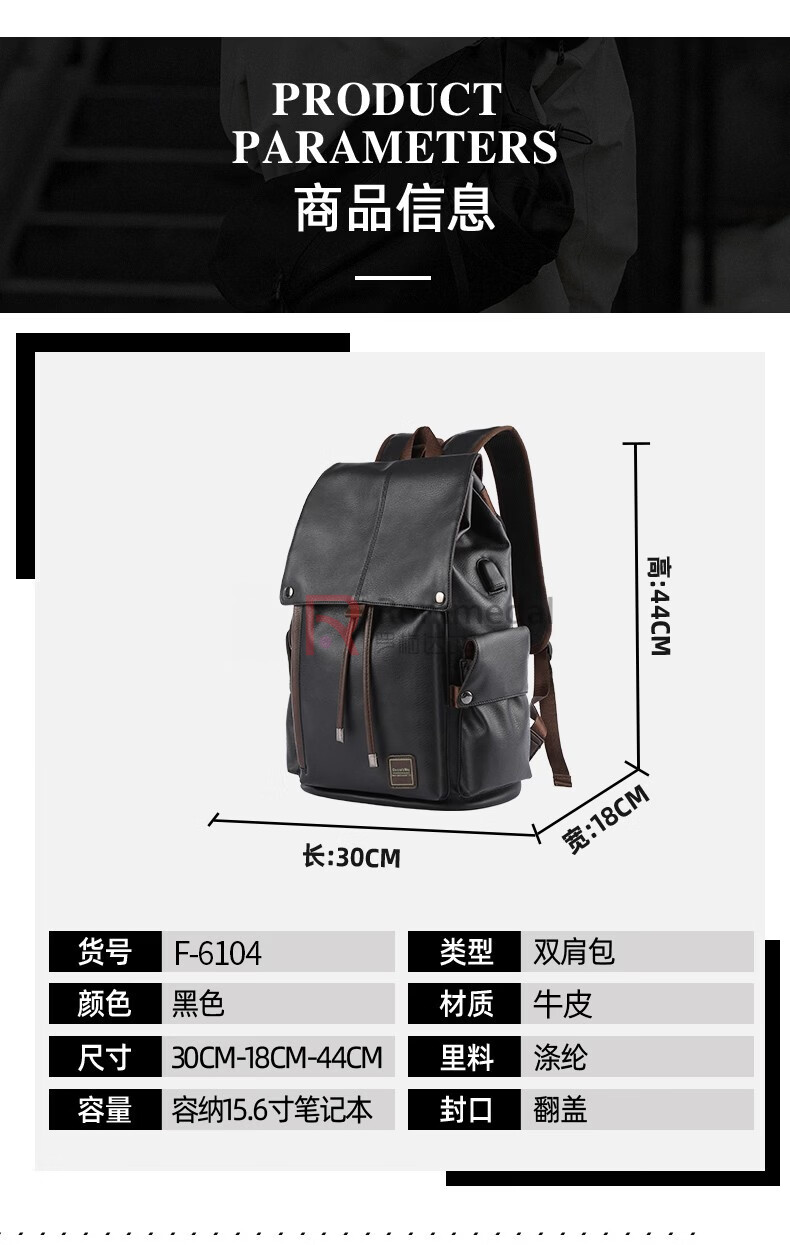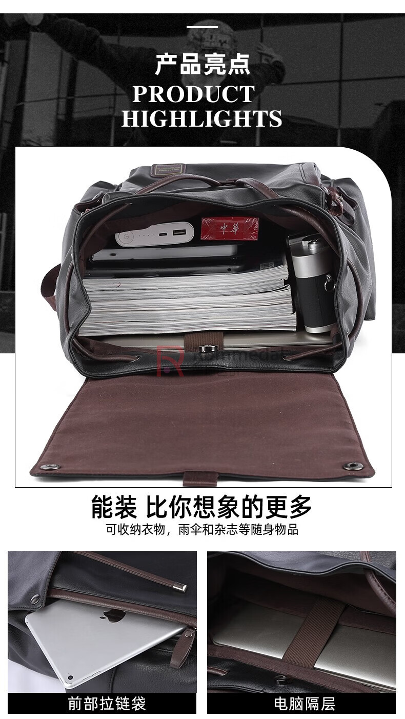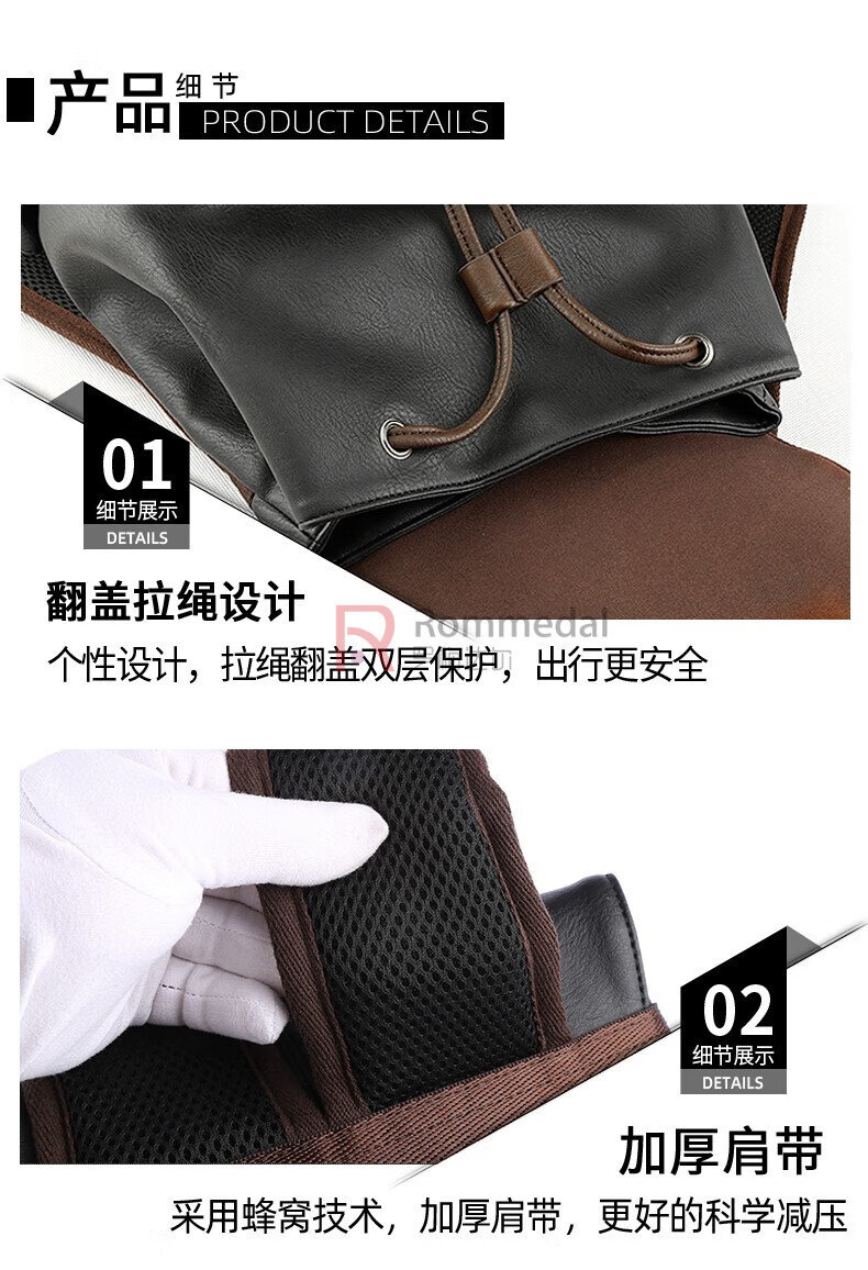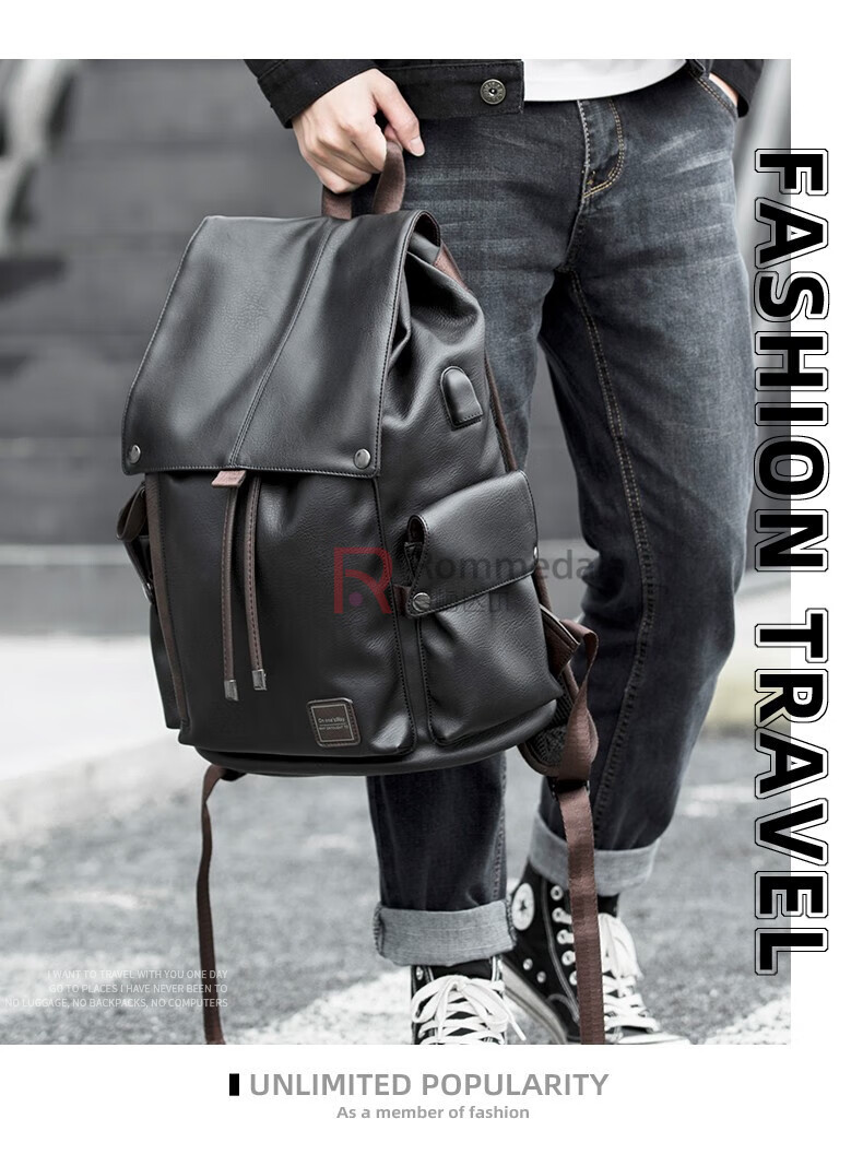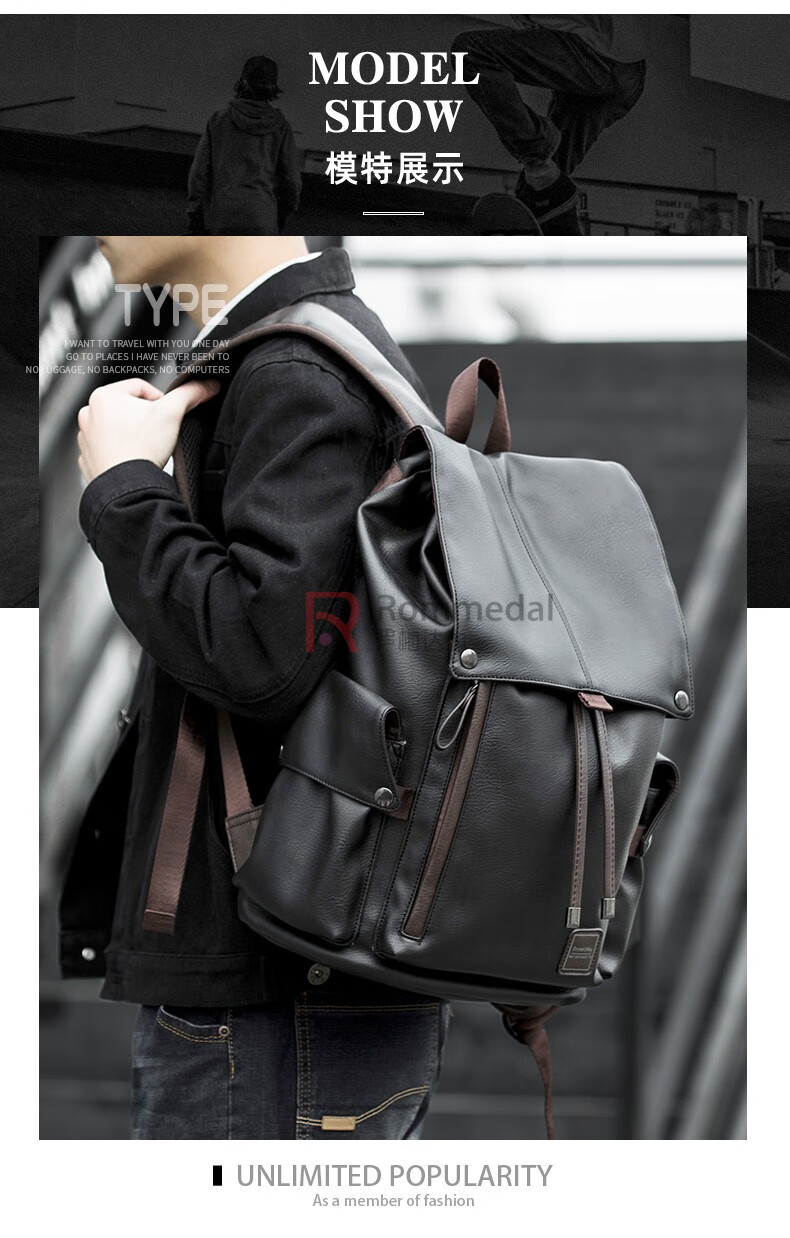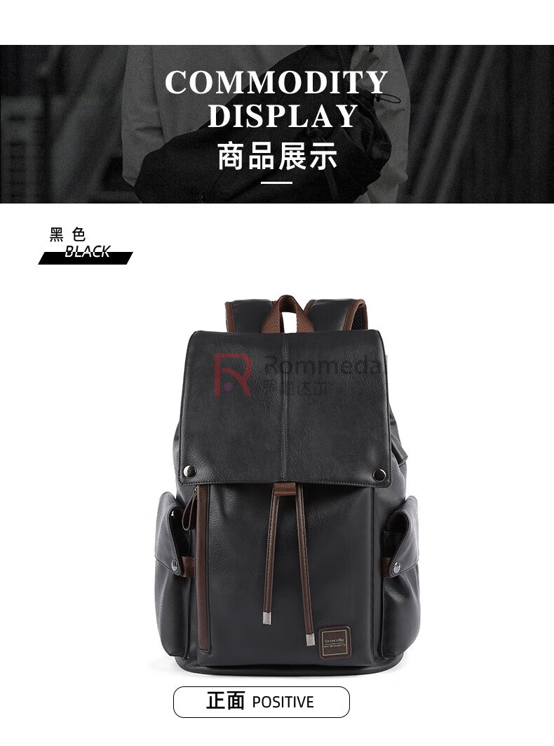罗梅达尔(Rommedal)优质牛皮商务双肩包男士时尚大容量背包男新款旅行书包休闲双肩包 黑色【升级充电款】京仓次日达高44*长30*宽18CM