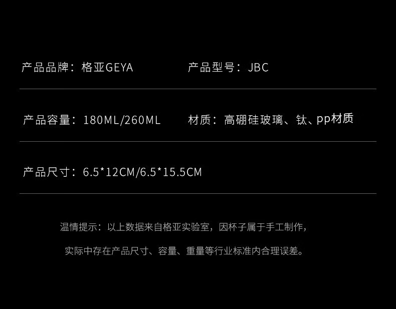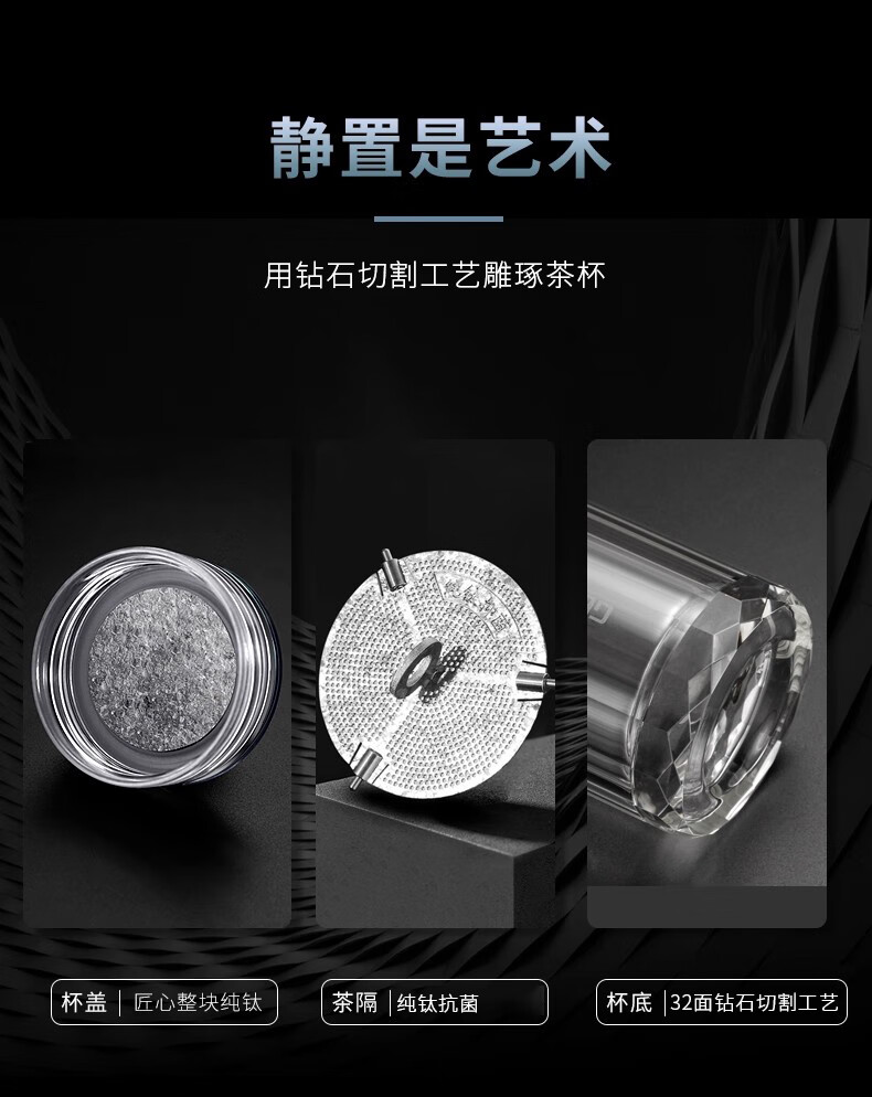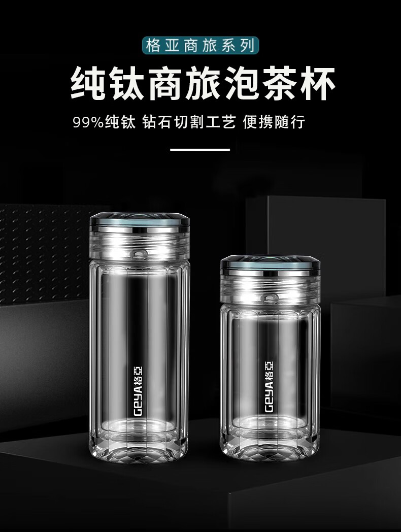 格亚(GEYA)高端纯钛双层玻璃杯男女士茶杯商务玻璃泡茶杯抗菌办公水杯礼盒装 钛晶款180ml 高档皮盒