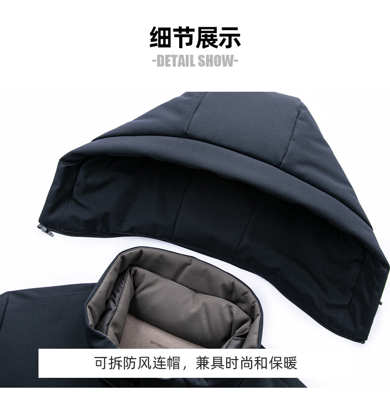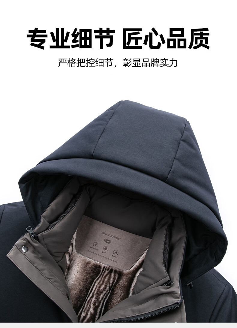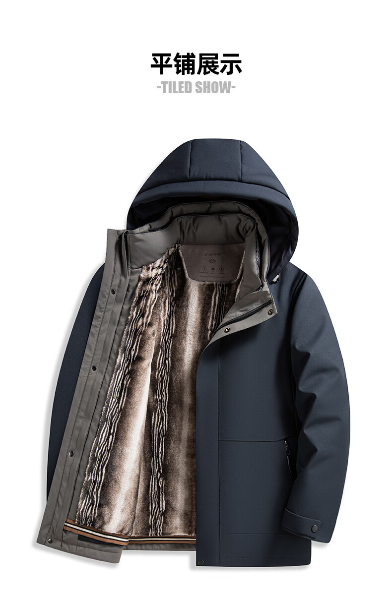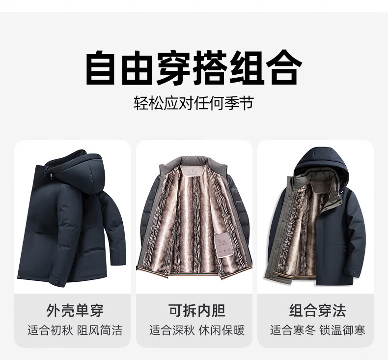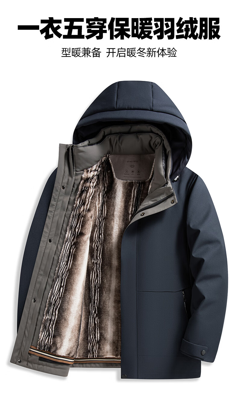罗蒙【一衣多穿】中长款鹅绒羽绒服男冬季新款可脱卸帽保暖羽绒外套男 藏青色 XL (180) 【建议135-150斤】