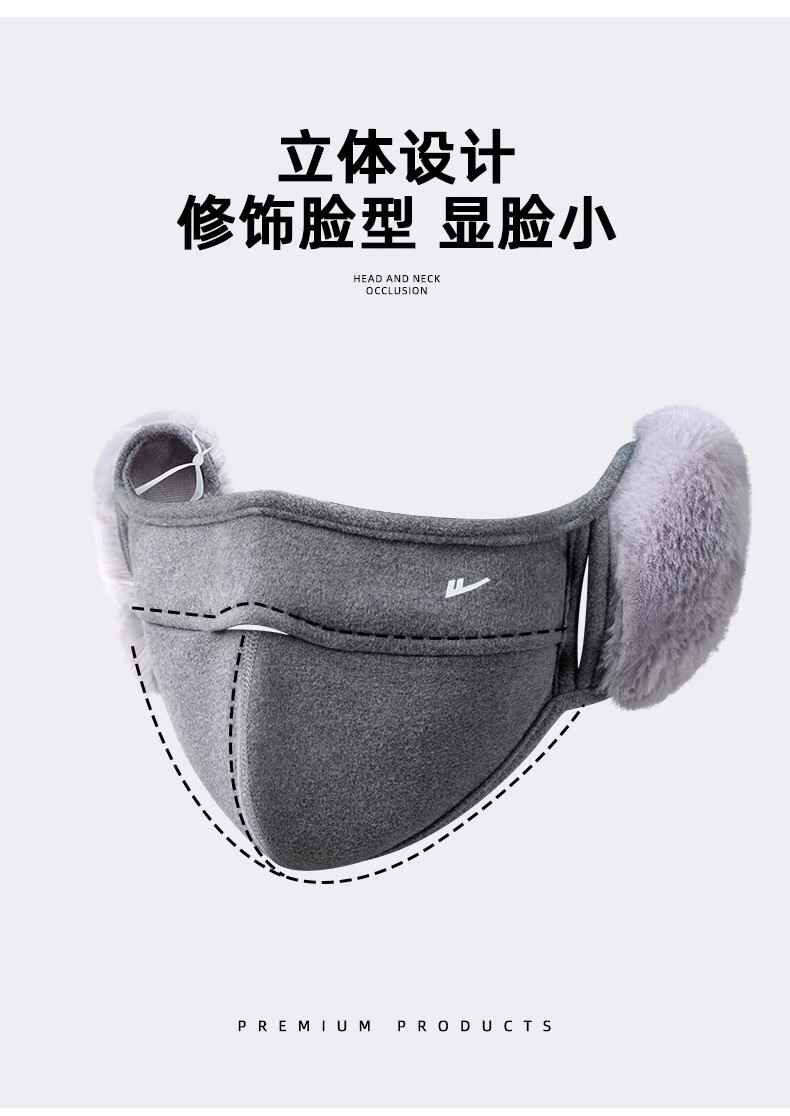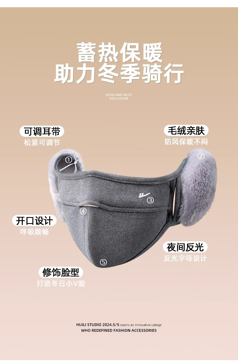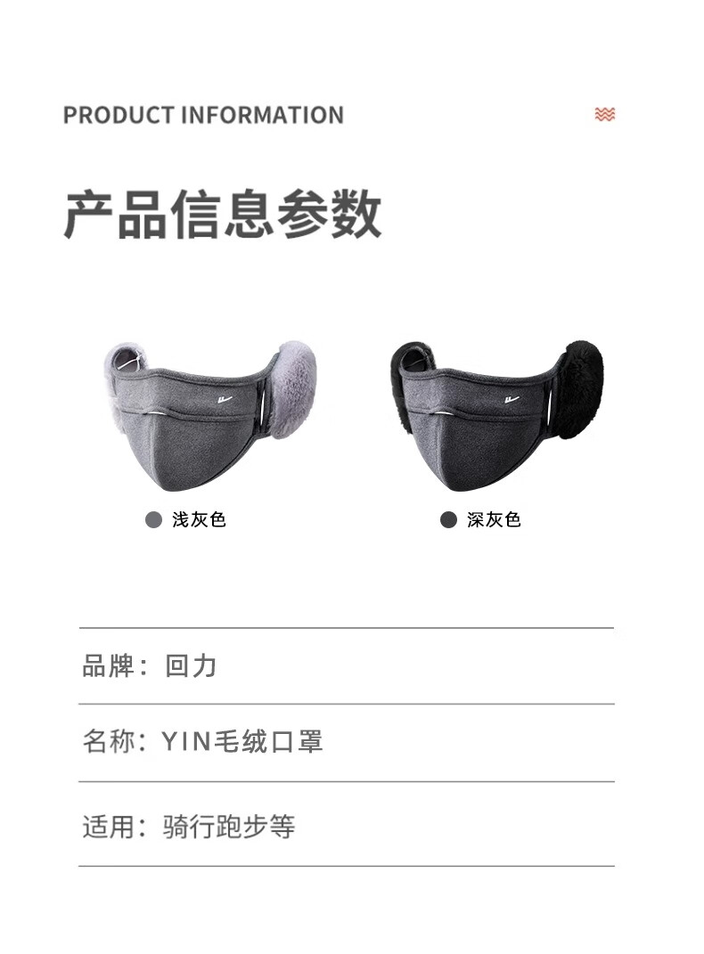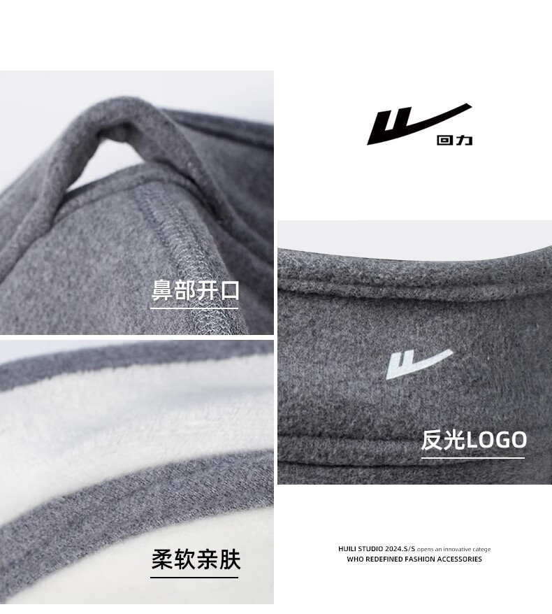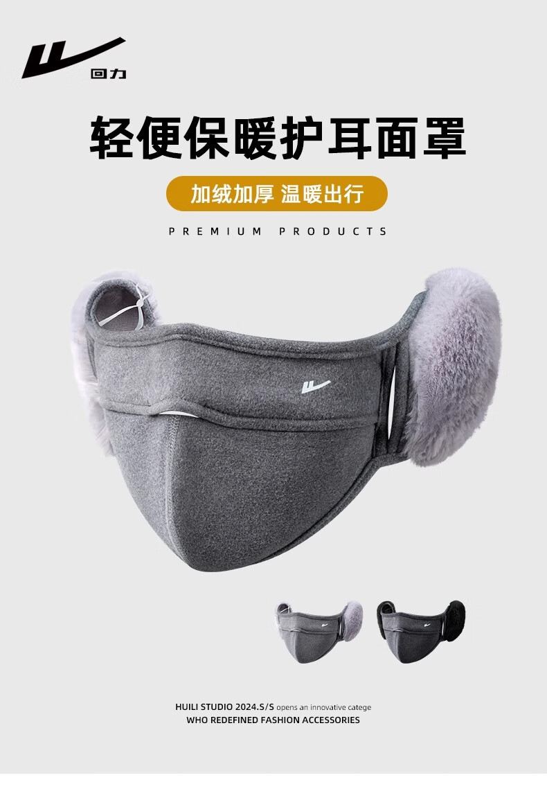 回力口罩男秋冬季护脸骑行护耳护眼角保暖面罩女毛绒高颜值口罩 毛绒口罩-黑色M均码