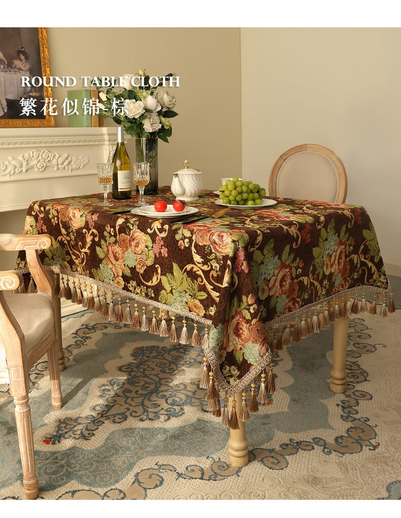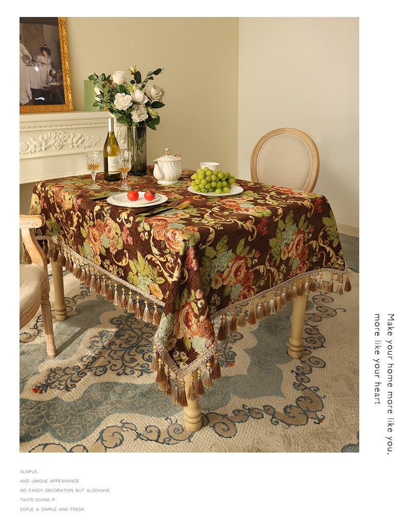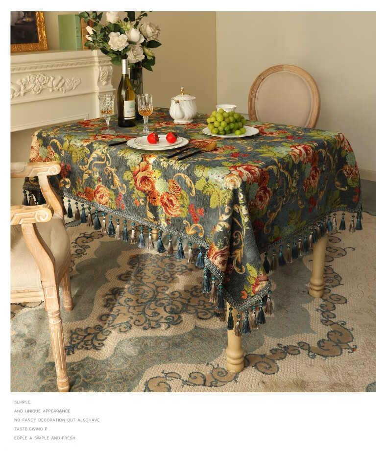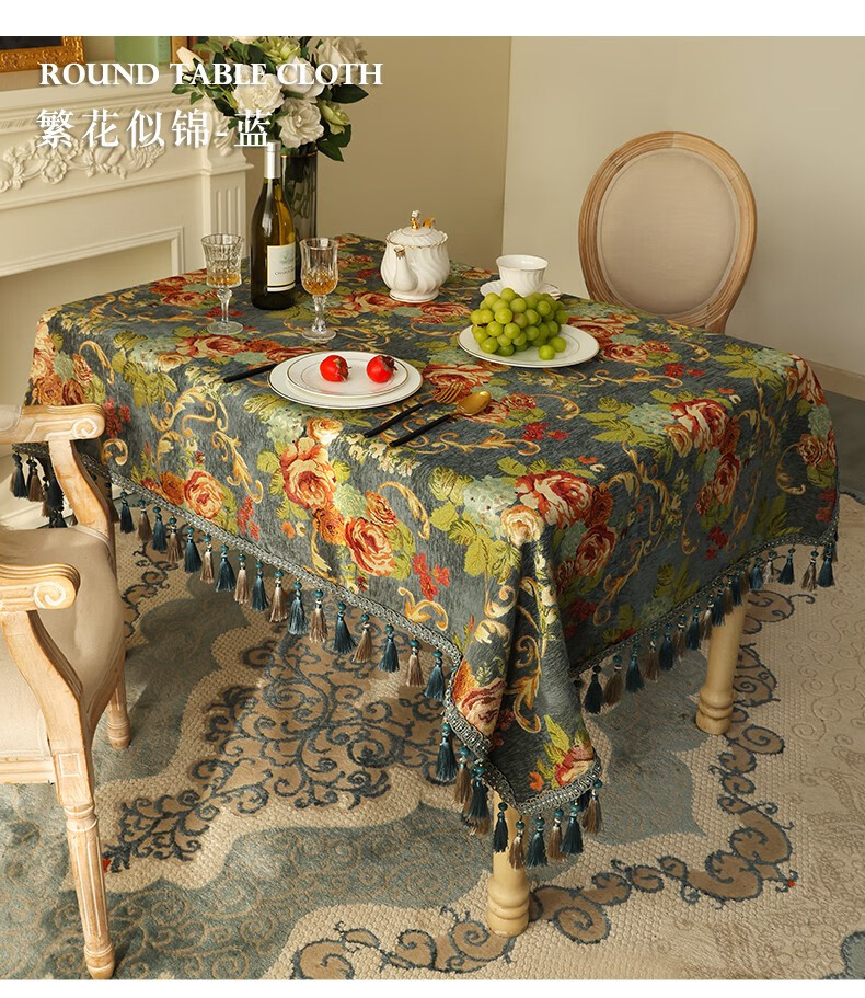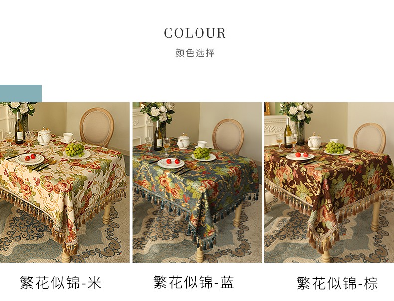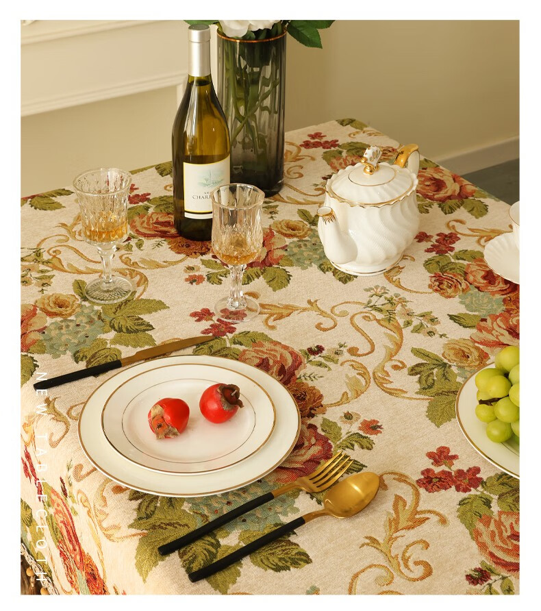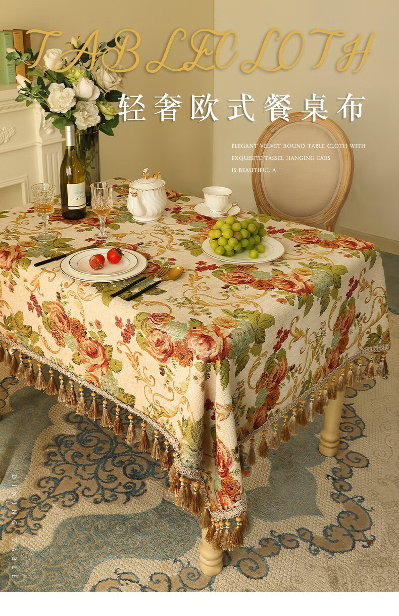 乐唯仕欧式长方形餐桌桌布轻奢高级感家用客厅茶几布布艺台布高档餐桌布 繁花似锦-米(吊穗款) 140*220cm(稍大餐桌)