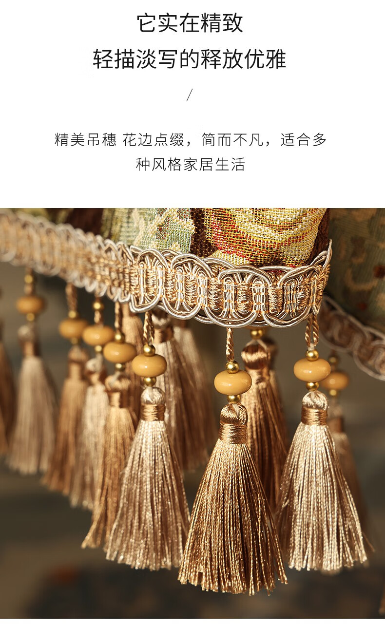 乐唯仕美式桌旗轻奢高端餐桌旗布高级感长条茶几布欧式餐边柜斗柜盖布巾 繁花似锦-米(高定款) 35cm*210cm(尺寸包含吊穗)