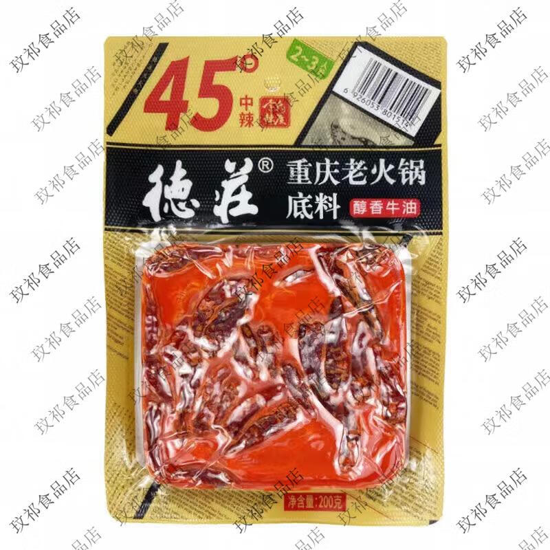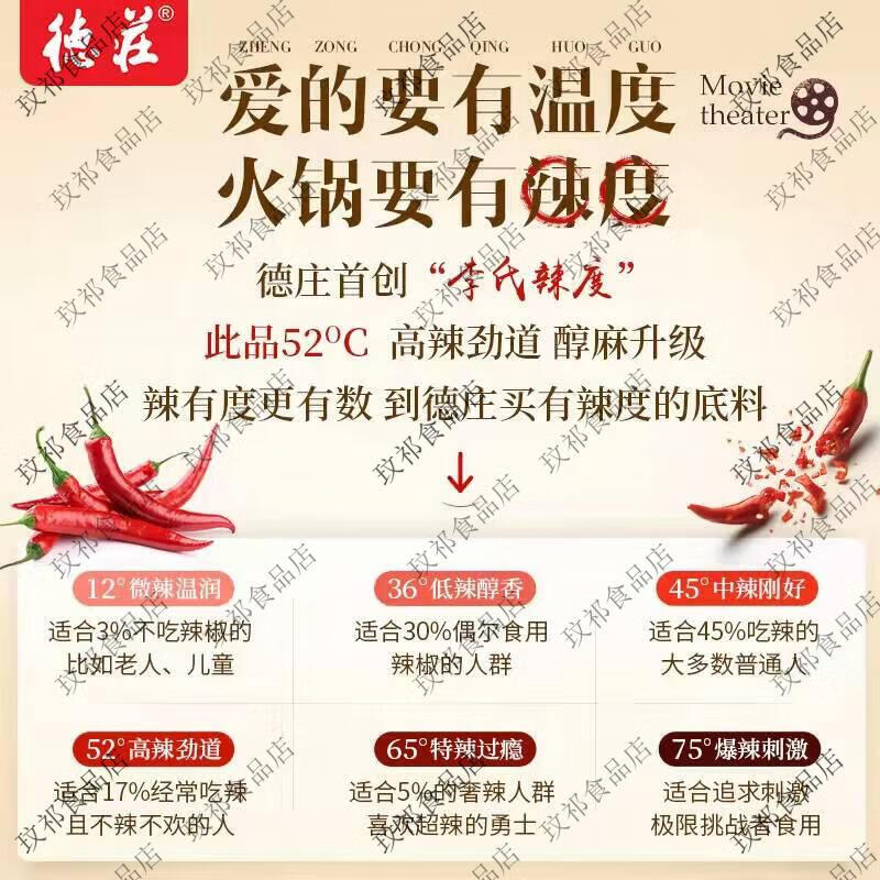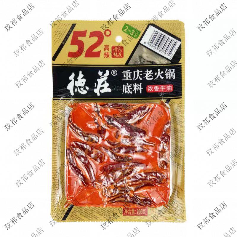 德庄重庆火锅底料52度200克高辣李氏辣度老火锅底料麻辣牛油底料 德庄200克52度*1袋