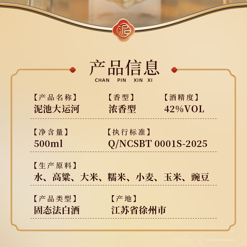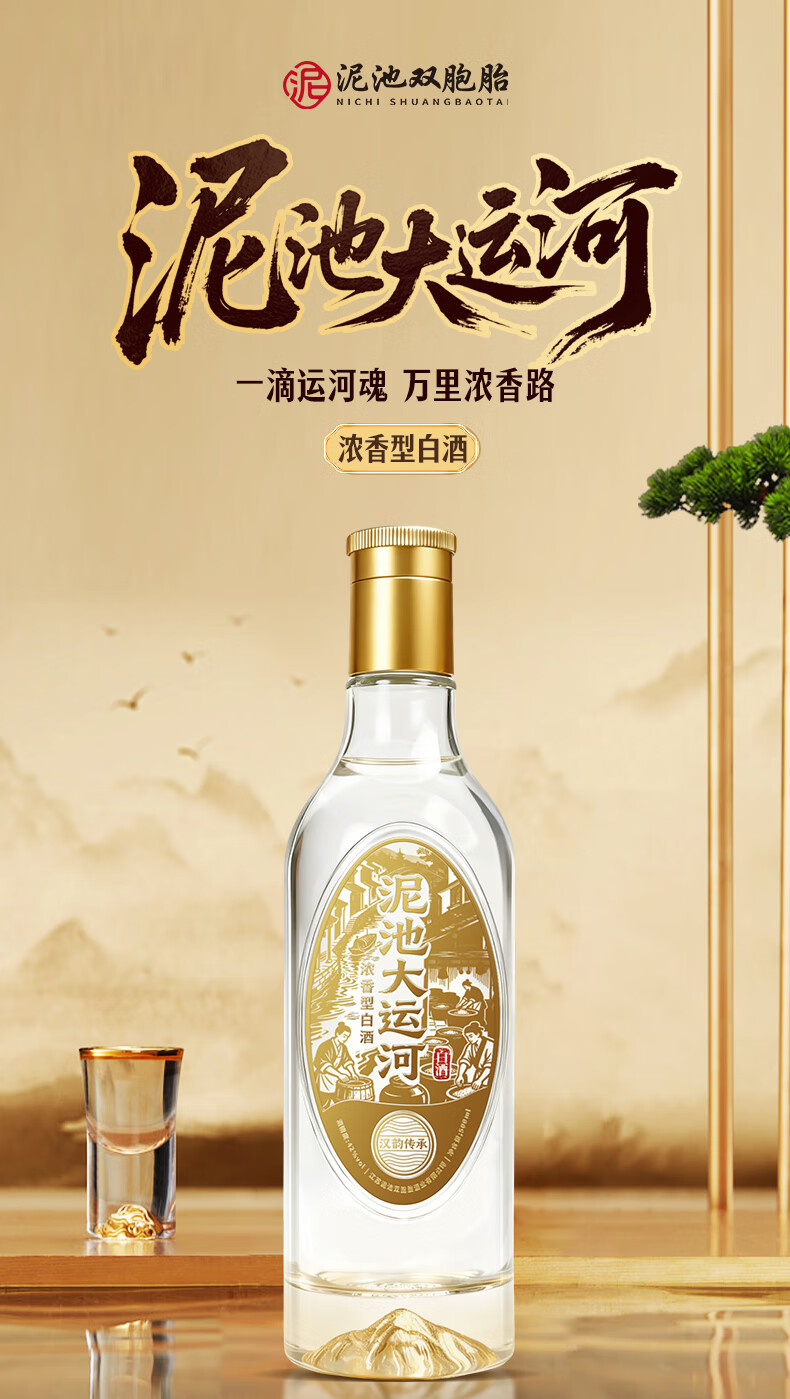 泥池双胞胎大运河固态法白酒纯粮酿42度500ml浓香型光瓶口粮酒徐州特产 42度 500mL 1瓶 【大运河】