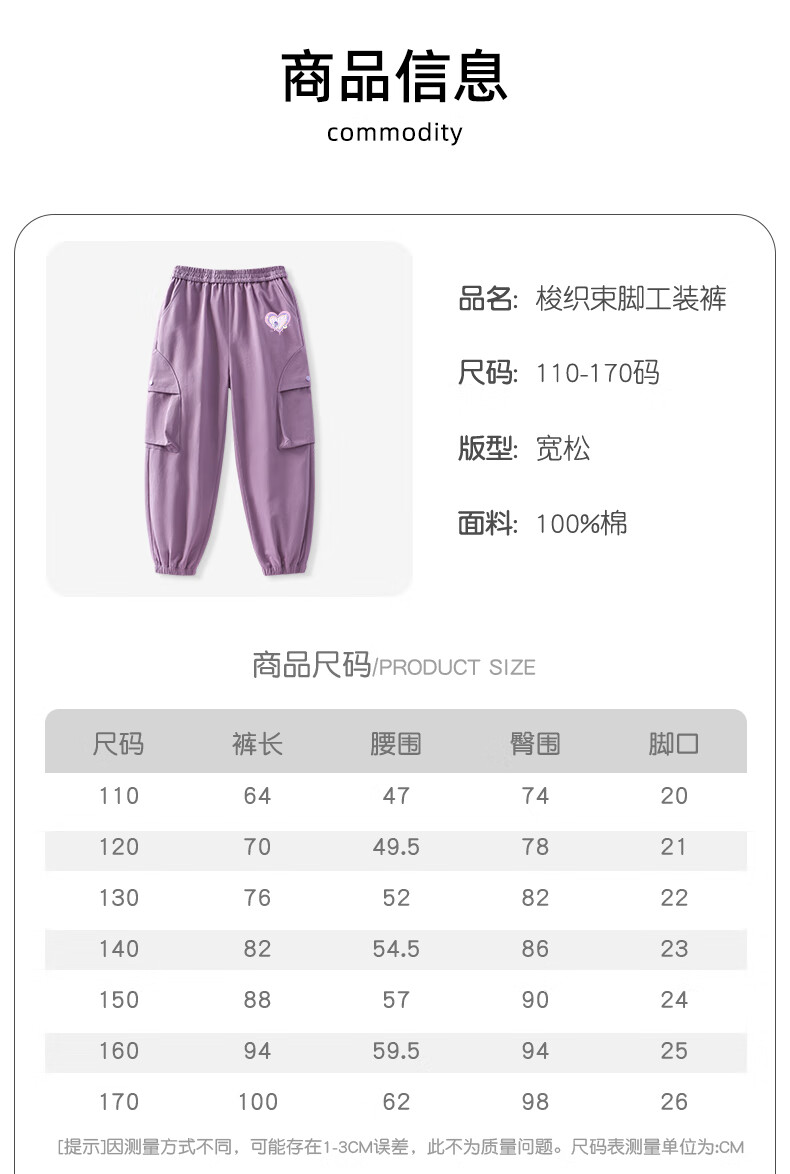 小马宝莉(MY LITTLE PONY)女童工装裤子2025新款儿童秋季休闲运动裤大童洋气束脚裤 pink小马/粉 140 140cm