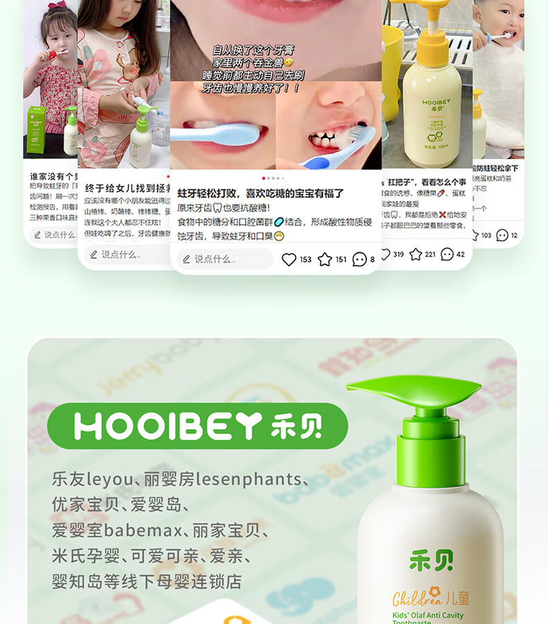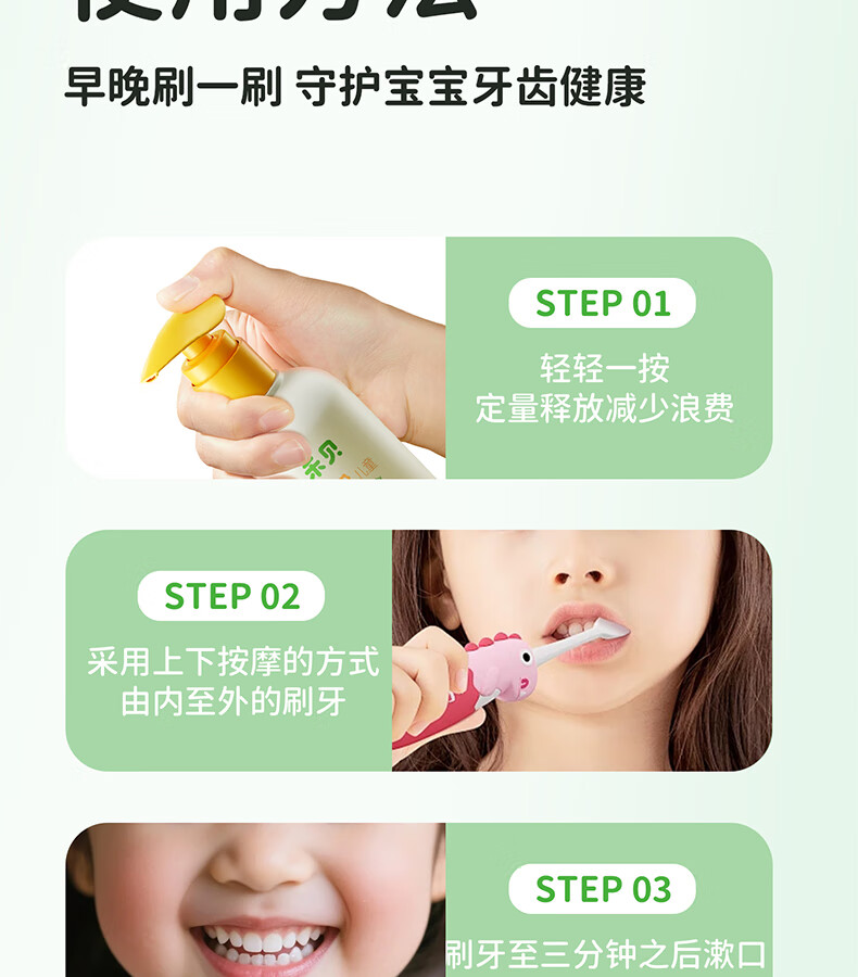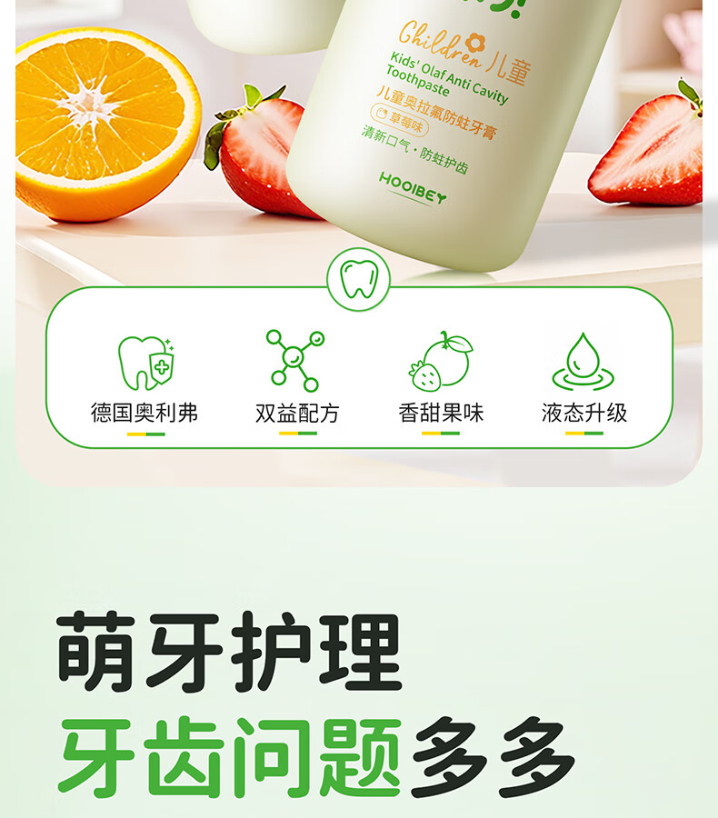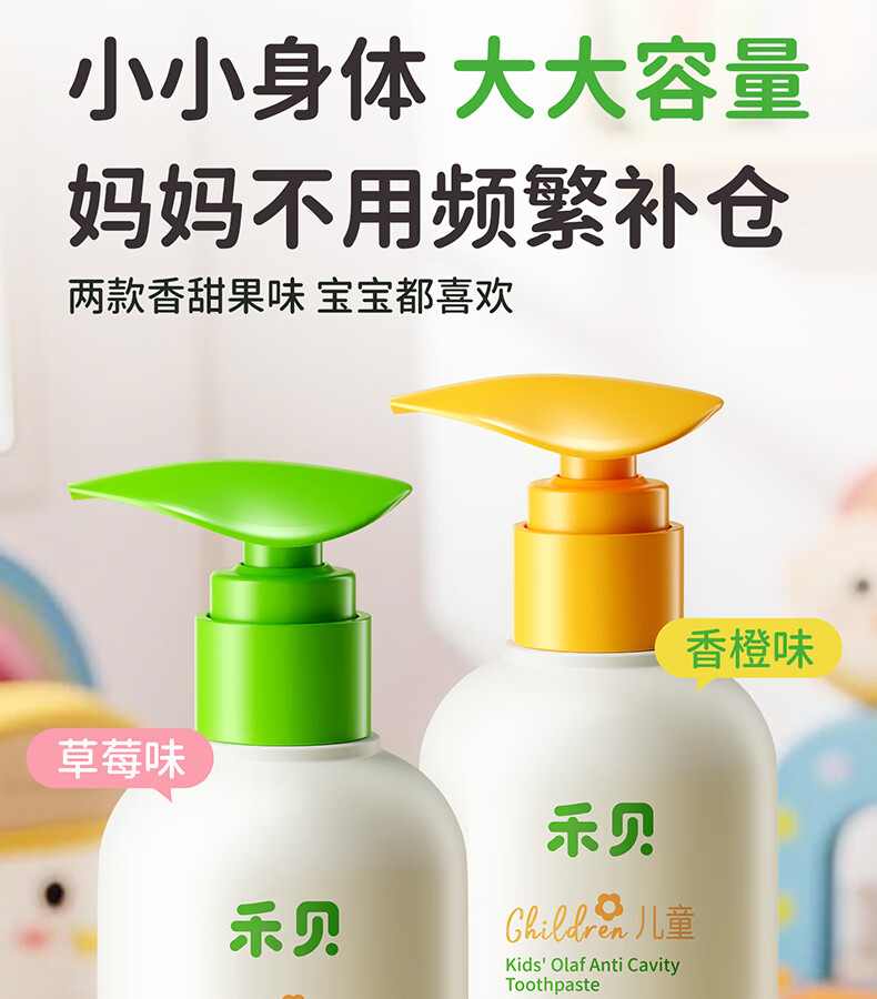 禾贝奥拉氟儿童牙膏防蛀防龋固齿1-12岁换牙期果味不辣口160g大容量 【拍1发2】香橙味*1+草莓味*1
