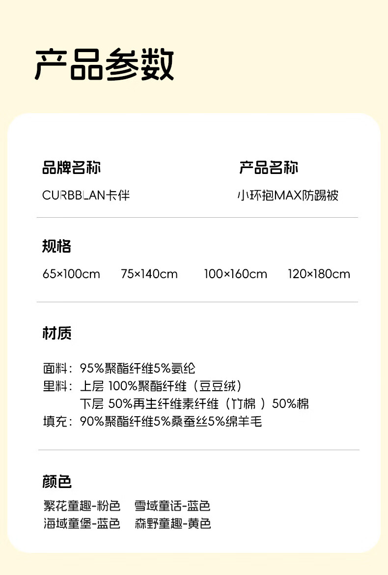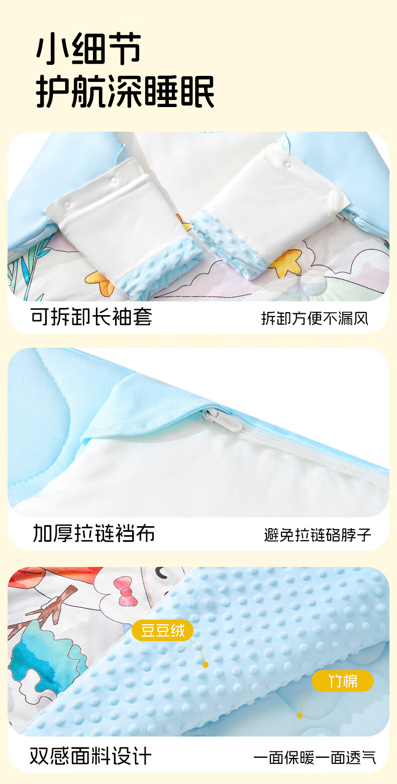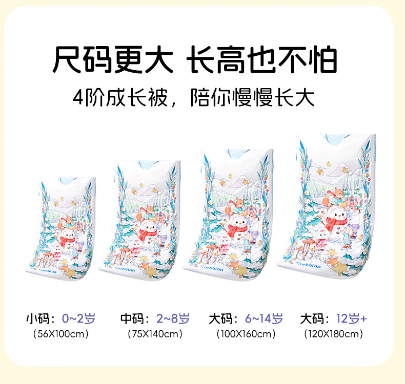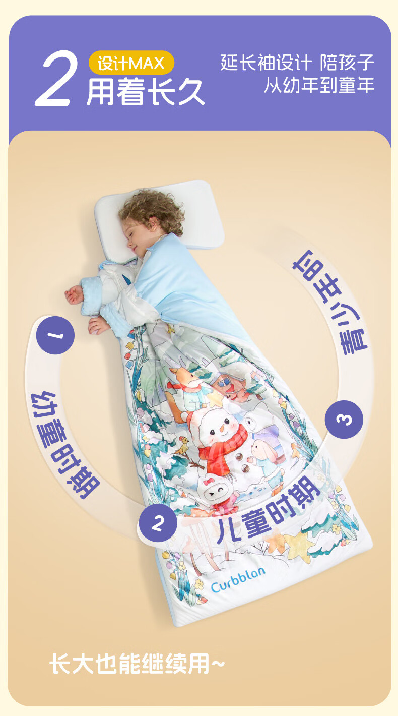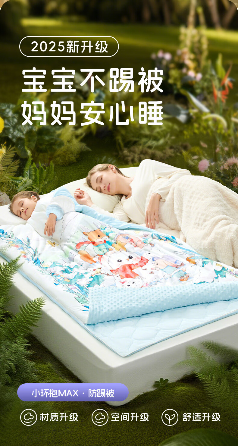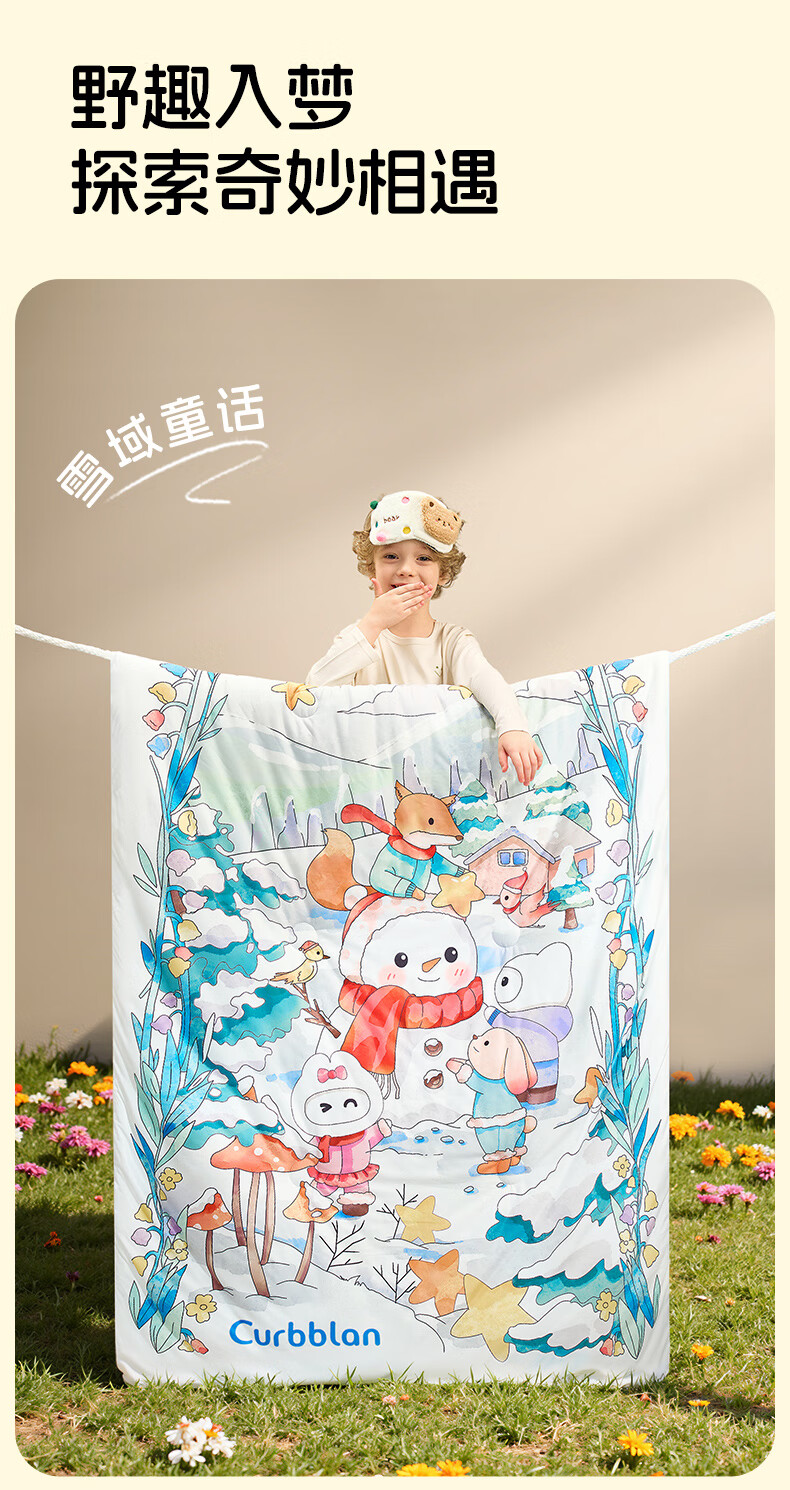 卡伴儿童防踢被【吉娜宝宝同款】秋冬加厚防踢澳洲羊毛桑蚕丝被子睡袋 【明星吉娜同款】雪域童话【蓝色】 中码1.5-6岁 建议身高120内 【75*140cm】3.7斤
