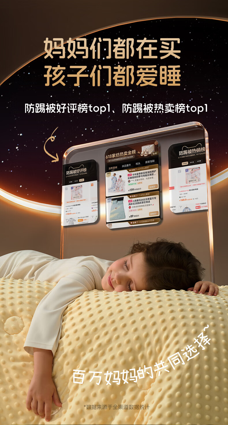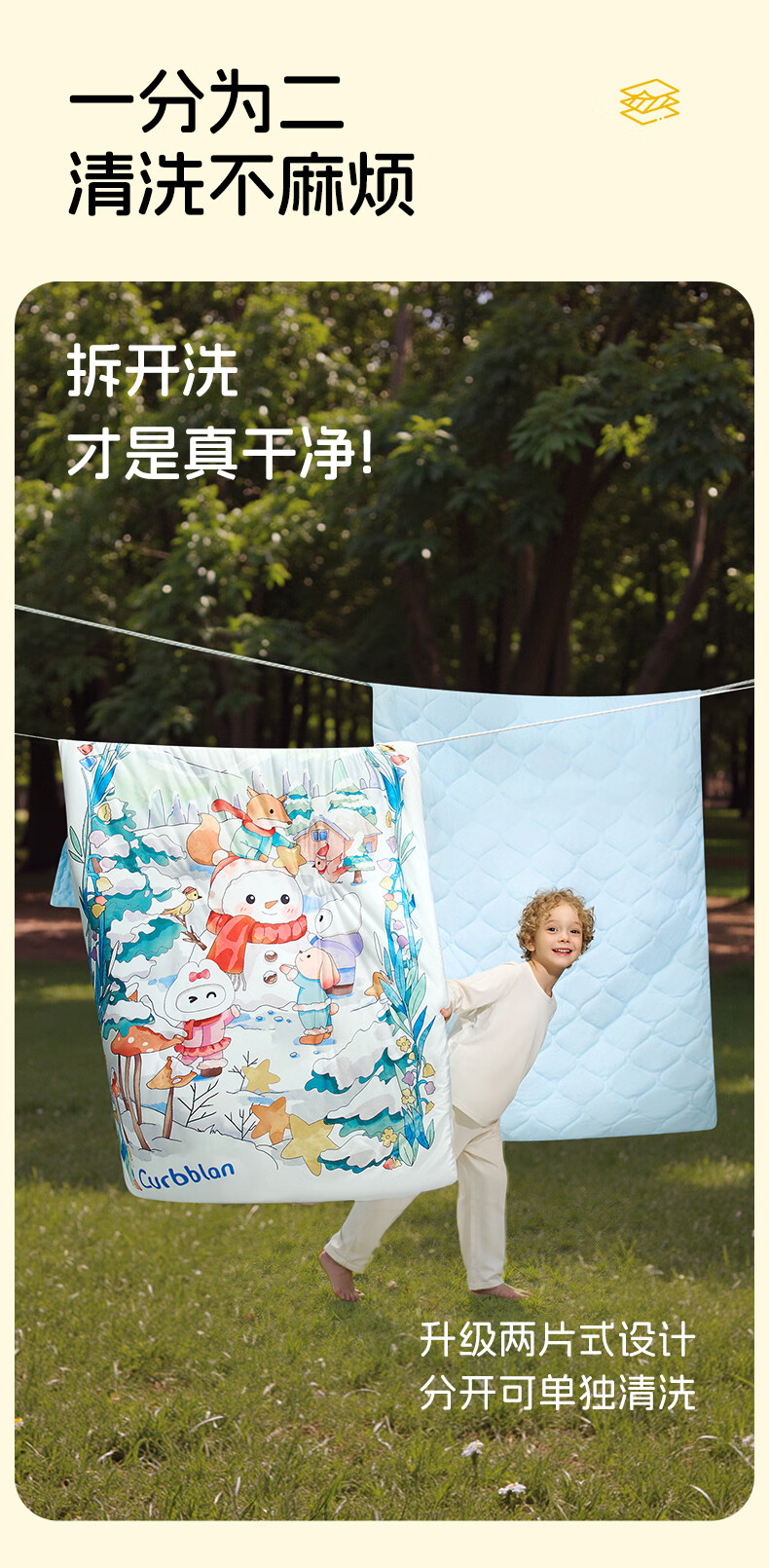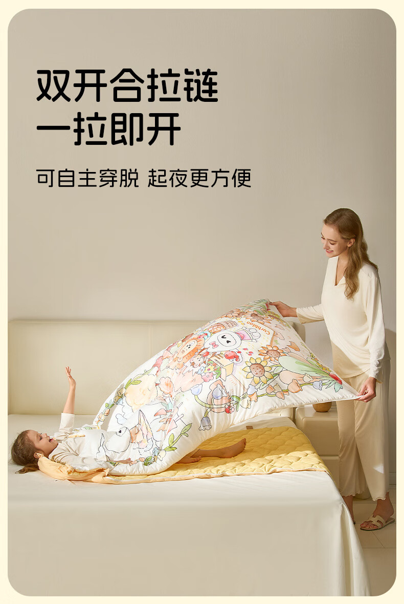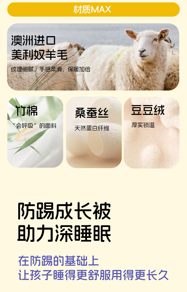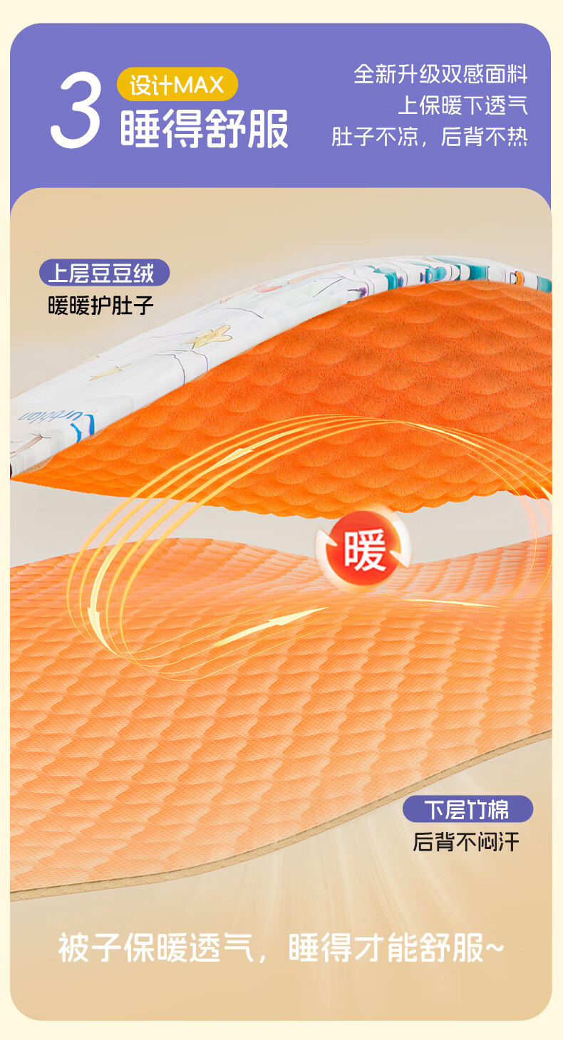 卡伴儿童防踢被【吉娜宝宝同款】秋冬加厚防踢澳洲羊毛桑蚕丝被子睡袋 【明星吉娜同款】雪域童话【蓝色】 中码1.5-6岁 建议身高120内 【75*140cm】3.7斤