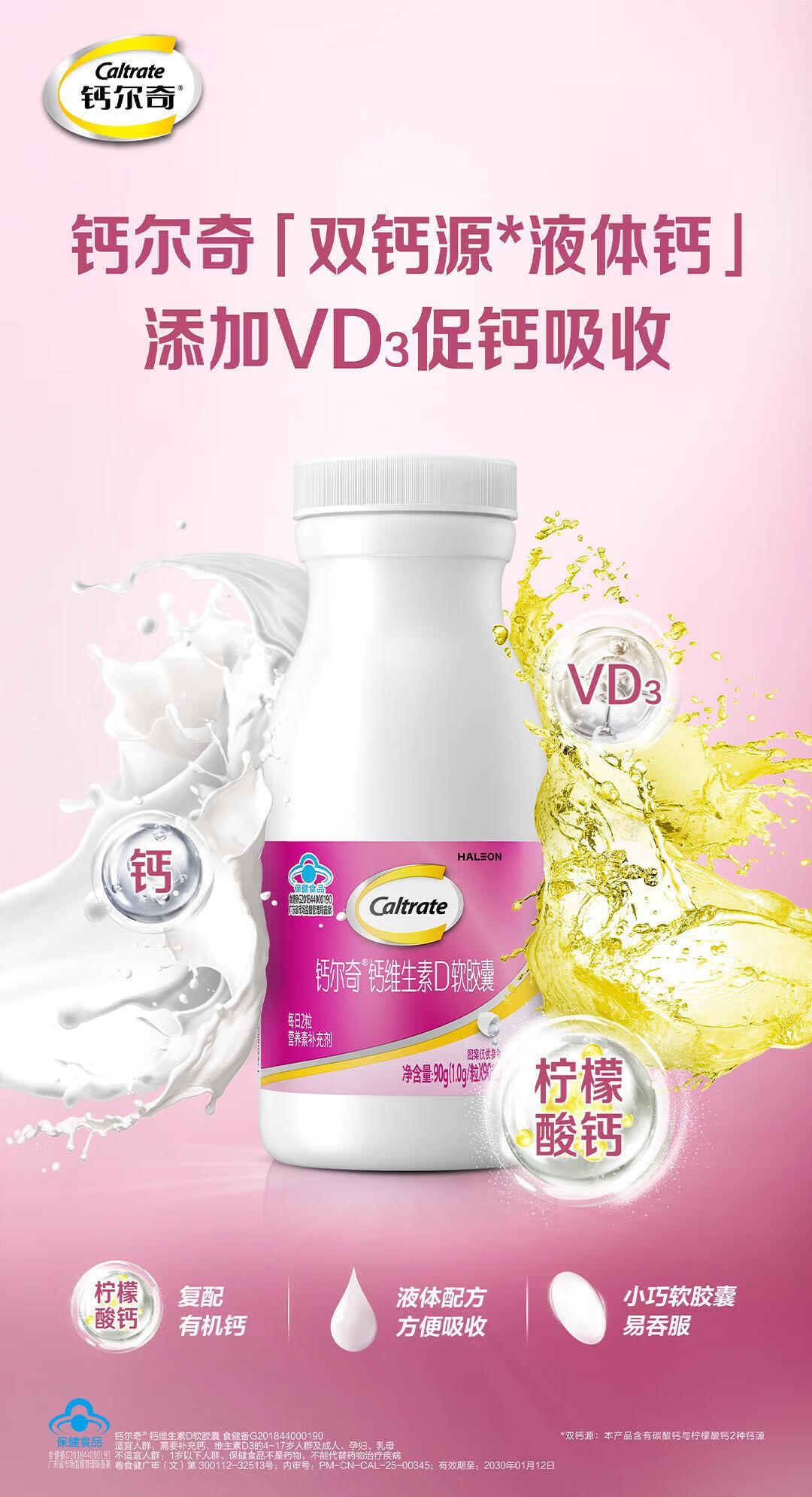 钙尔奇液体钙 中老年成人儿童补钙片 柠檬酸钙维生素D软胶囊年货节送礼 【本店液体钙TOP1】液体钙 90粒*3瓶 F
