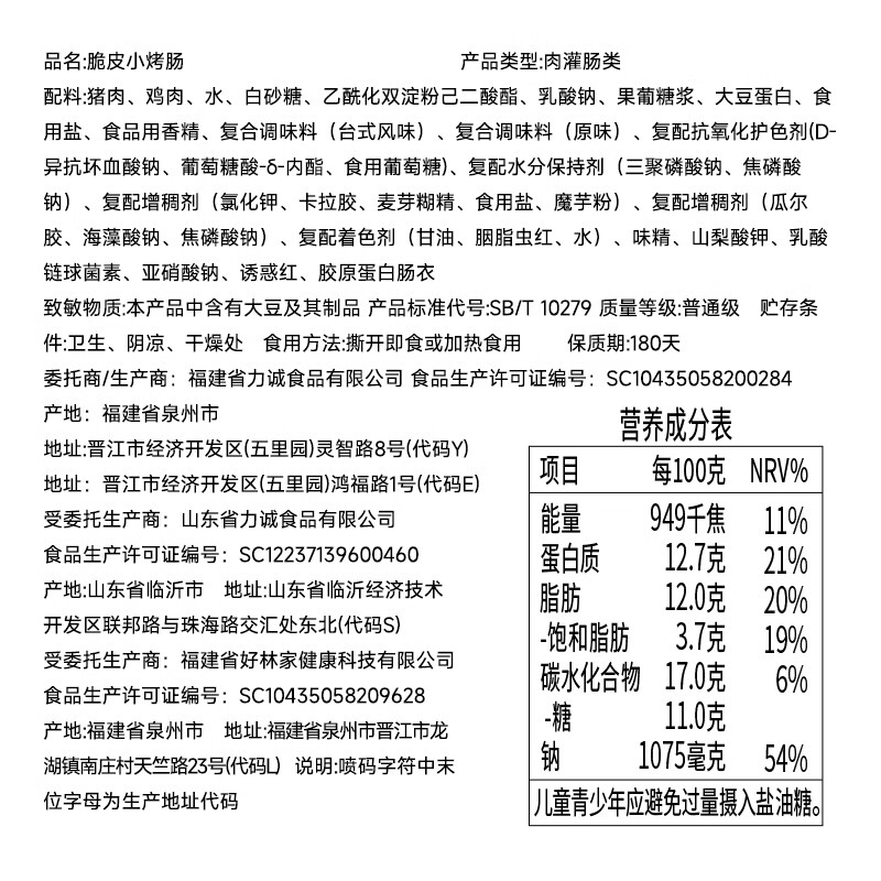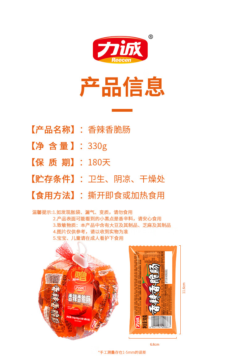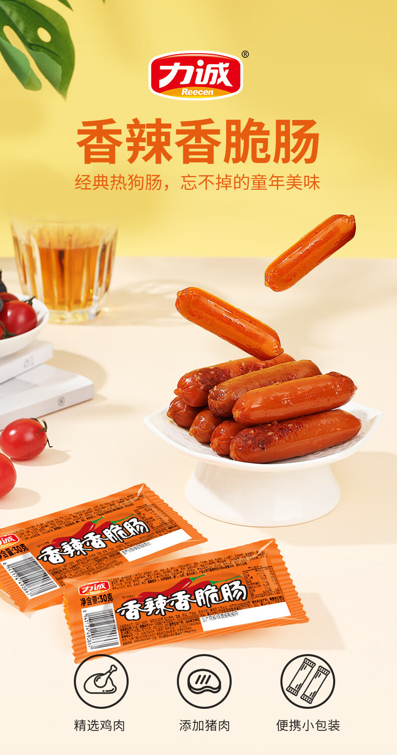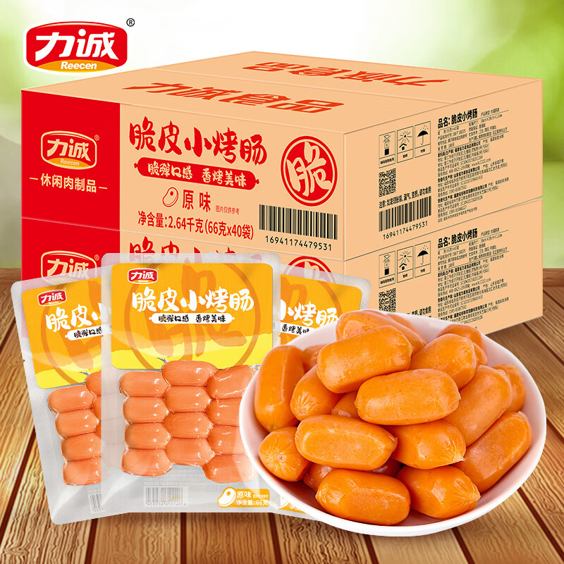 力诚(Reecen)深海鱼竹轮海洋健康零食鱼肉小吃休闲即食健康烤肠 脆皮小烤肠66g*12袋