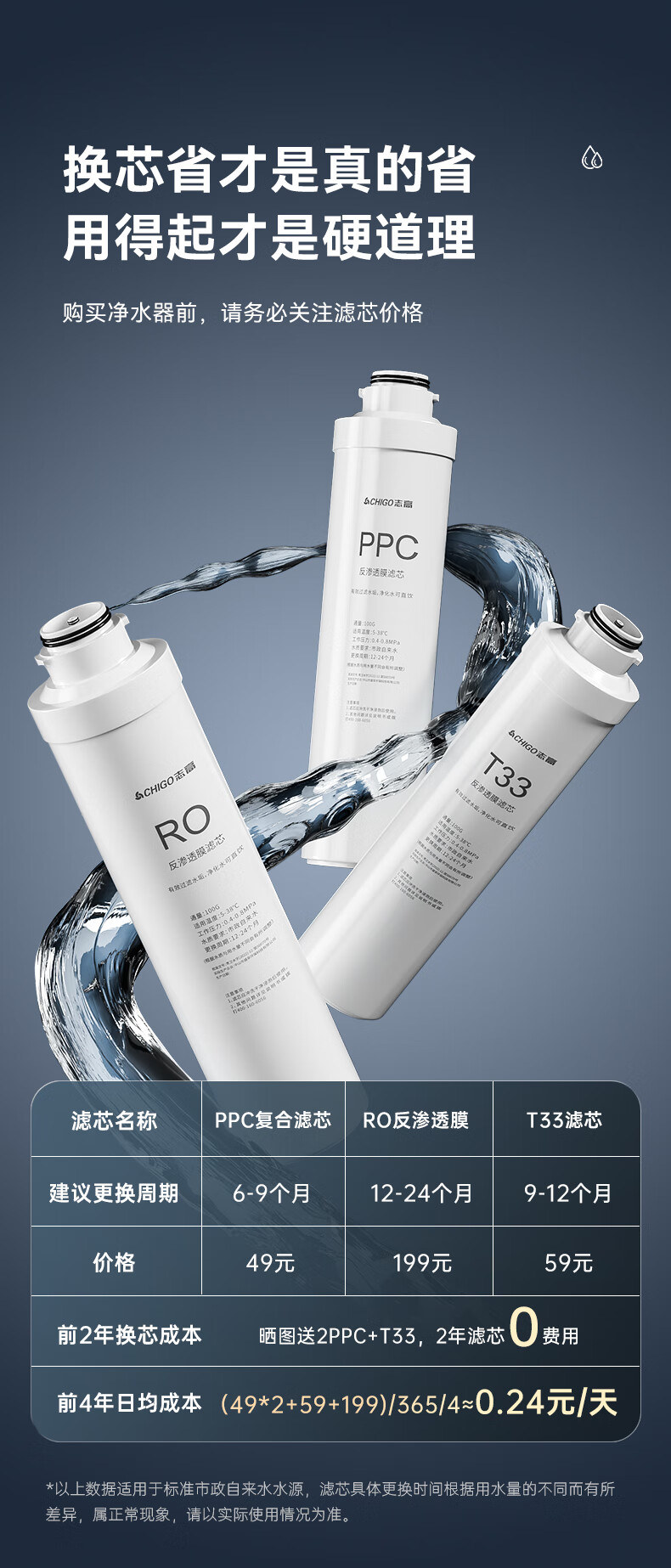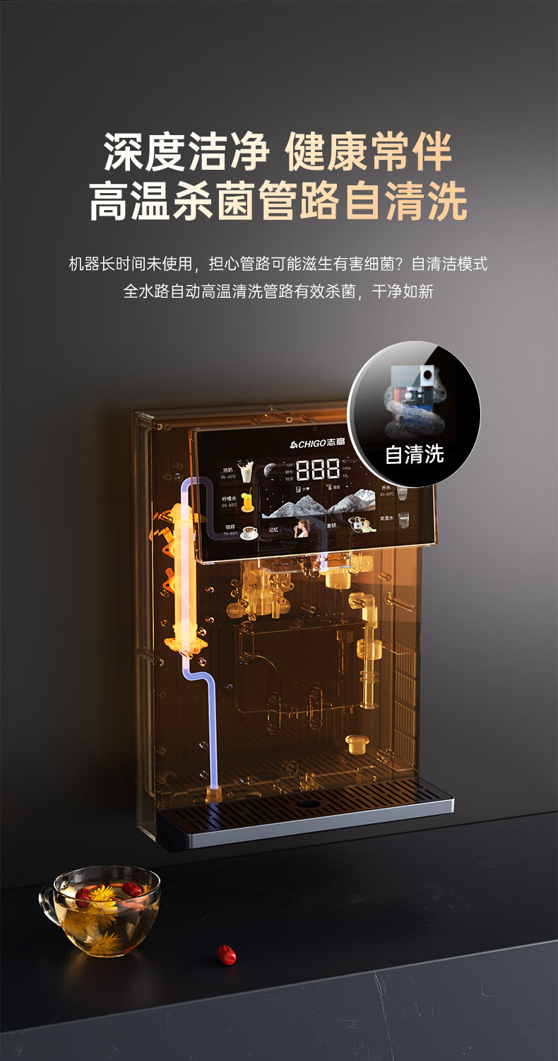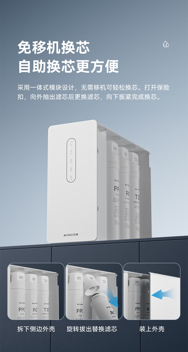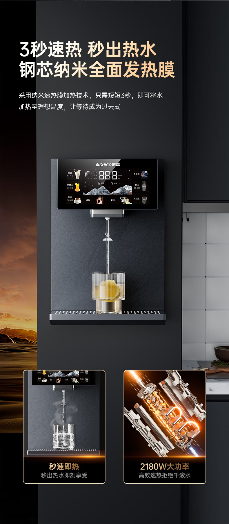 志高(CHIGO)净水器家用厨下RO反渗透直饮净水机加热制冷一体机餐边柜壁挂式管线机套装 【即热直饮一体套装】净水器+AK01管线机