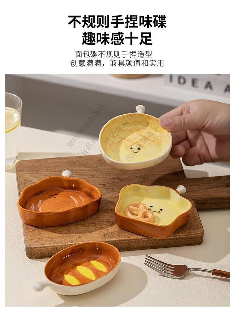 面包造型陶瓷蘸料碟家用味碟可爱小菜碟子酱油调味醋碟火锅蘸料碗 圆面包味碟