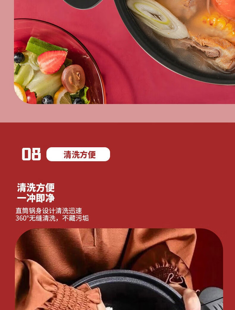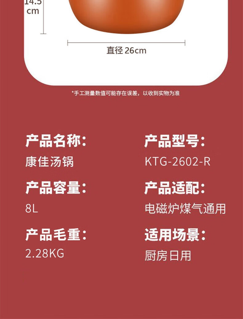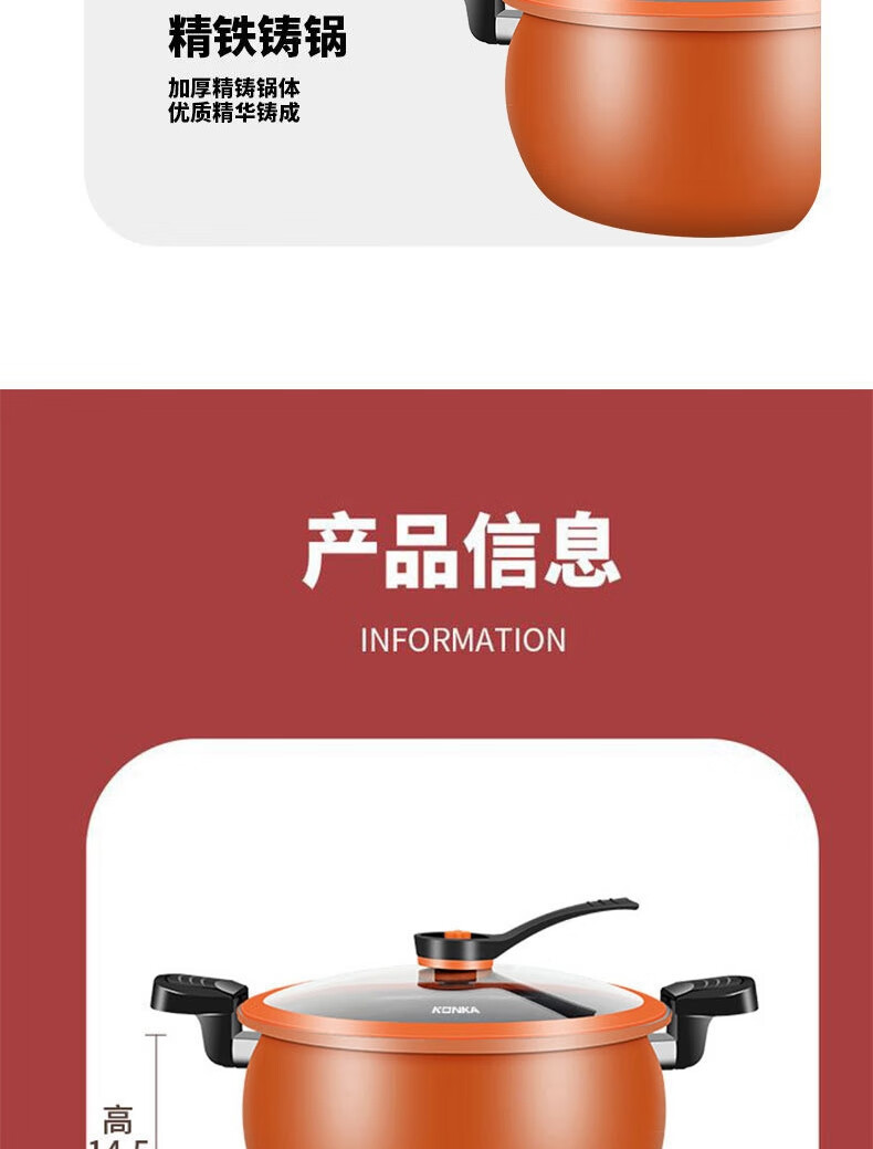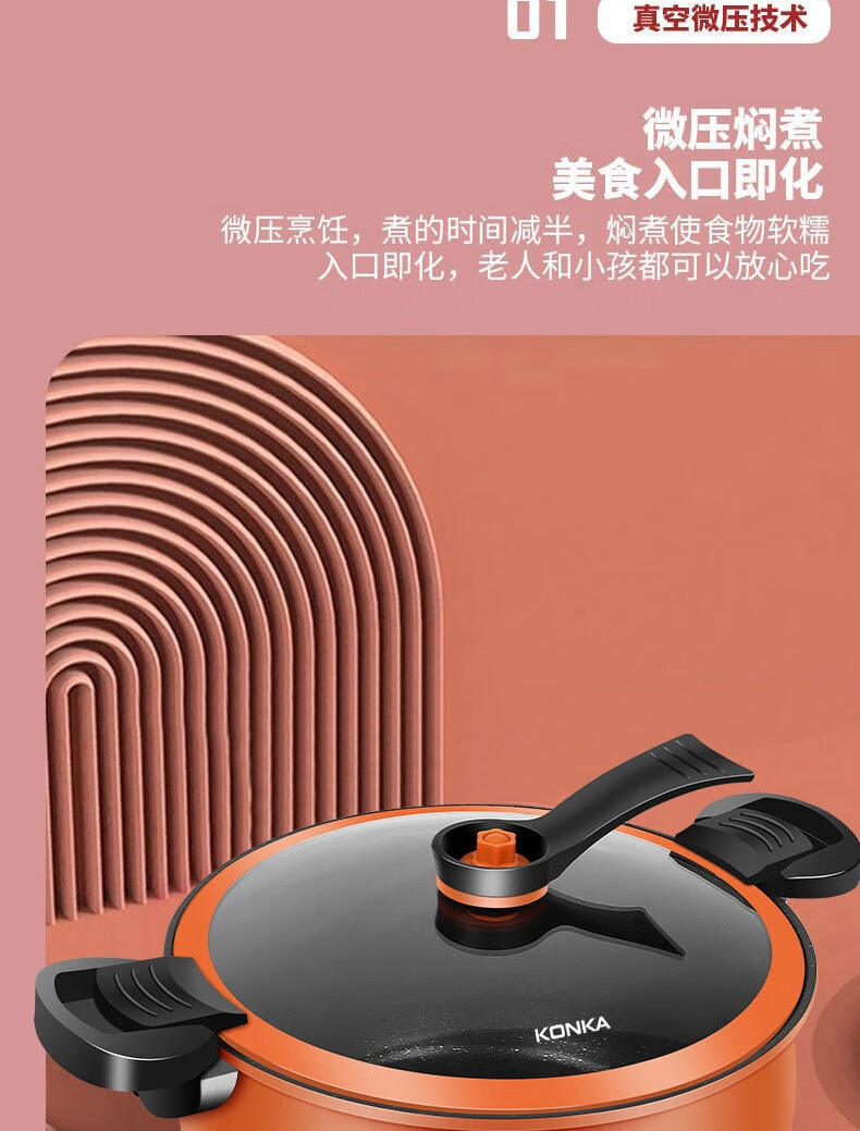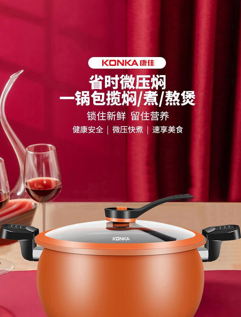 康佳(KONKA)胖墩墩微压锅压力锅XYX家用大容量炖汤锅易洁不粘多功能煮锅磁炉 胖墩墩 26cm 8L