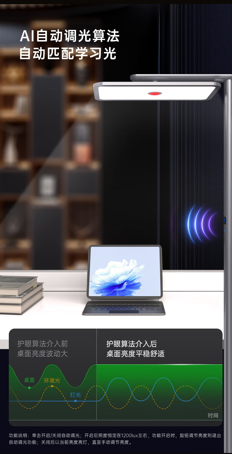 木林森照明红光护眼大路灯雷达智能感应落地灯全光谱护眼台灯