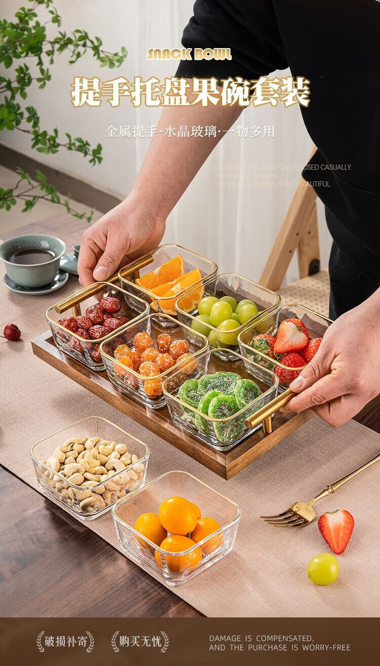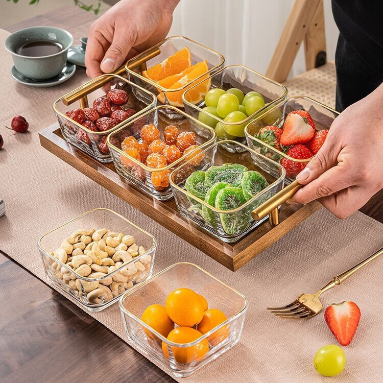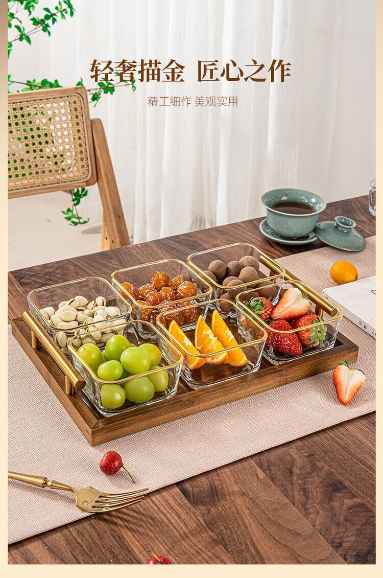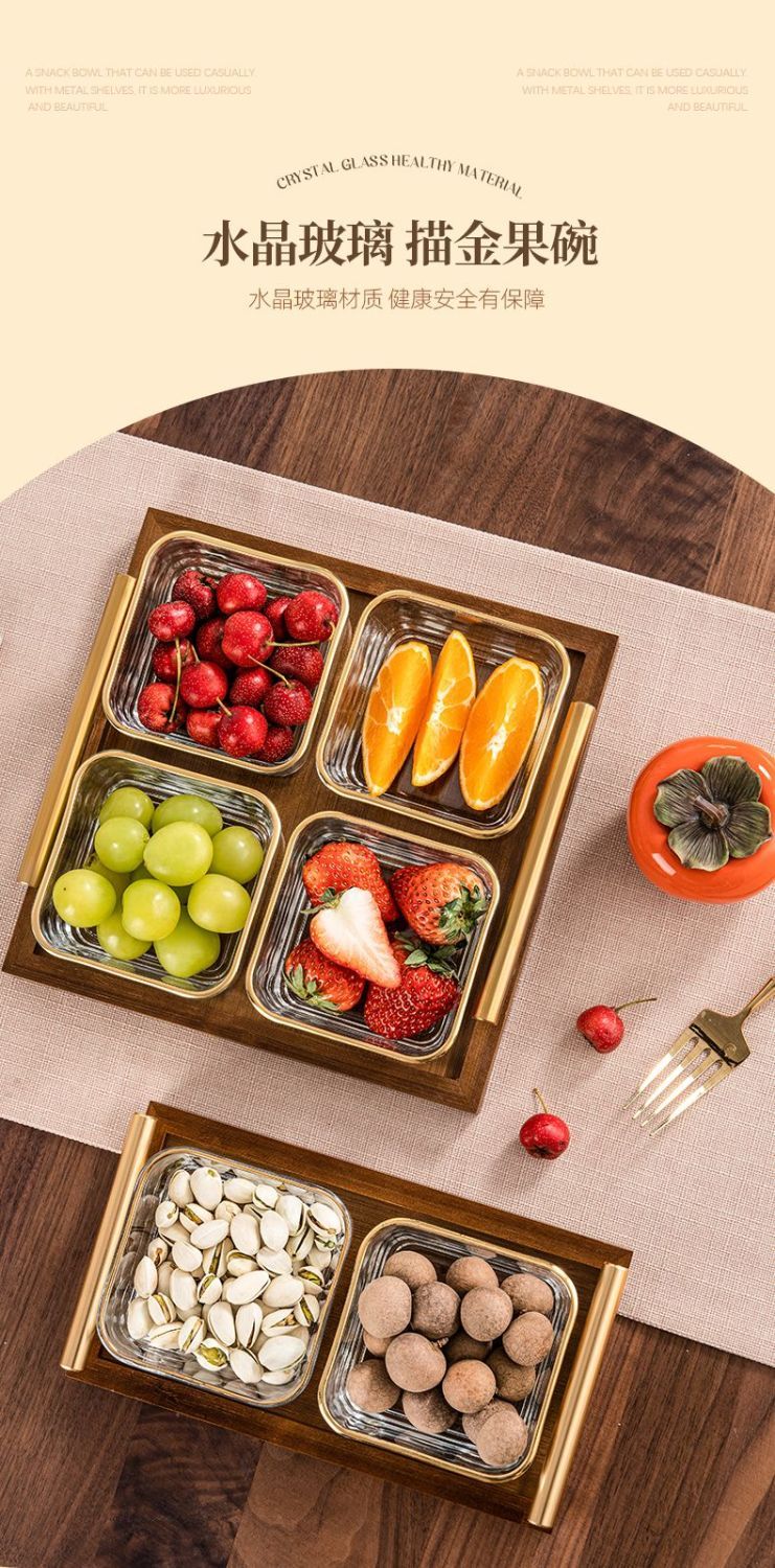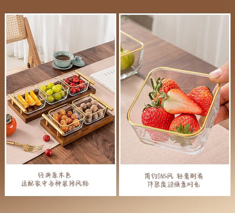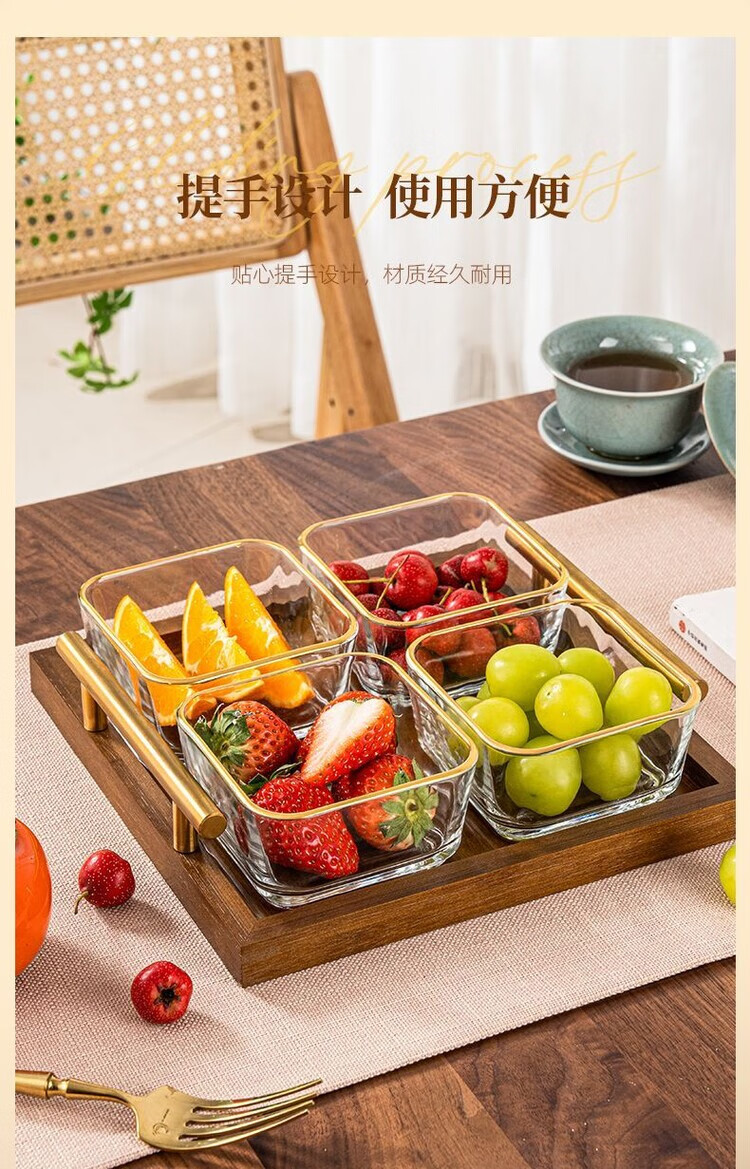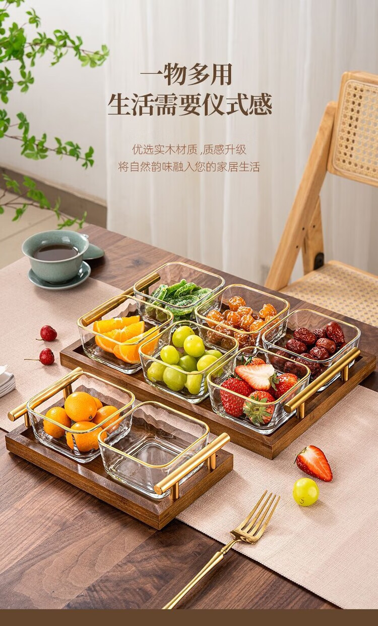 简漾简约手提木果盘零食摆放盘中式实木干果盒家用茶几轻奢收纳高颜值 新款送提手 金边方果碗*2