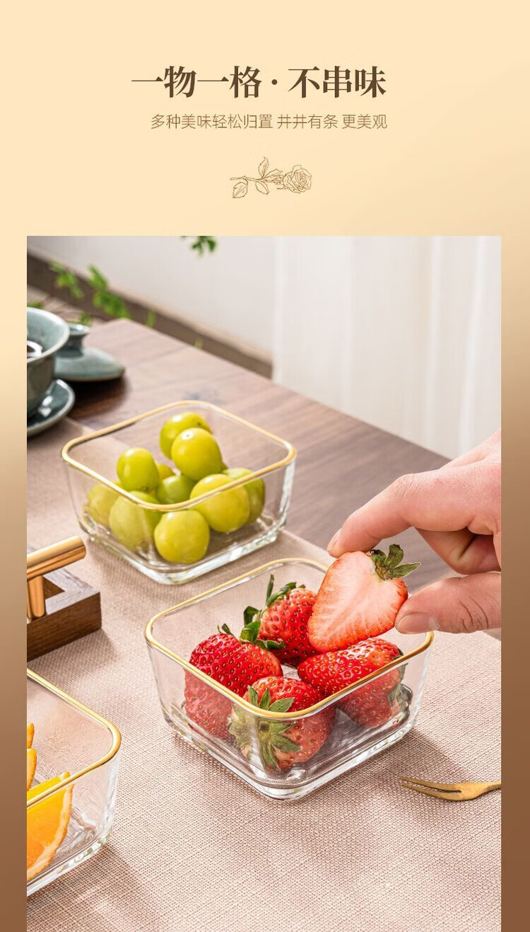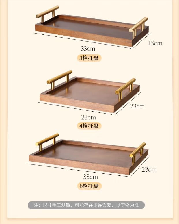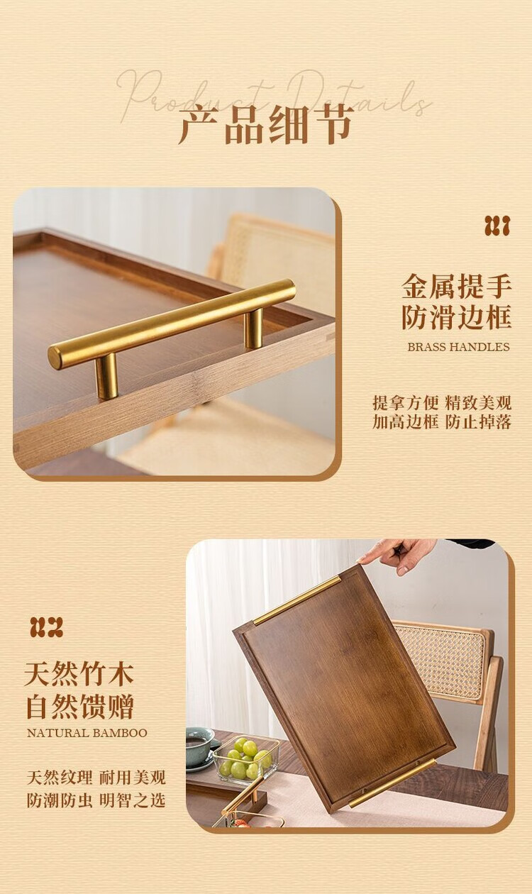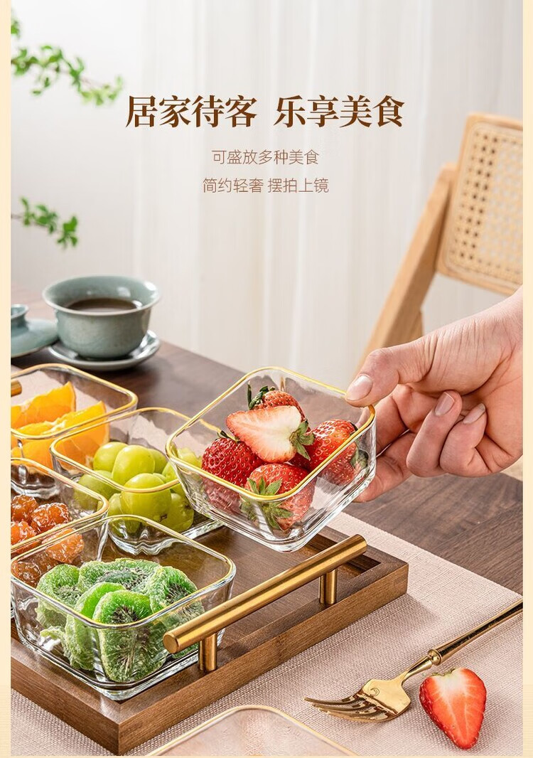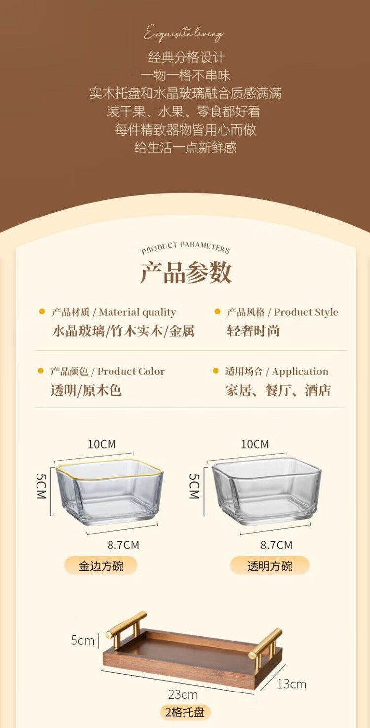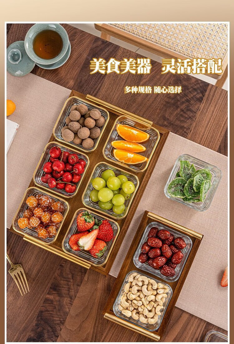 简漾简约手提木果盘零食摆放盘中式实木干果盒家用茶几轻奢收纳高颜值 新款送提手 金边方果碗*2