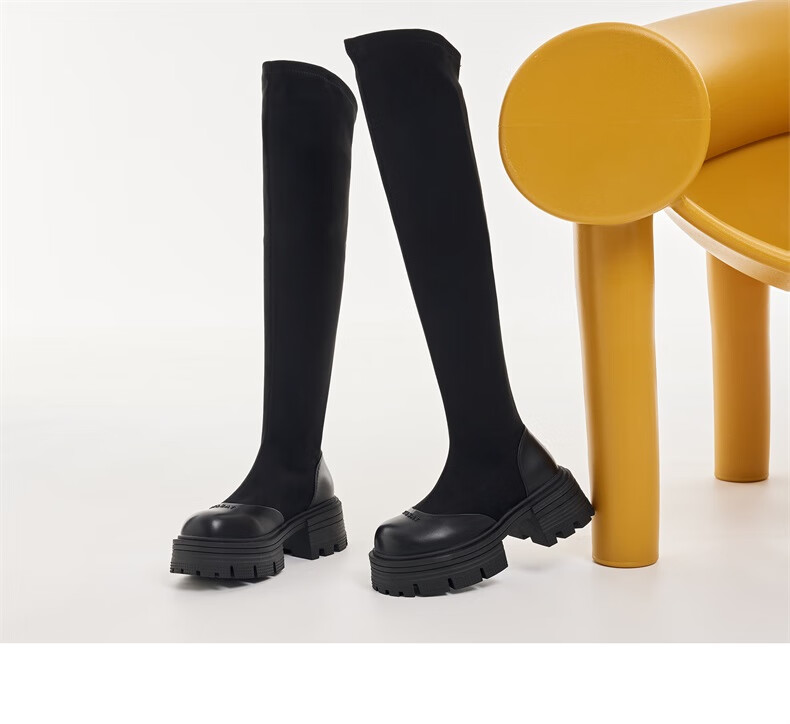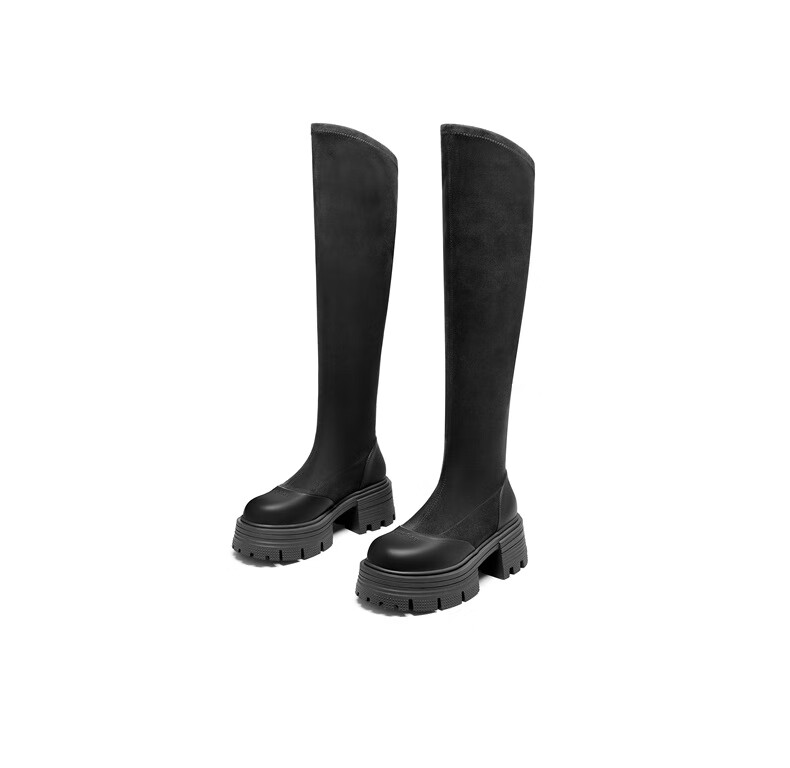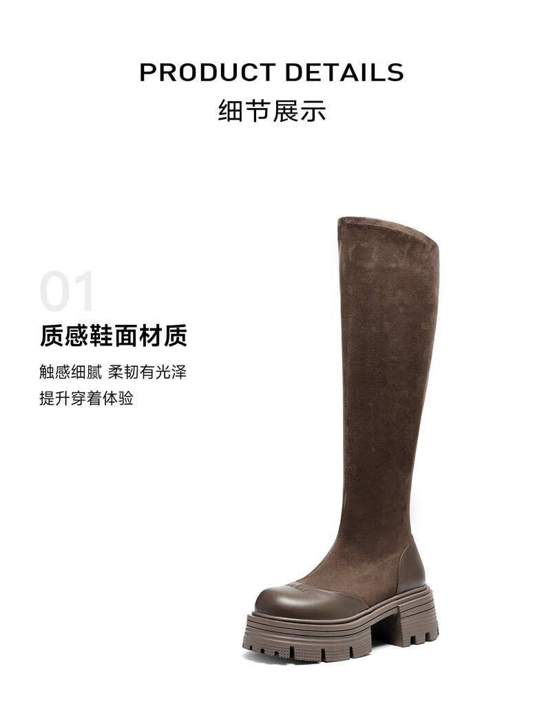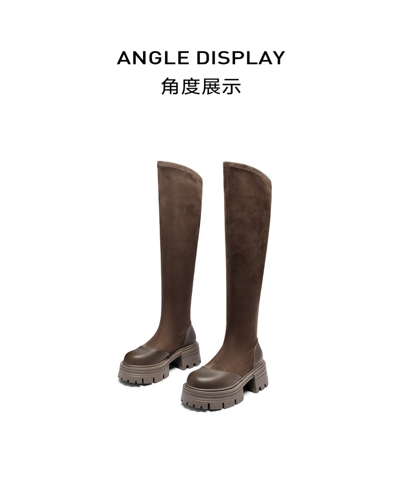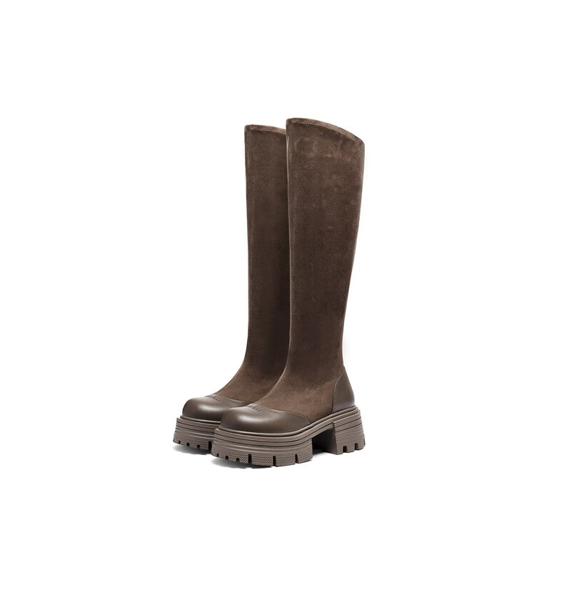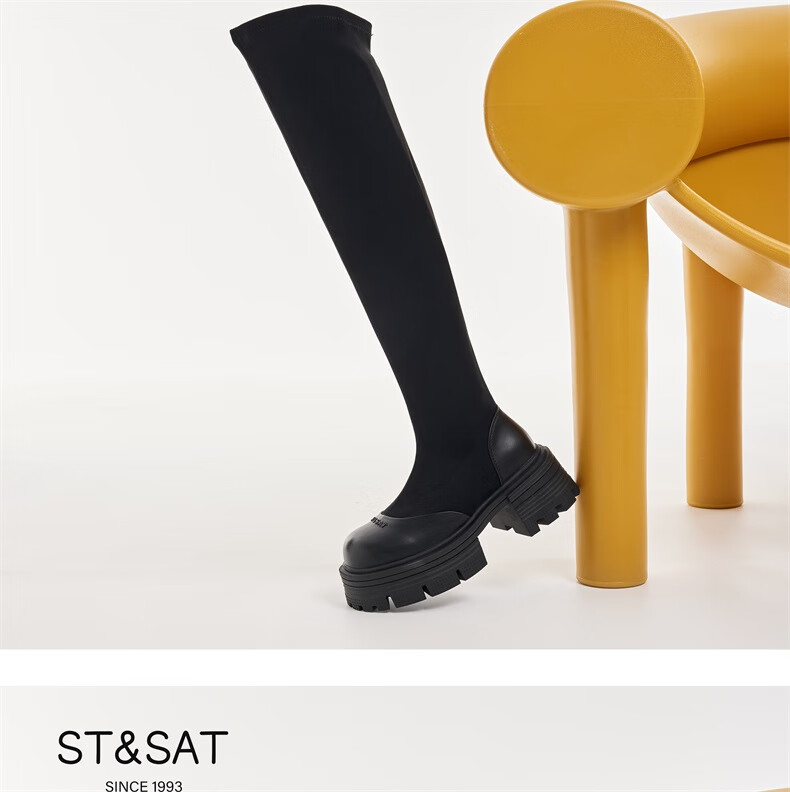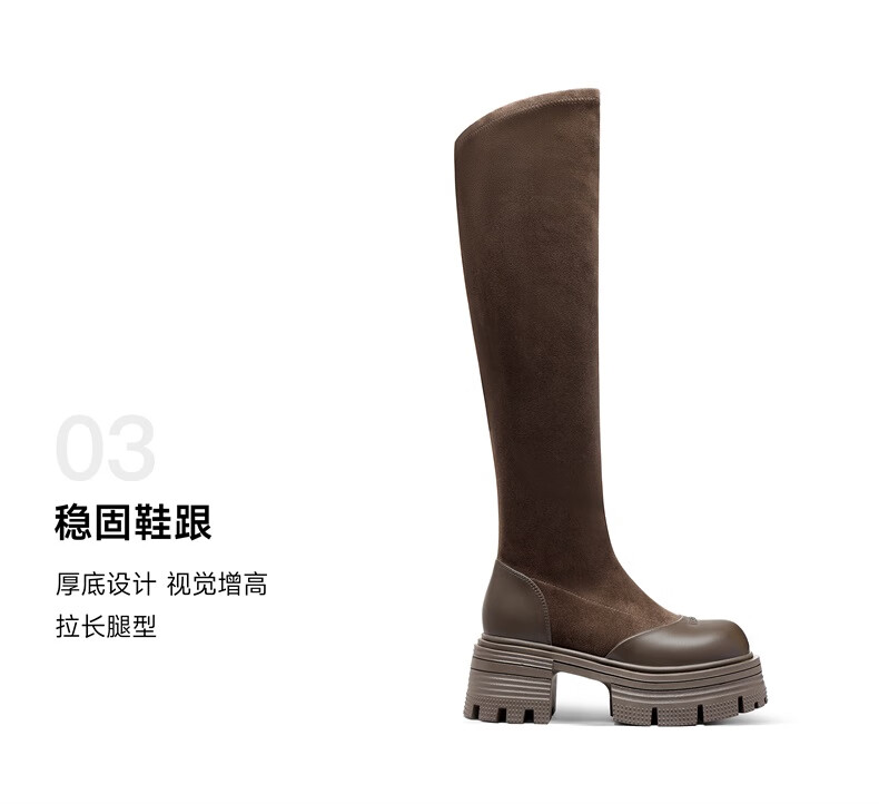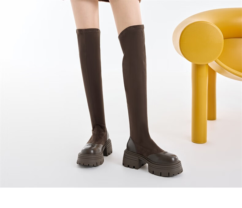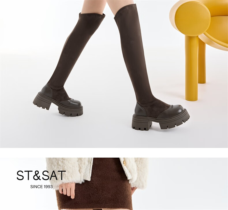 星期六(St&Sat)过膝靴女2025新款复古时尚百搭纯色爆款洋气长筒靴 棕色 40