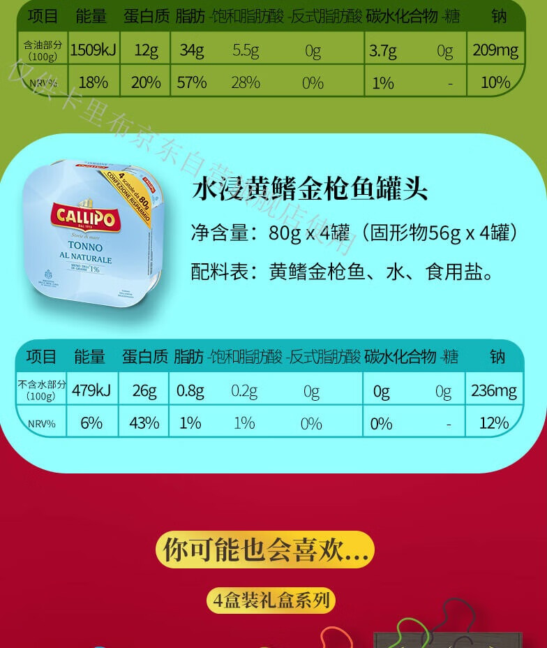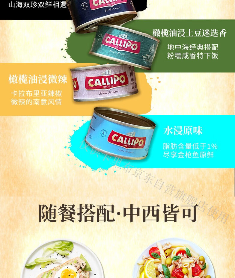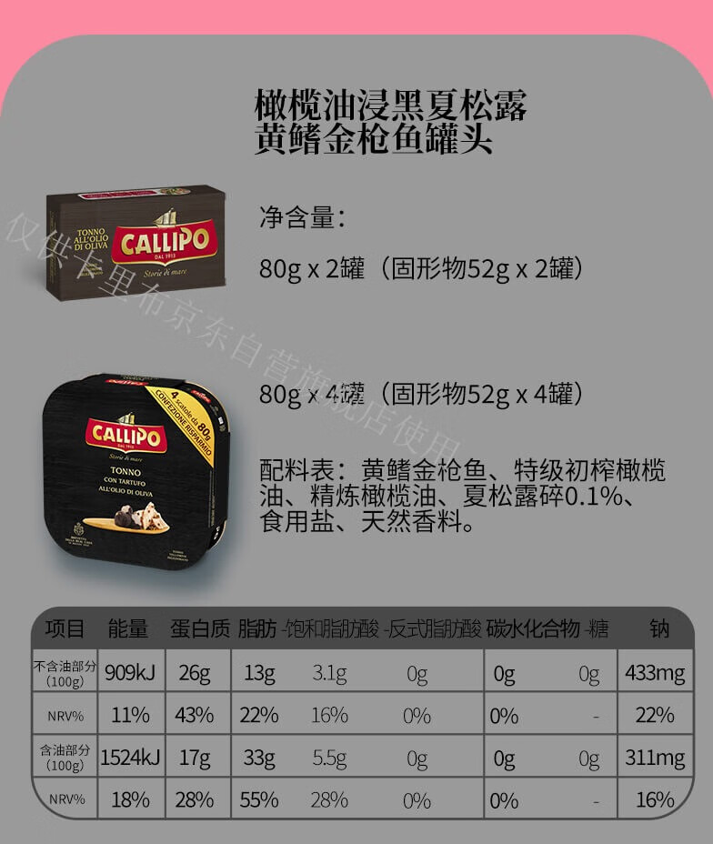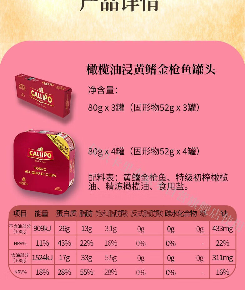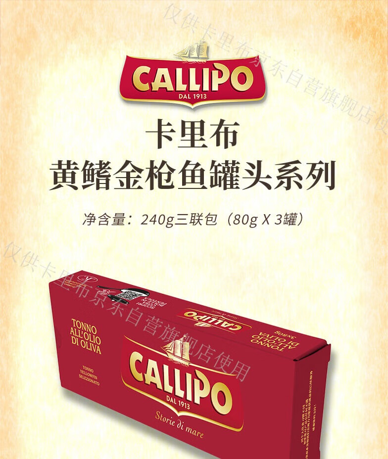 CALLIPOCALLIPO意大利橄榄油浸深海黄鳍金枪鱼肉罐头开罐即食 80g*3罐