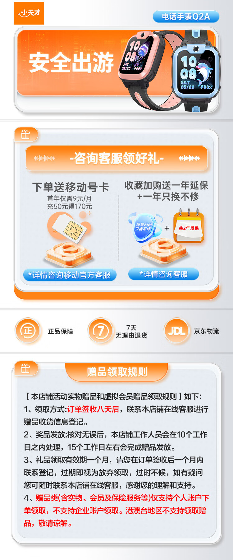 小天才电话手表Q2A长续航儿童手表GPS定位智能手表学生儿童4G视频拍照手表天镜蓝男女表