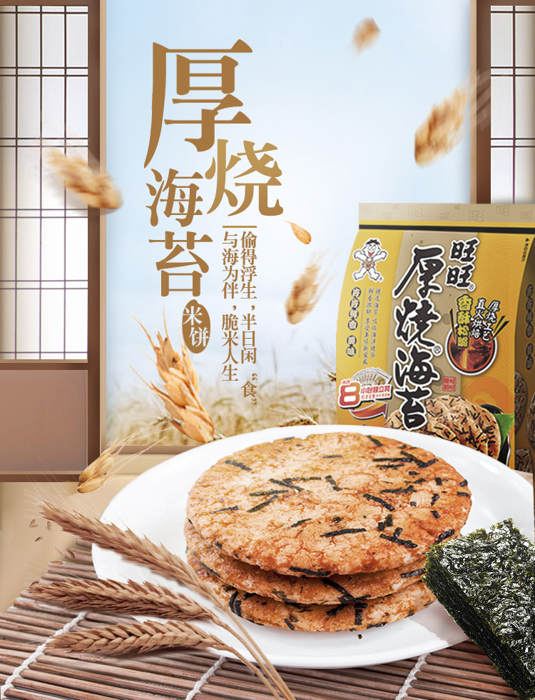 旺旺 雪饼 厚烧海苔 原味 168g 零食膨化休闲食品饼干糕点
