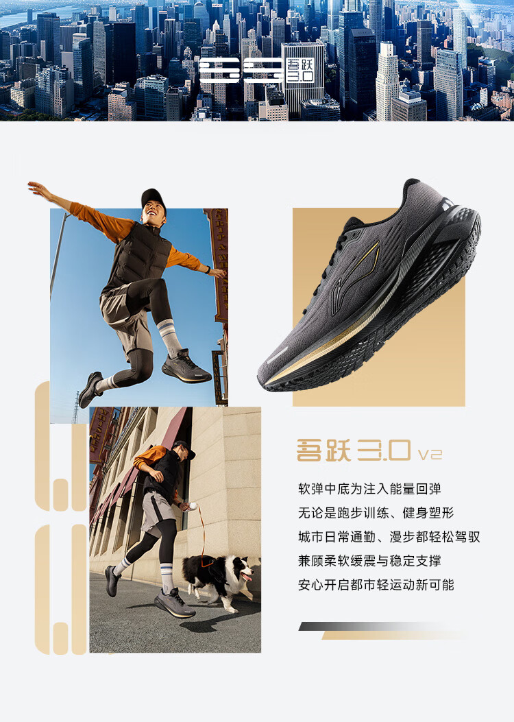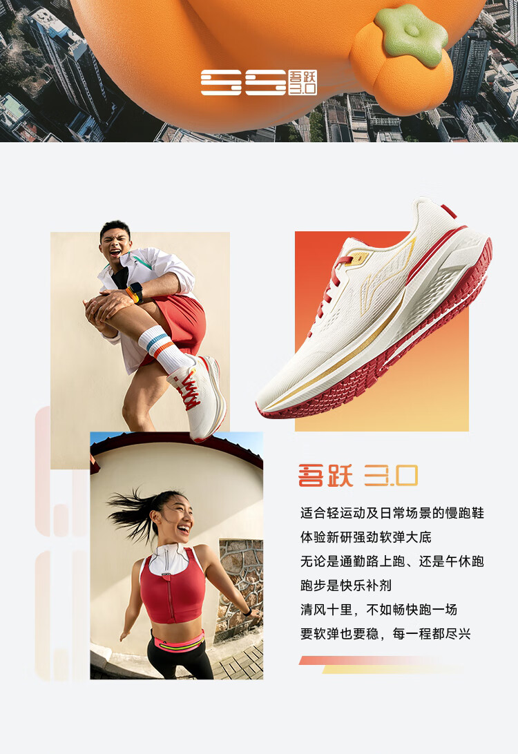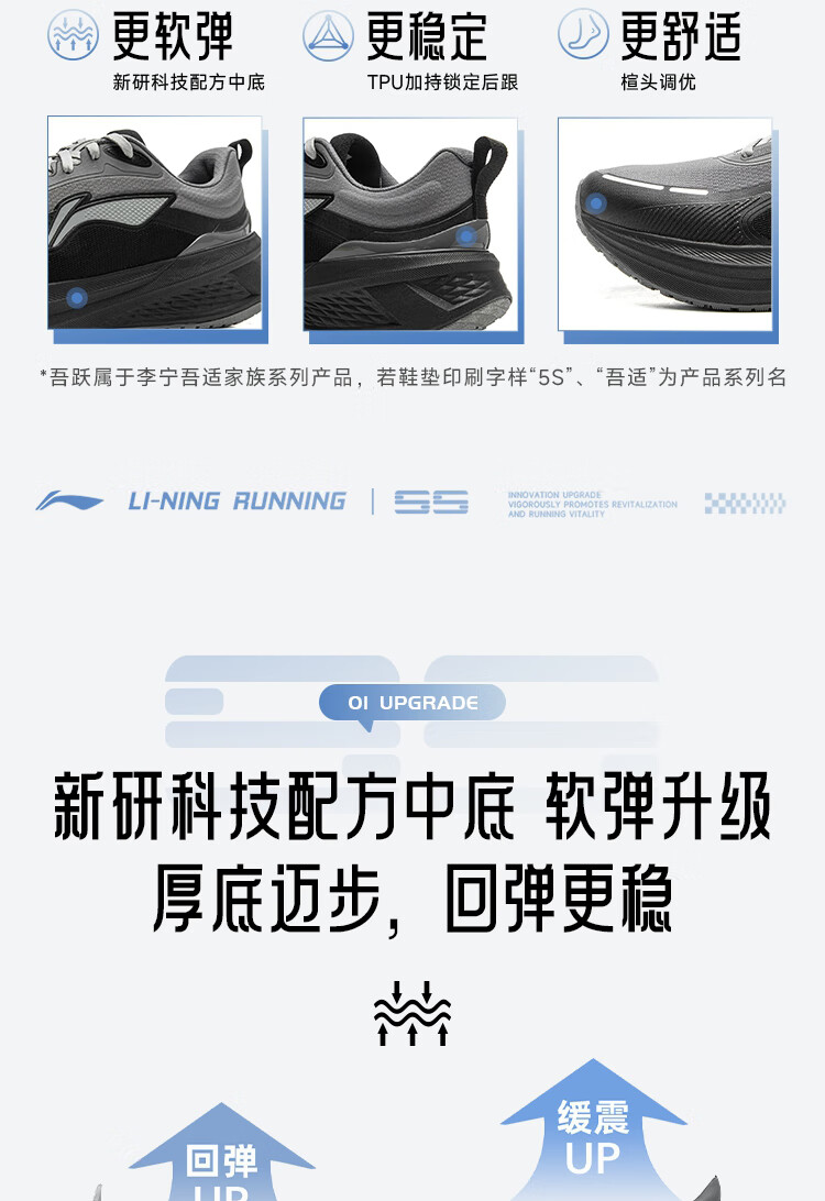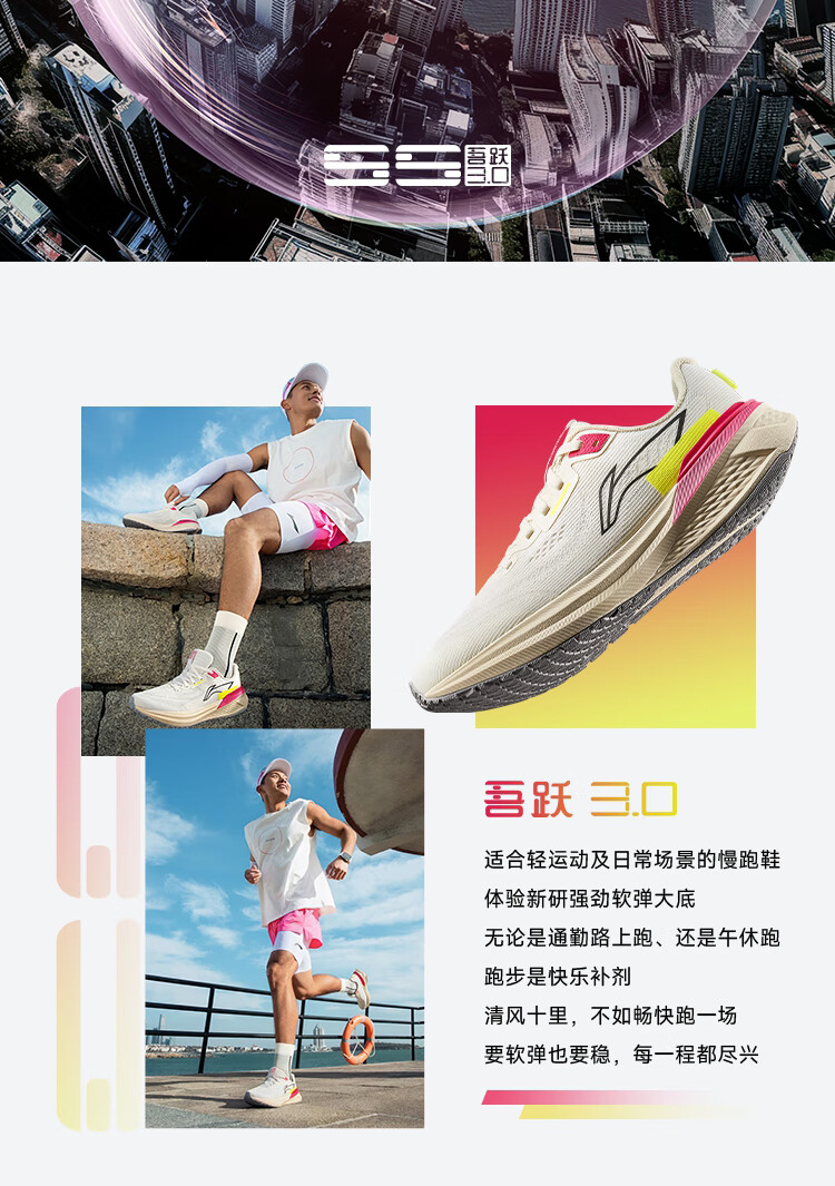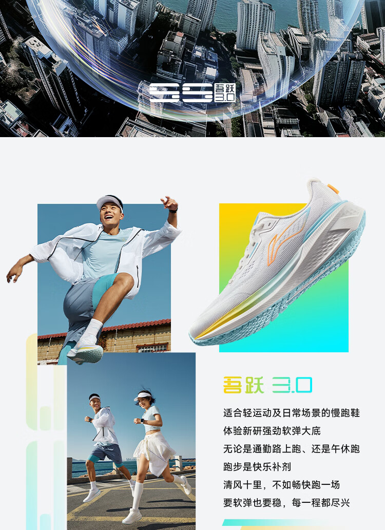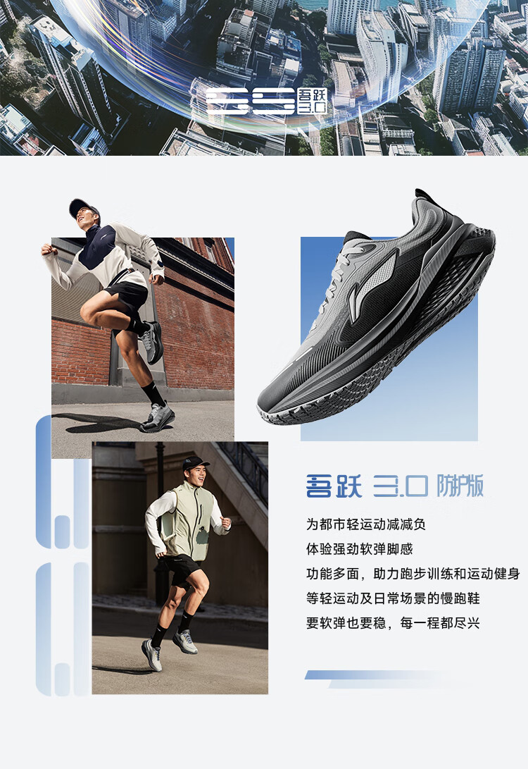 李宁吾跃3.0 v2丨跑步鞋男子冬季简约百搭休闲慢跑鞋ARSV111