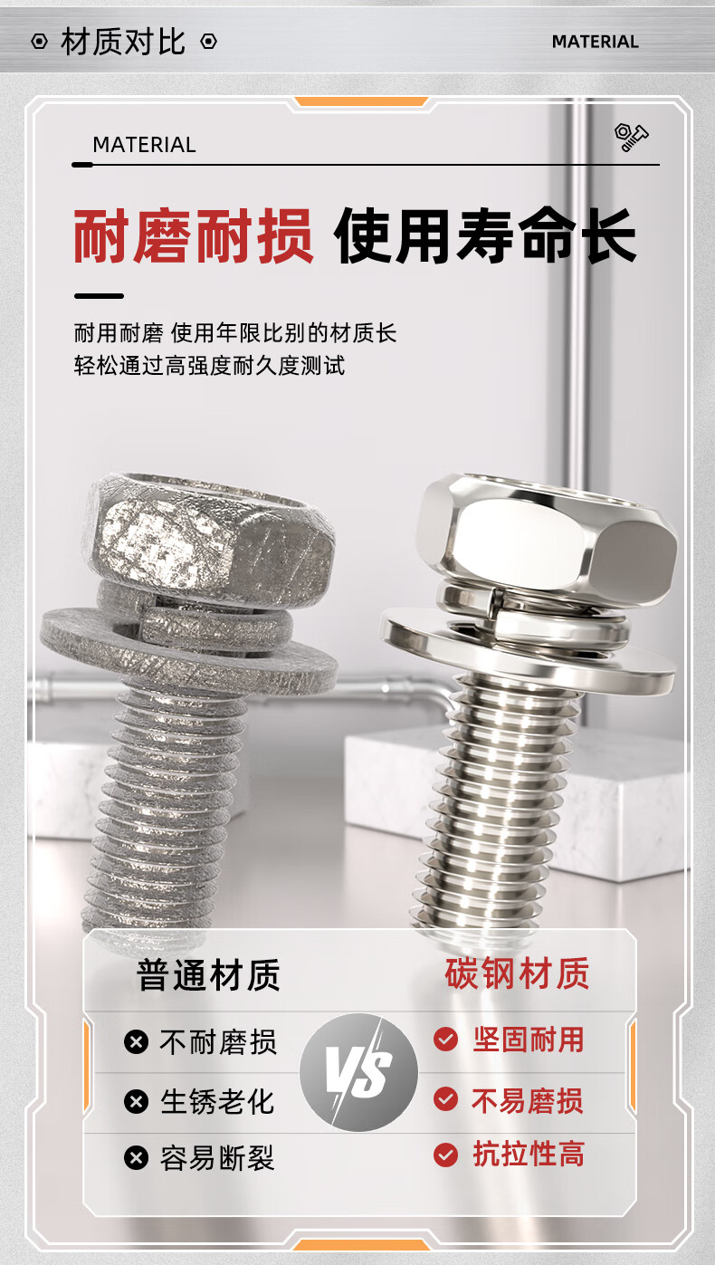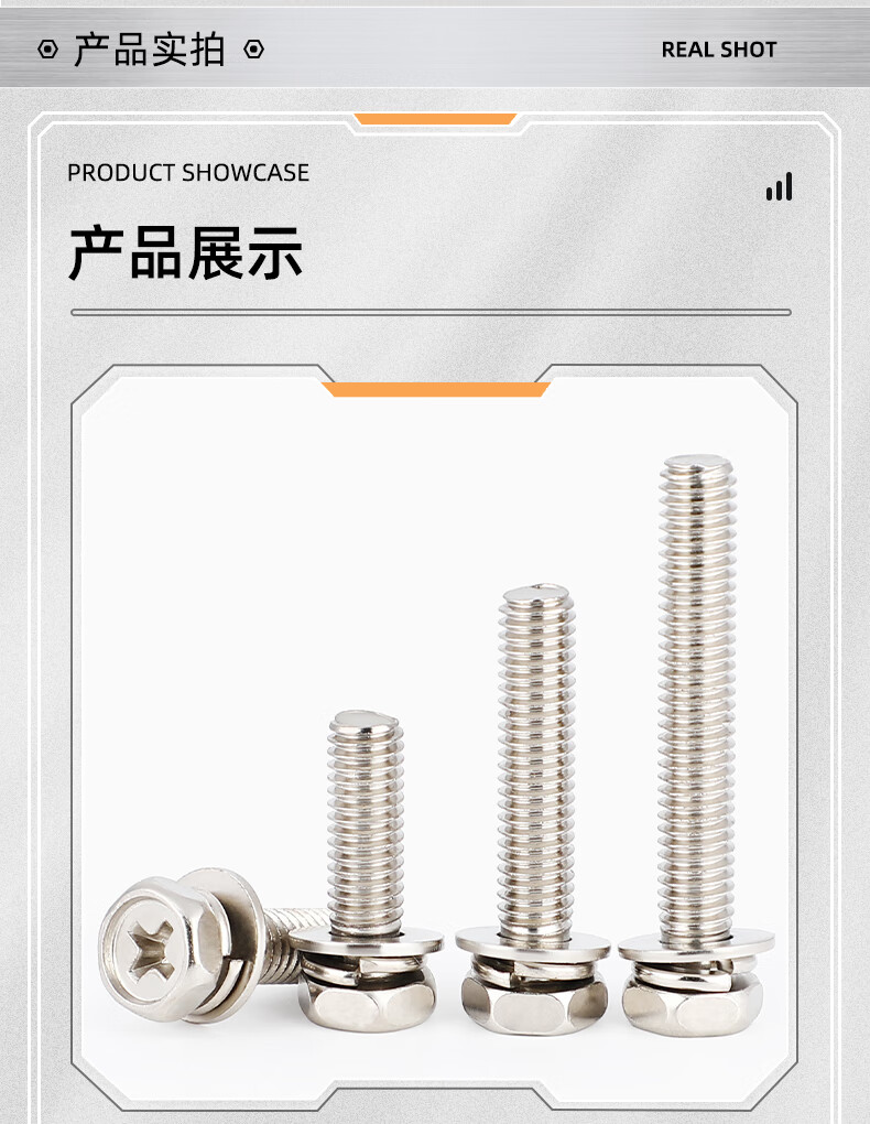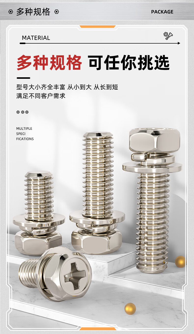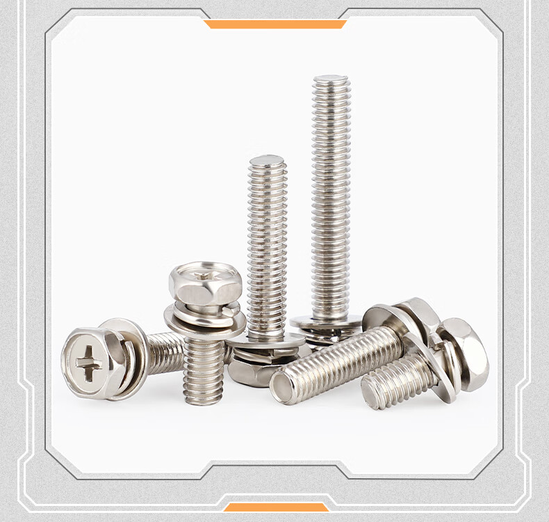 天卓五金铁镀镍十字槽外六角三组合螺丝钉带平垫弹垫凹穴组合螺栓M4M5M6M8 M3*6【300个】