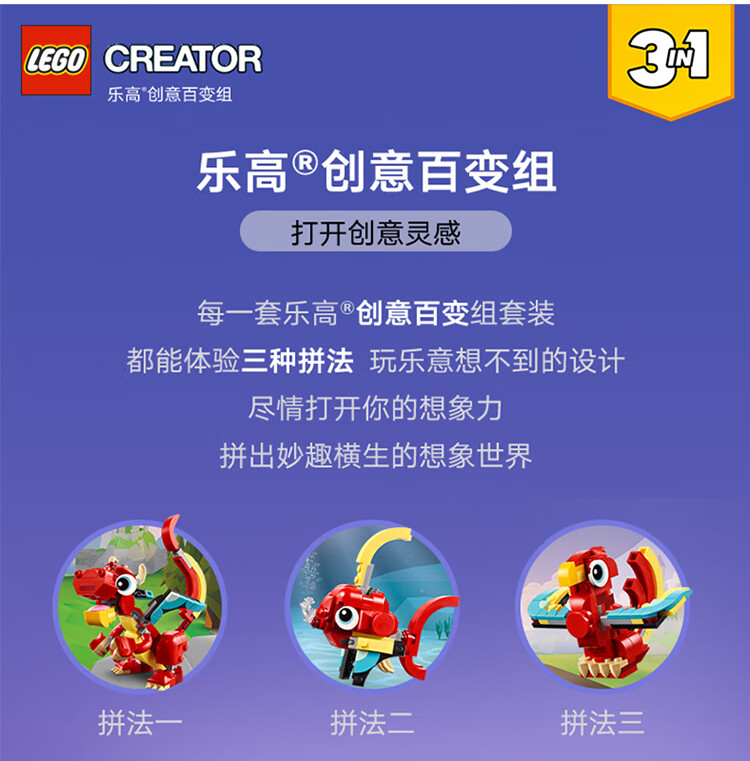 乐高(LEGO)积木拼装31145 红色小飞龙男孩女孩儿童玩具生日圣诞礼物