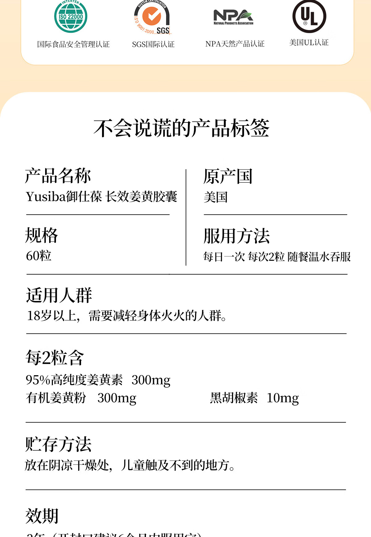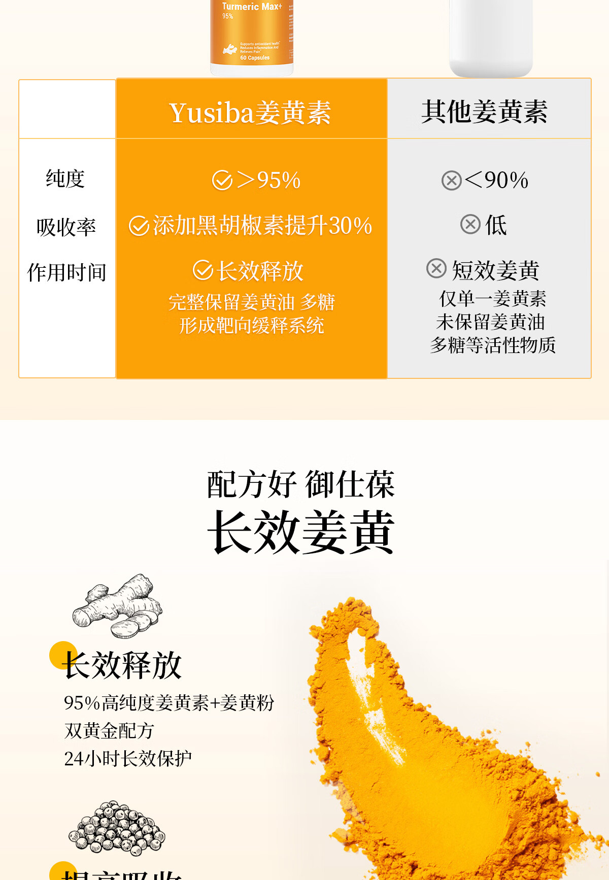 Yusiba御仕葆高浓度缓释姜黄60片 护肝养胃抗炎症抗过敏提高免疫力应酬 95%高浓度姜黄60粒