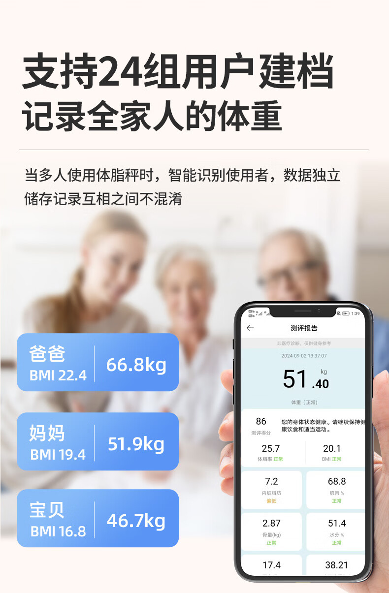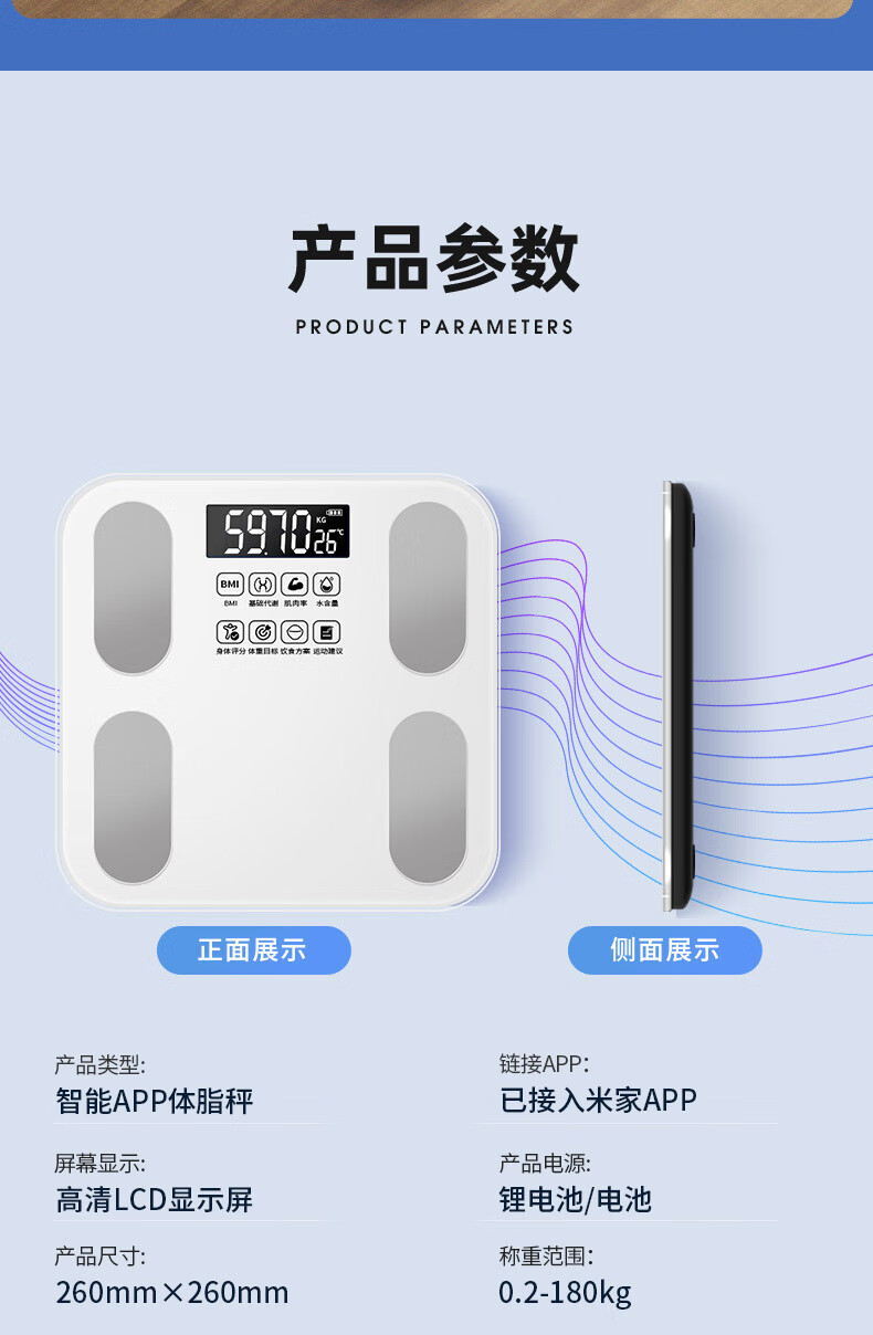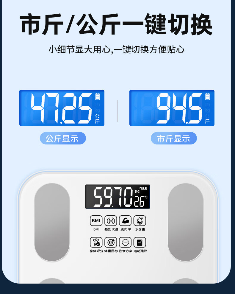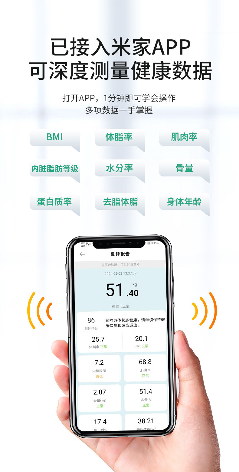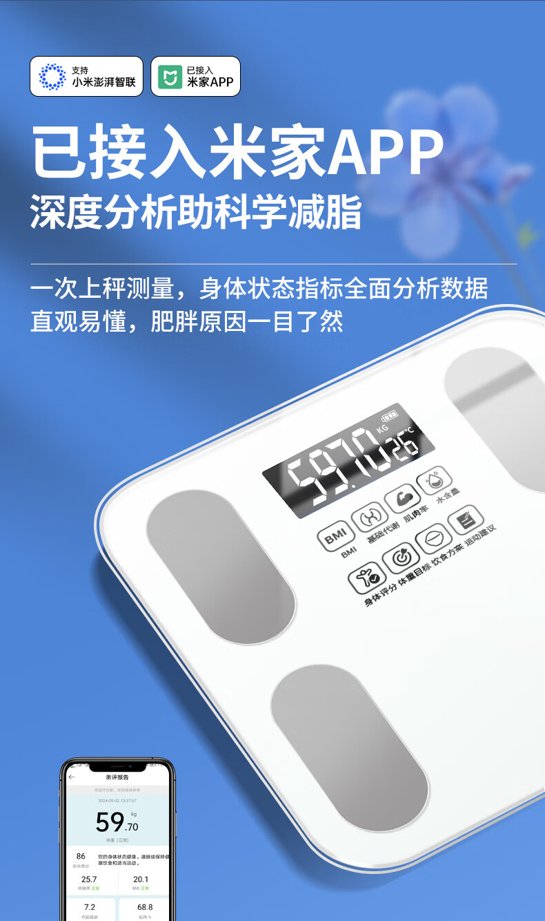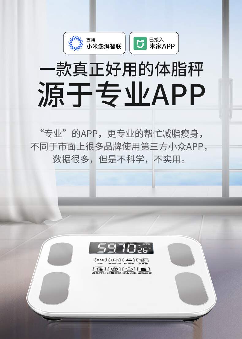米家APP体脂秤体重秤电子秤家用称重计减肥专用智能精准充电健康秤电子称体脂称 【爆款】米家APP体脂秤-充电