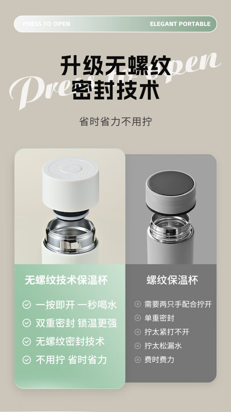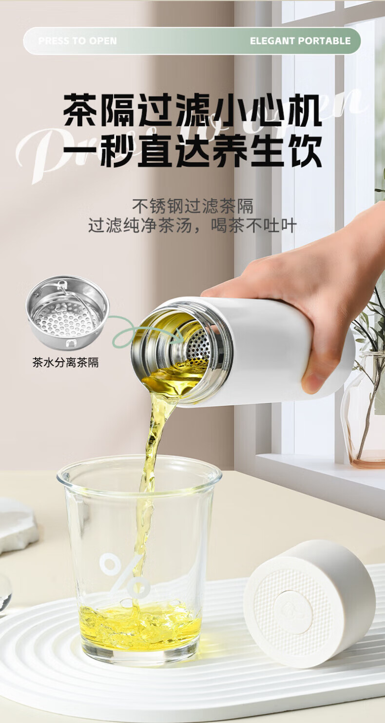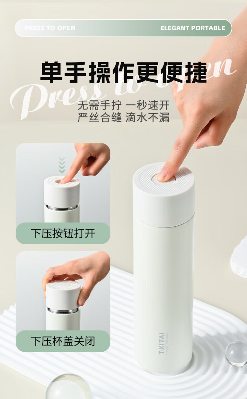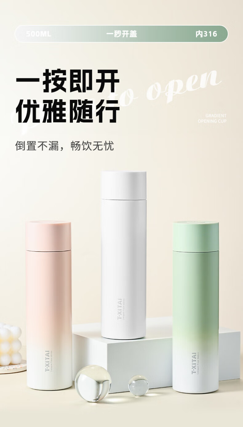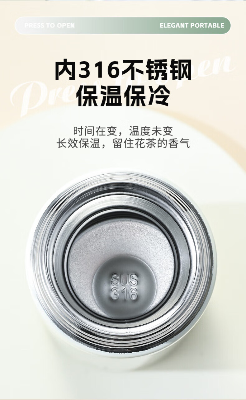 WFFPM德国品牌316不锈钢保温杯男女士一键速开车载便捷办公上学用水杯 绿色 500ml