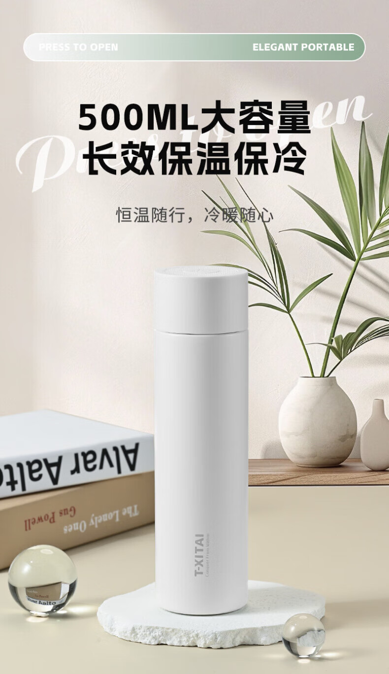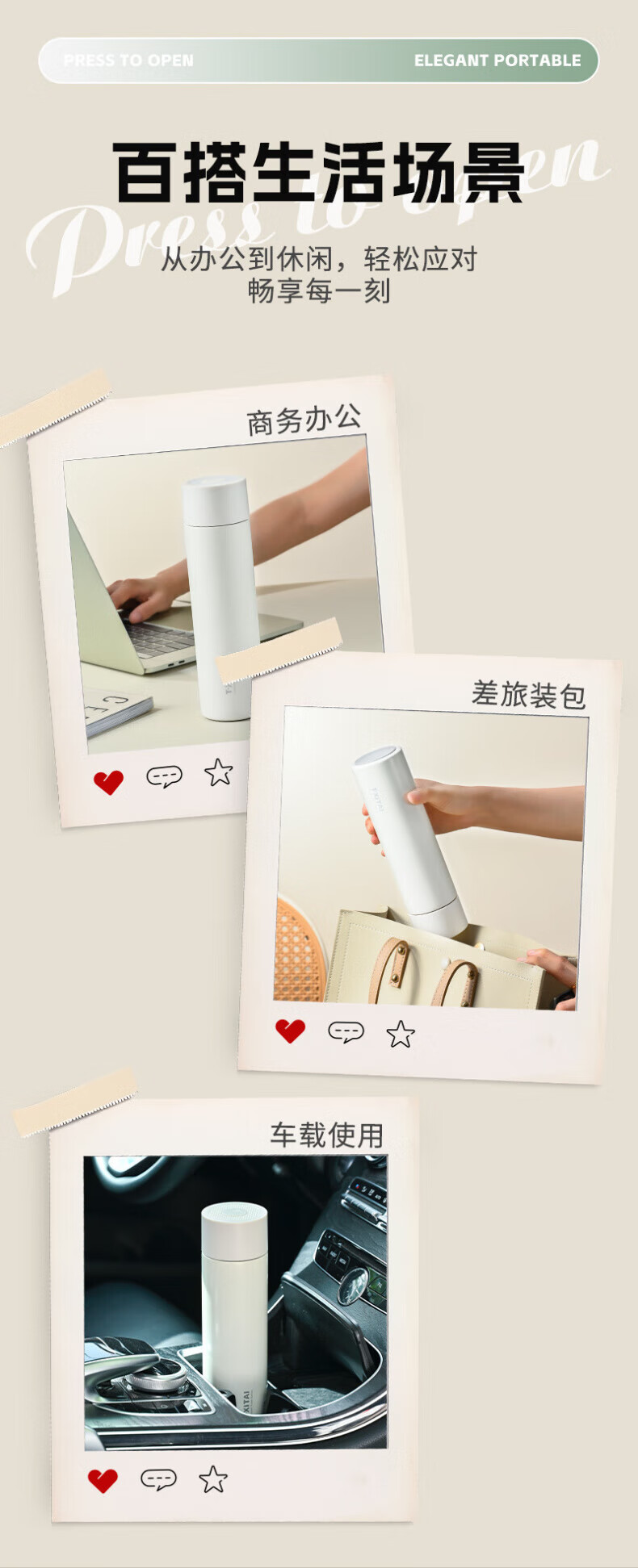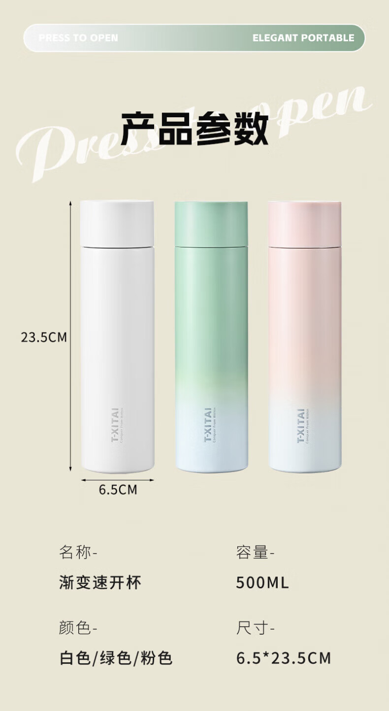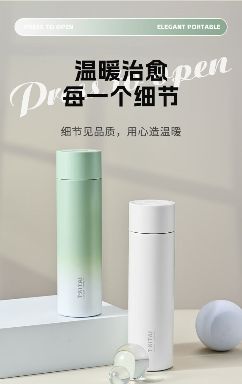 WFFPM德国品牌316不锈钢保温杯男女士一键速开车载便捷办公上学用水杯 绿色 500ml