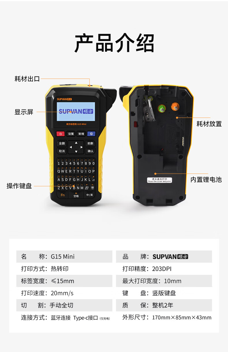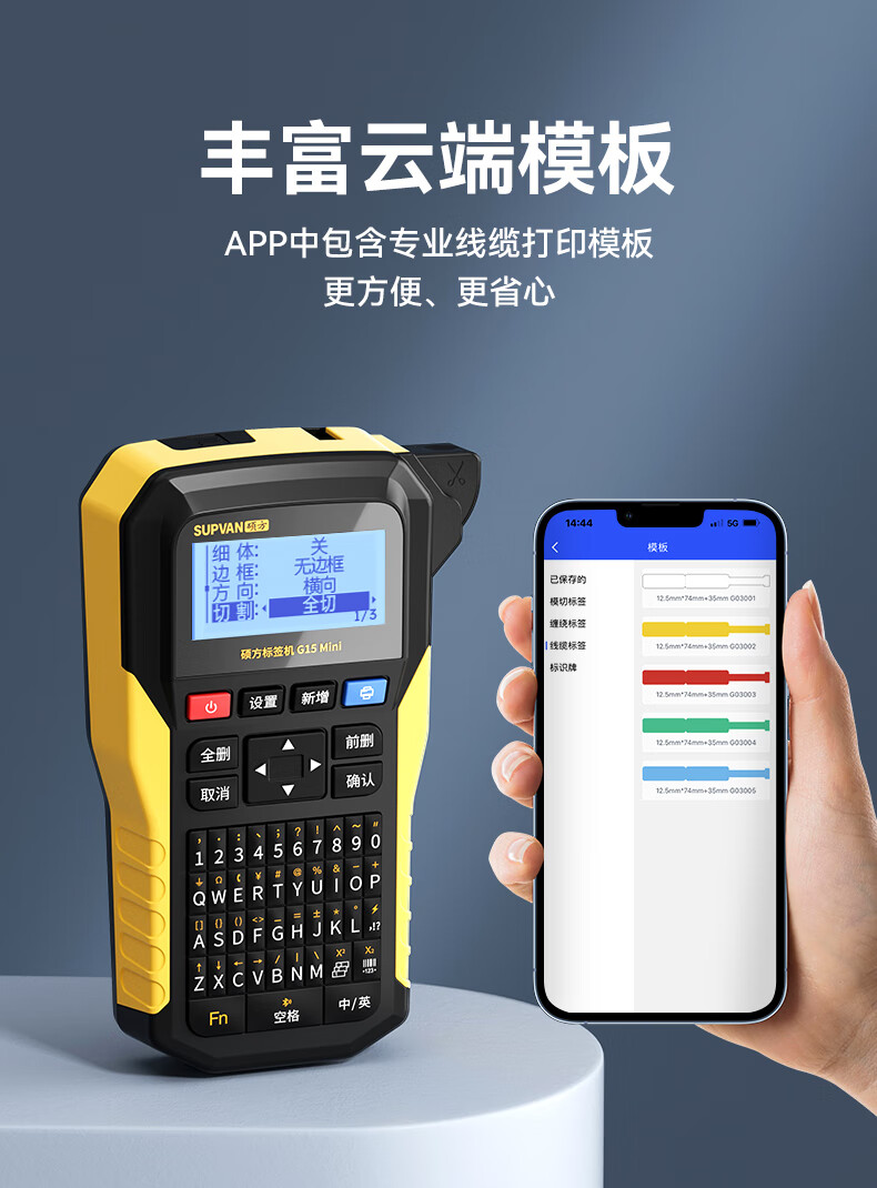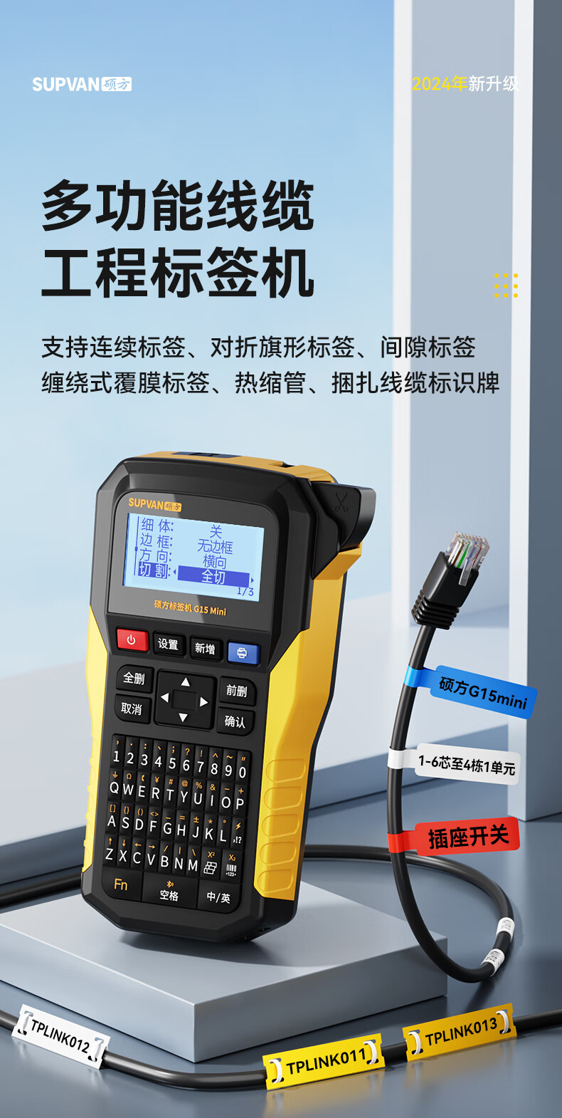 硕方G15Mini标签机热缩管线号打印机 热转印标牌线缆标签打印机多功能家用收纳通信办公无墨打印机