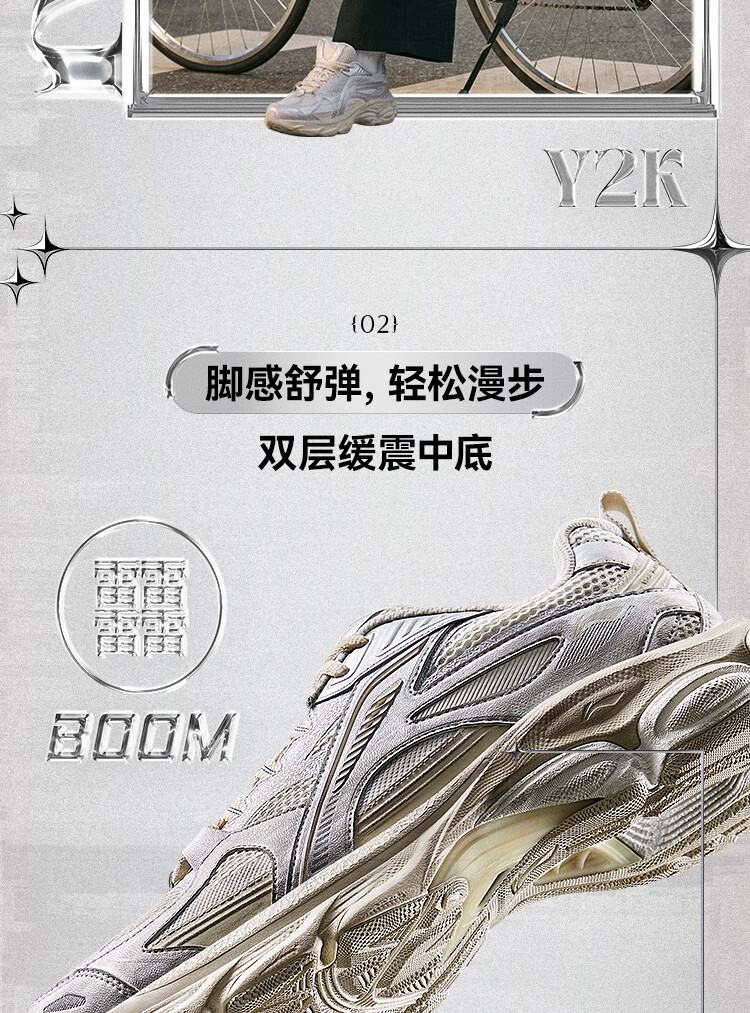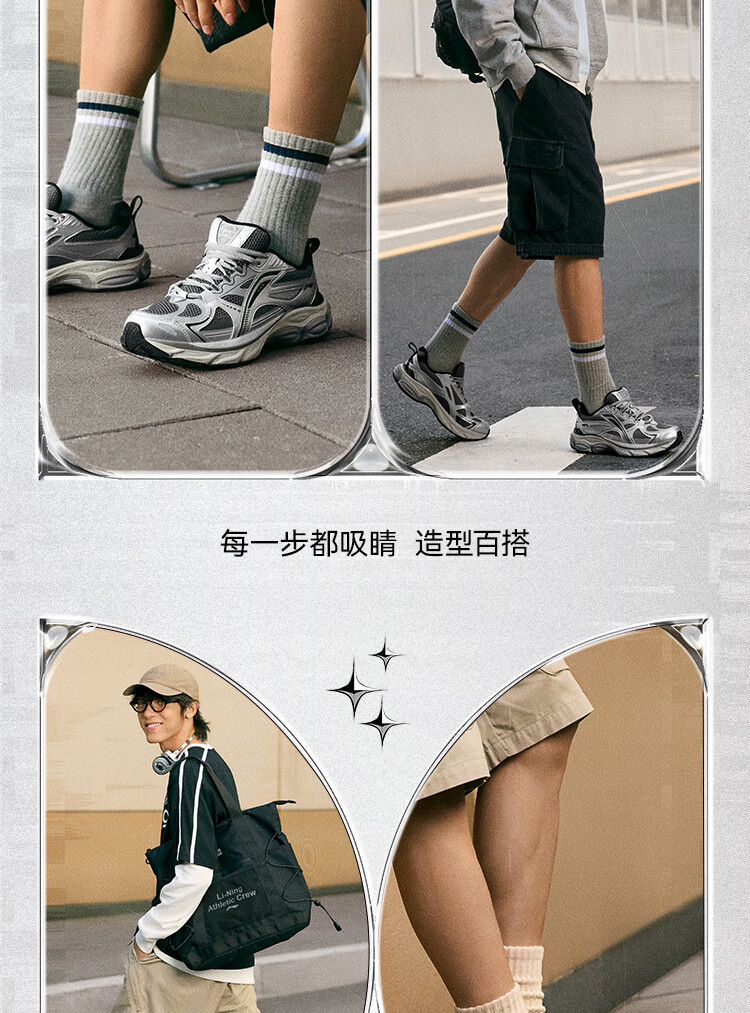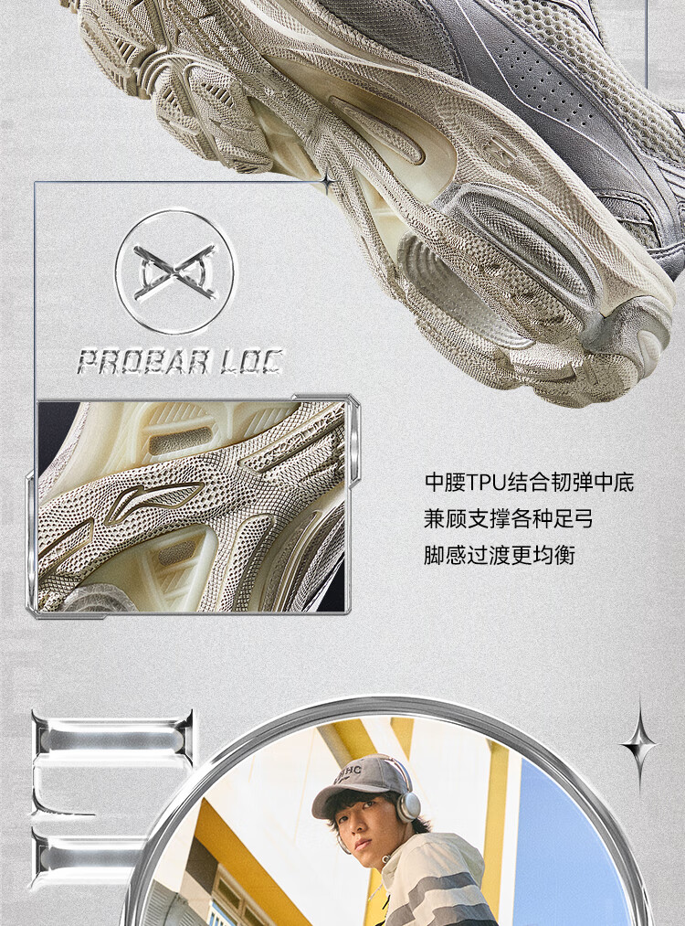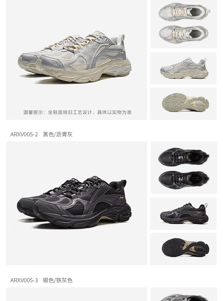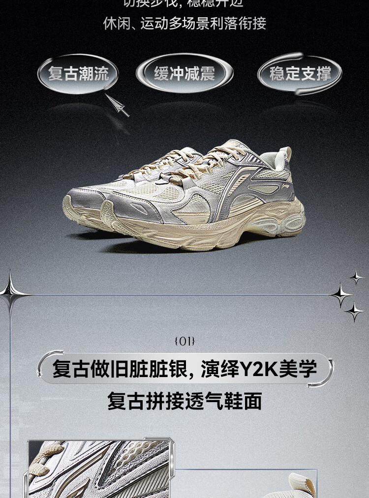 李宁扶摇BOOM丨老爹鞋男子冬季轻量高回弹复古跑步鞋ARXV005