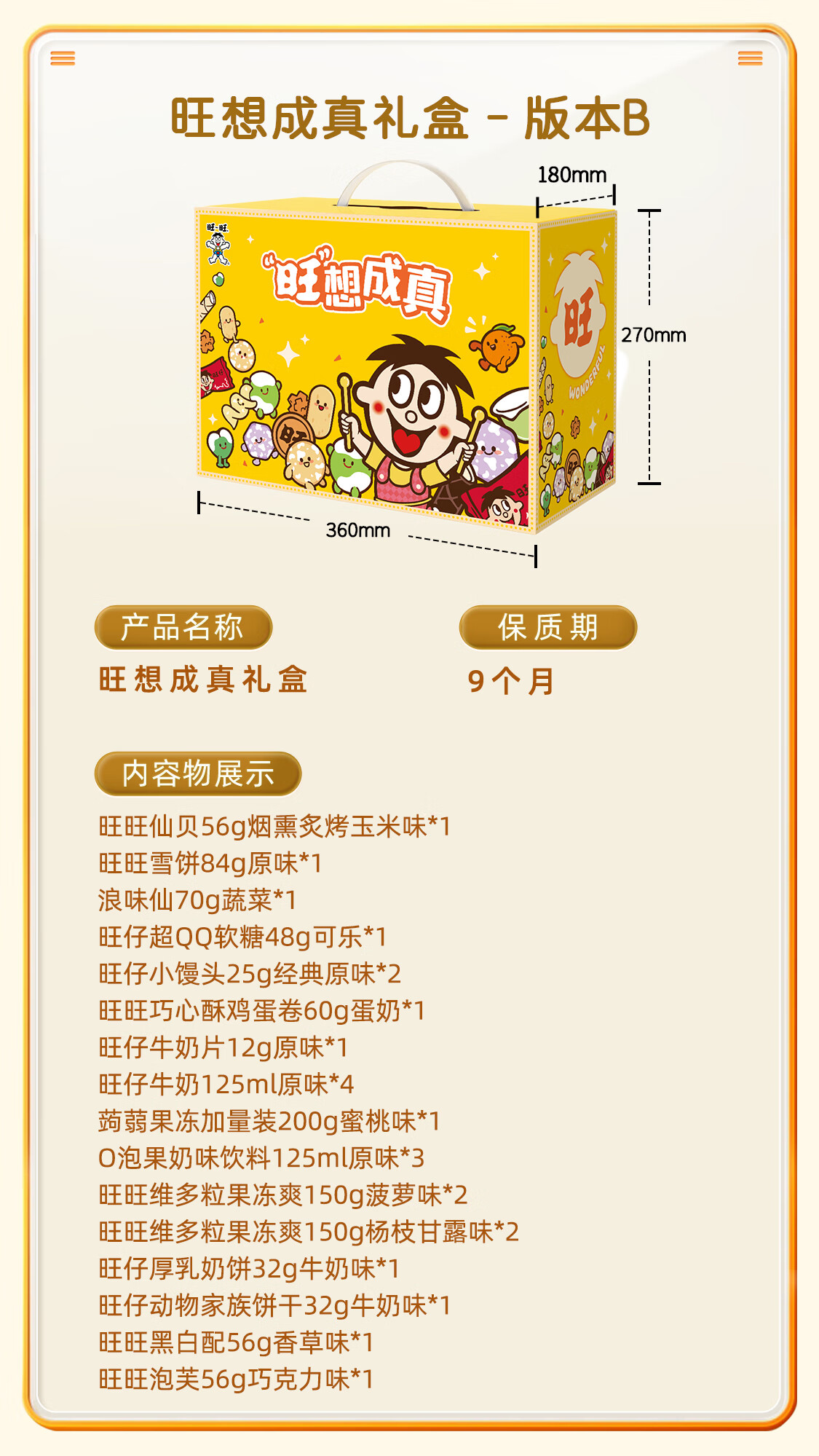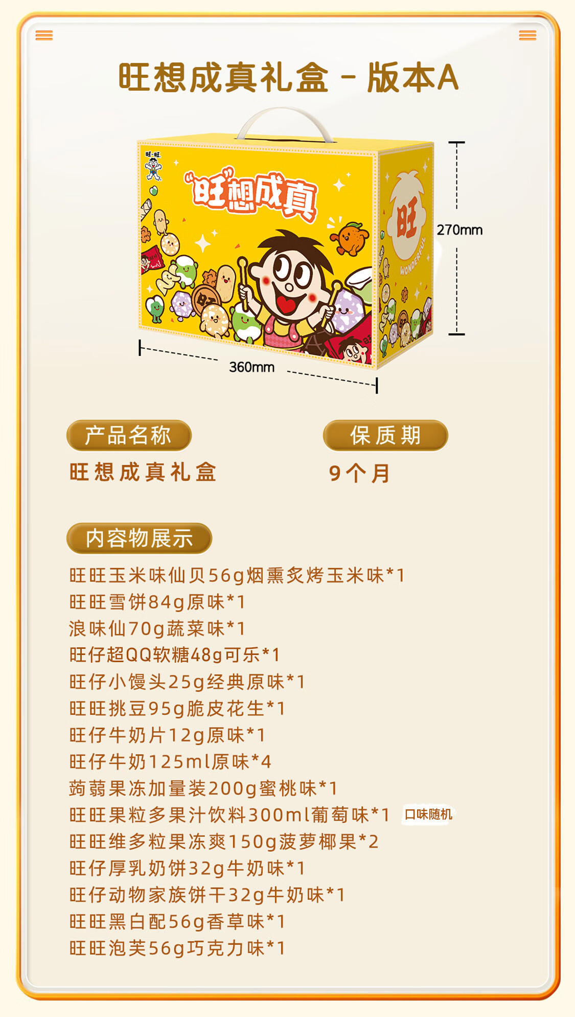 旺旺零食大礼包旺想成真礼盒1.88kg休闲零食团购年节礼品旺旺大礼包 旺想成真礼盒1.88kg
