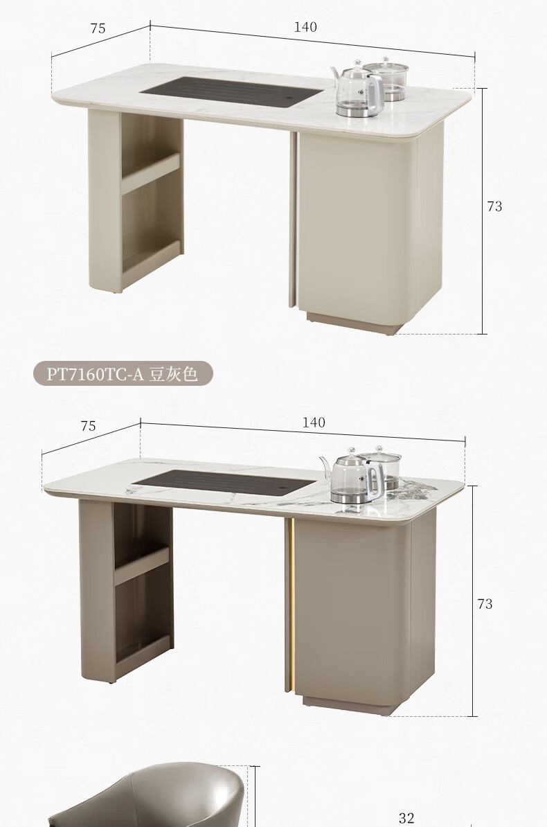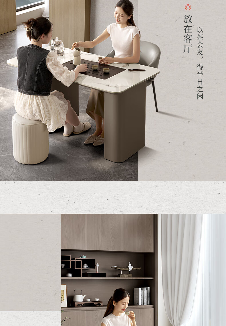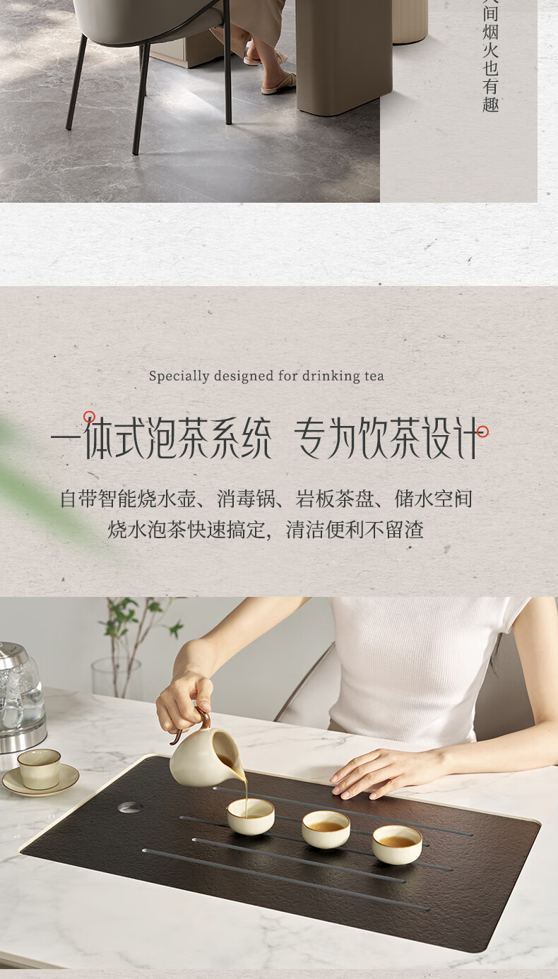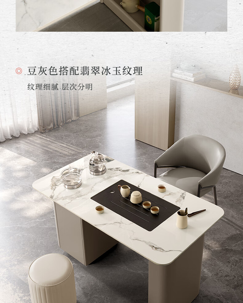 顾家家居(KUKA)现代茶桌客厅多功能茶台带茶盘一体化PT7160TC豆灰色茶桌+主人椅