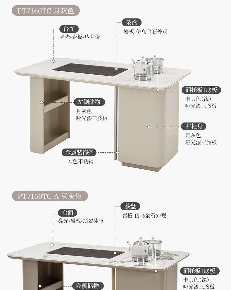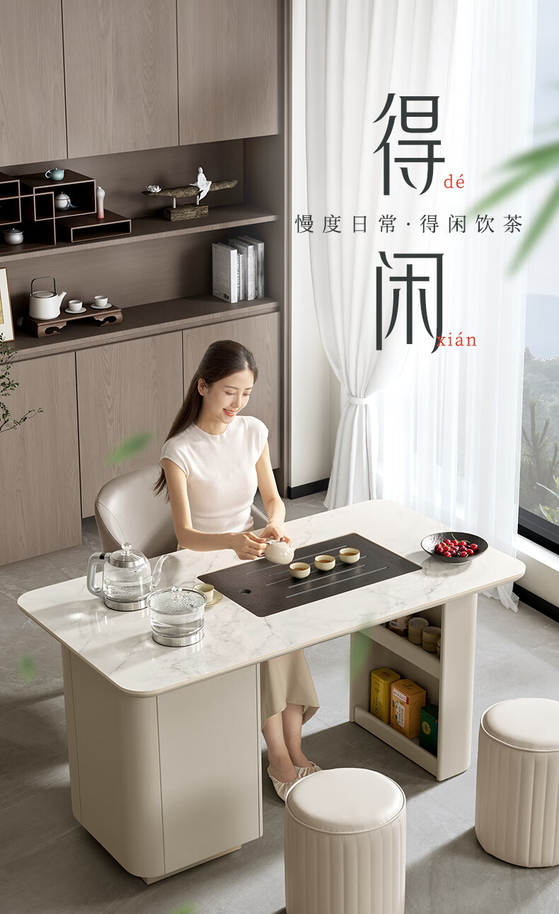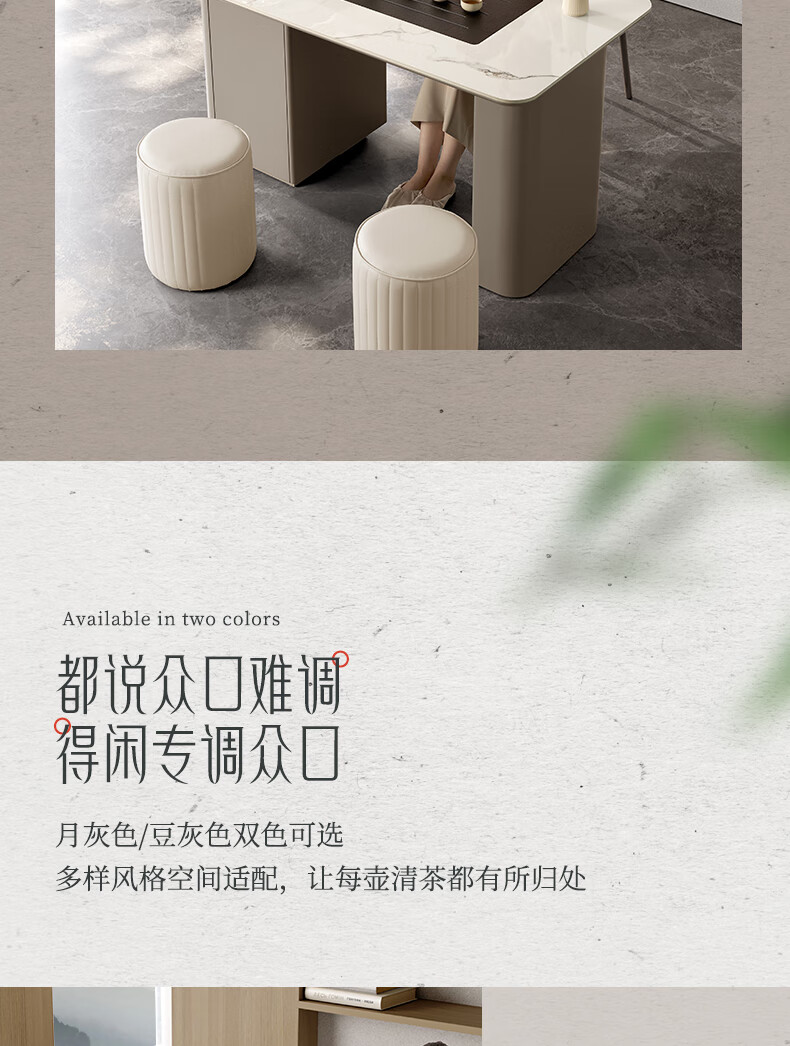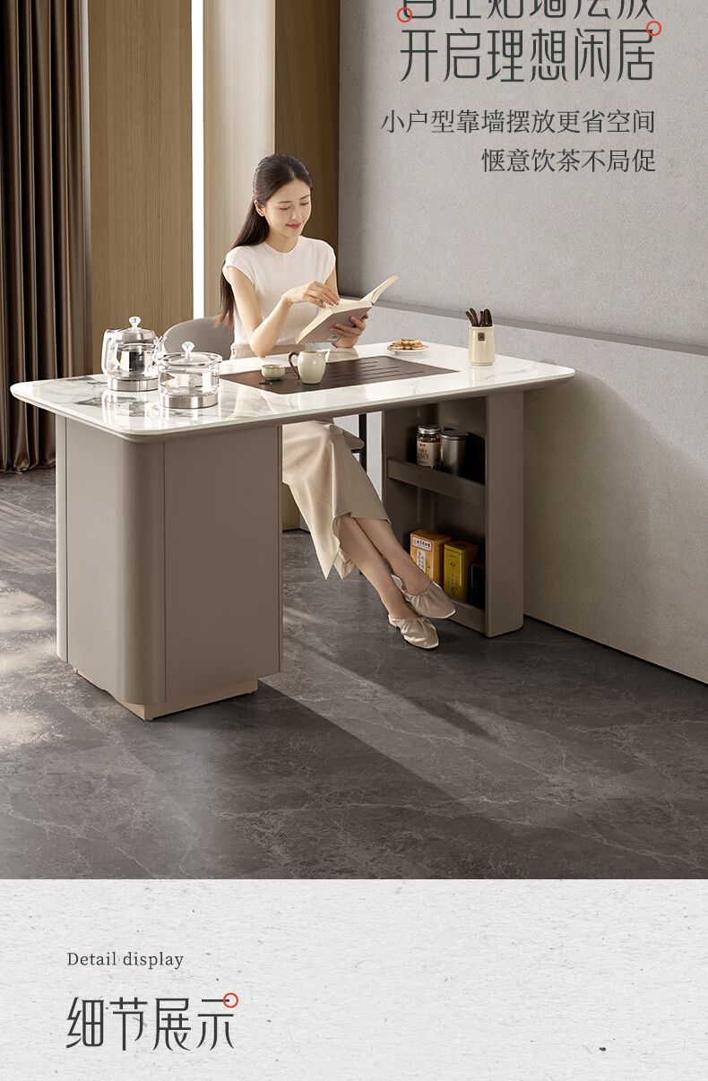 顾家家居(KUKA)现代茶桌客厅多功能茶台带茶盘一体化PT7160TC豆灰色茶桌+主人椅
