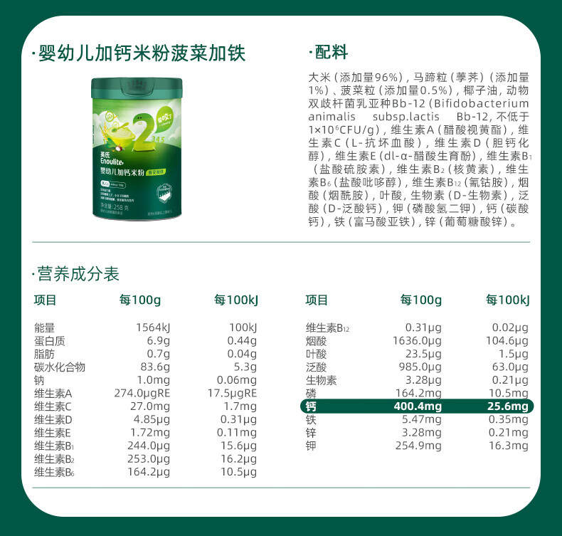 英氏米粉罐装套组婴幼儿高铁米粉6-12个月辅食宝宝营养米糊 1阶6月+第一口选维C加铁 258g*1罐