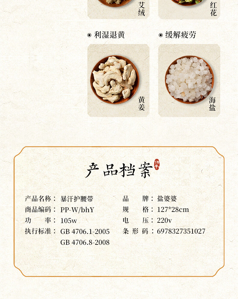 盐婆婆盐袋热敷包电加热理疗盐袋子艾灸艾草粗海盐热敷包暖宫腰带暴汗 【廿八味备案配方】热奄护腰带