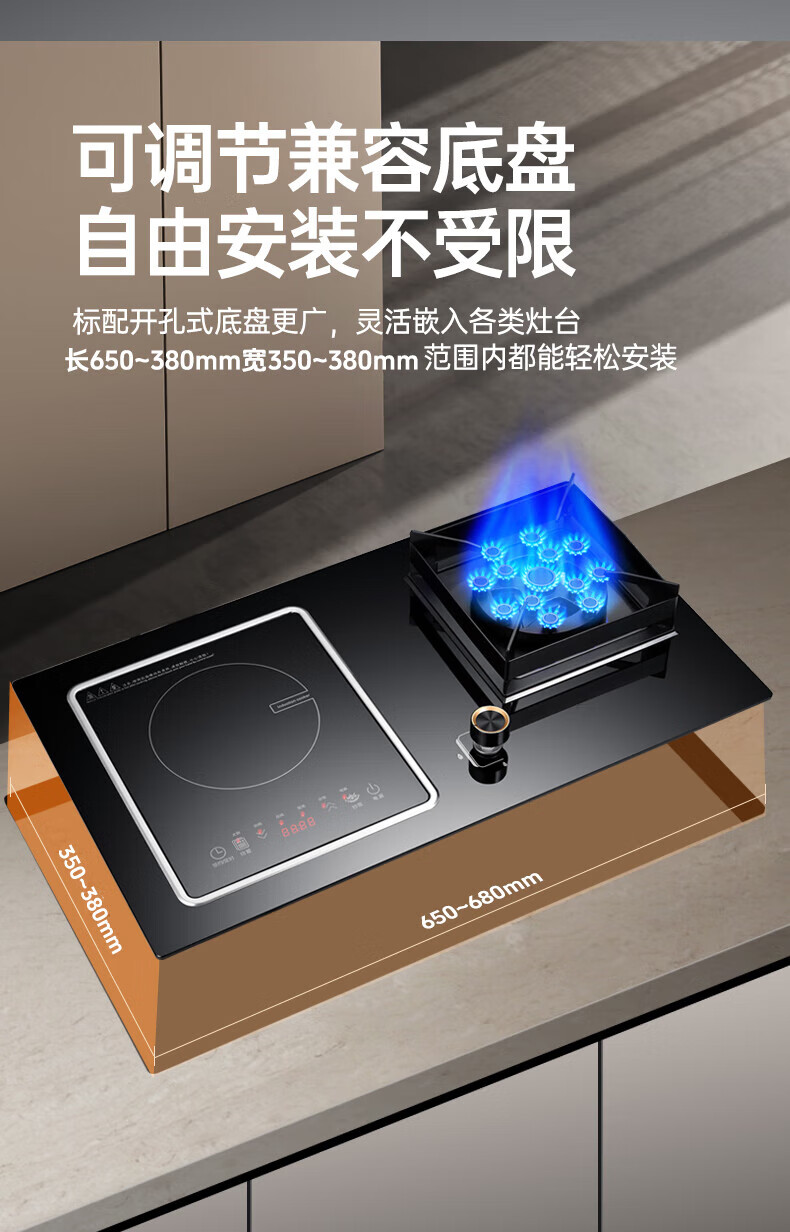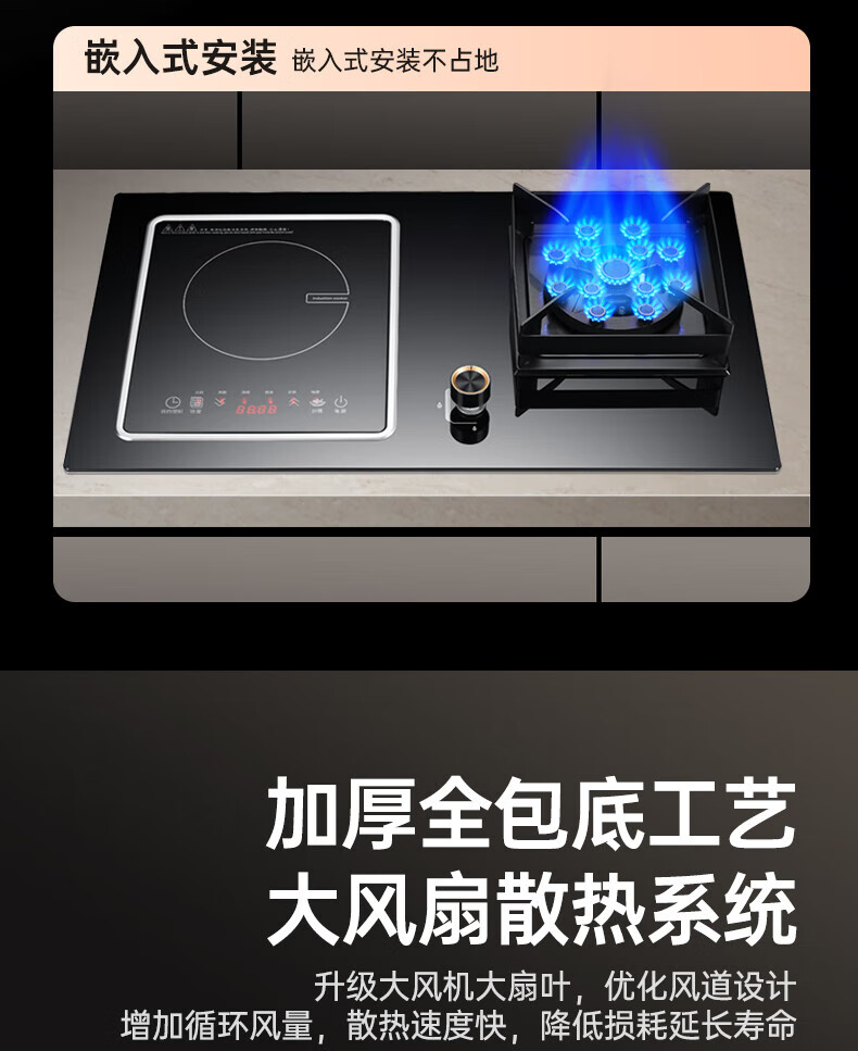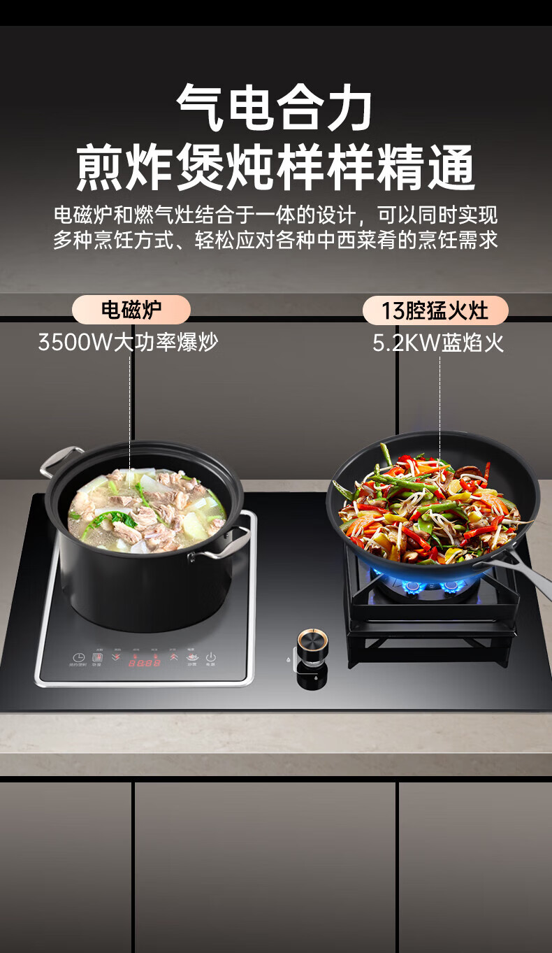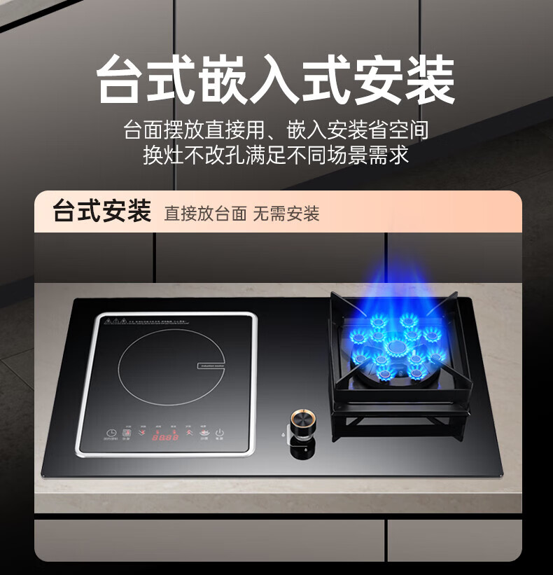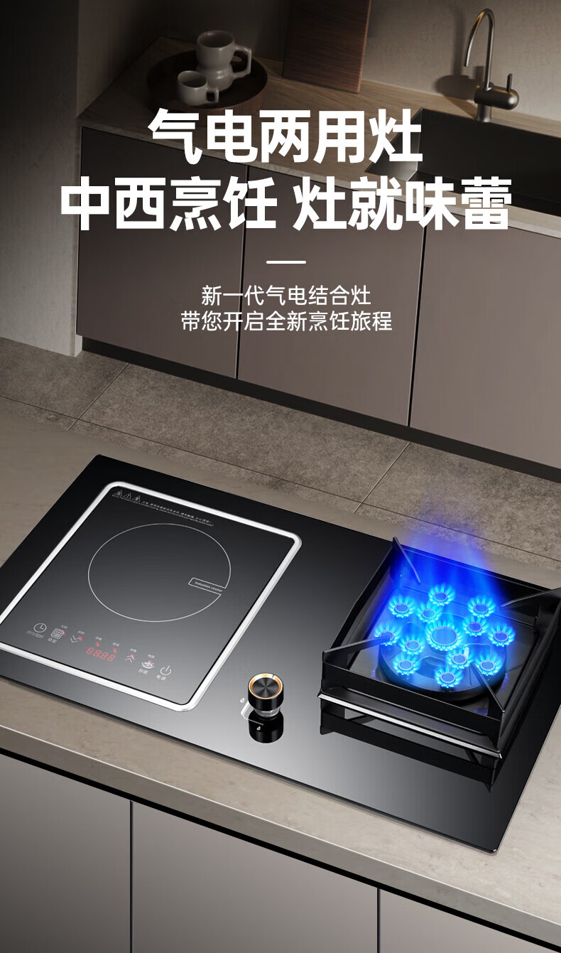 TOYO日本東洋有限公司家用气电两用灶一气一电两用灶电气两用燃气灶一体电磁炉燃气灶猛火灶炉灶煤气罐 【左电右气】9腔灶-3500W电磁炉 天然气