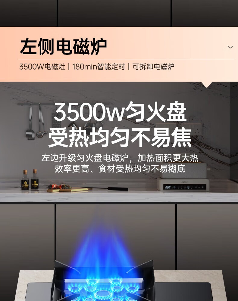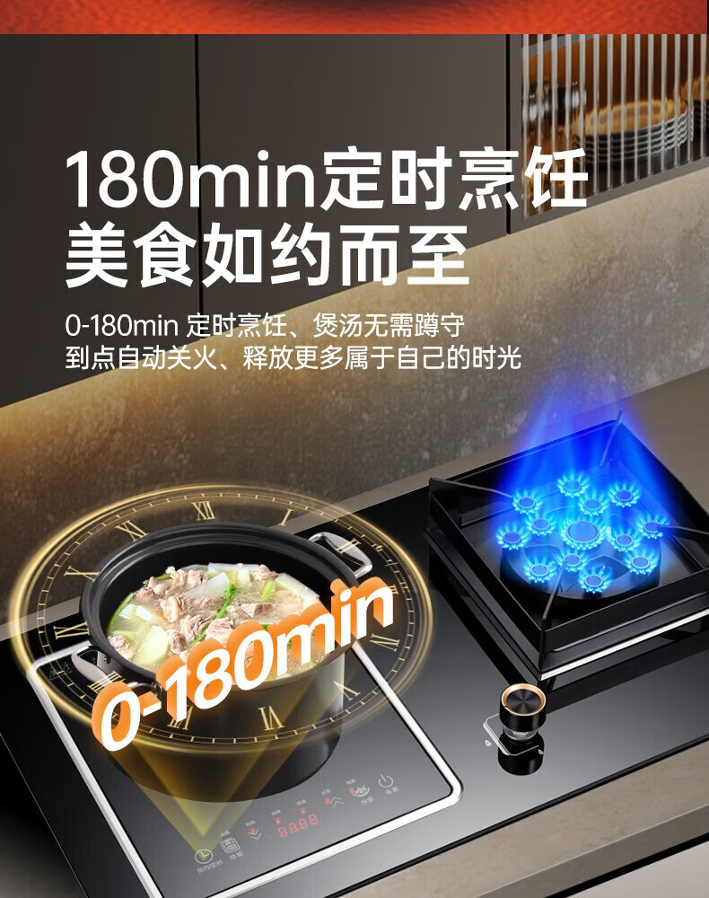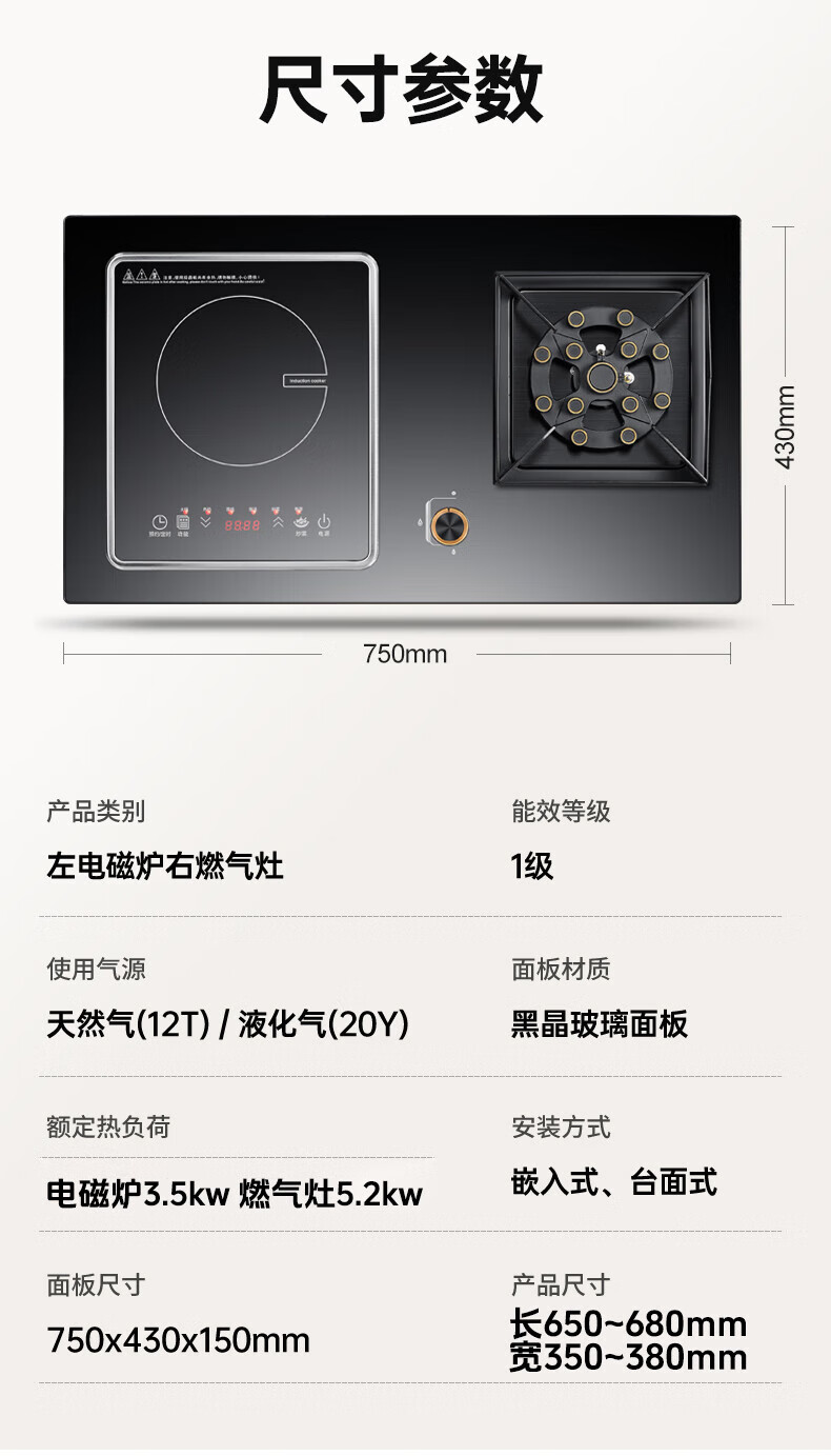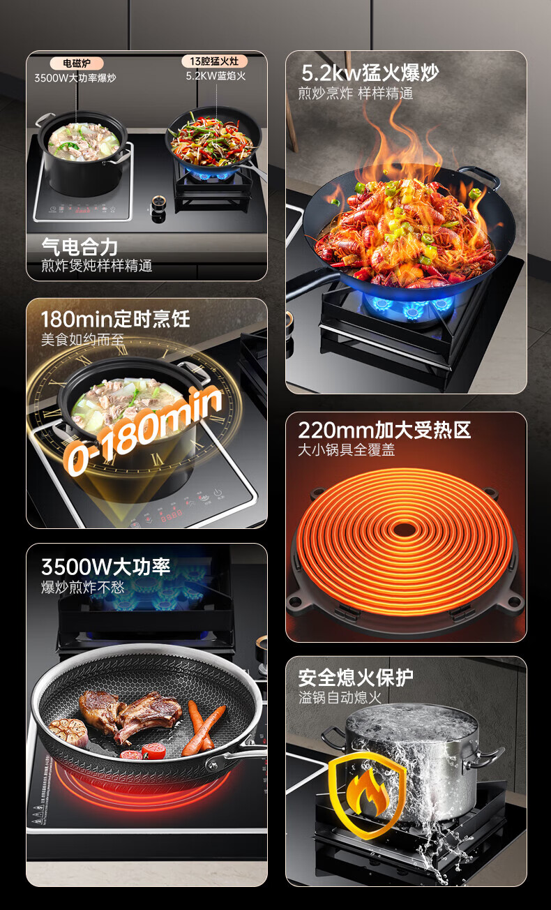 TOYO日本東洋有限公司家用气电两用灶一气一电两用灶电气两用燃气灶一体电磁炉燃气灶猛火灶炉灶煤气罐 【左电右气】9腔灶-3500W电磁炉 天然气