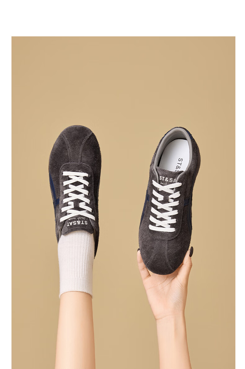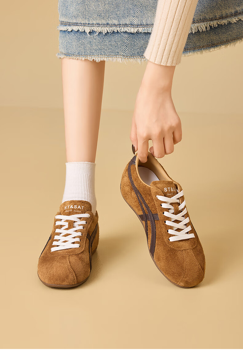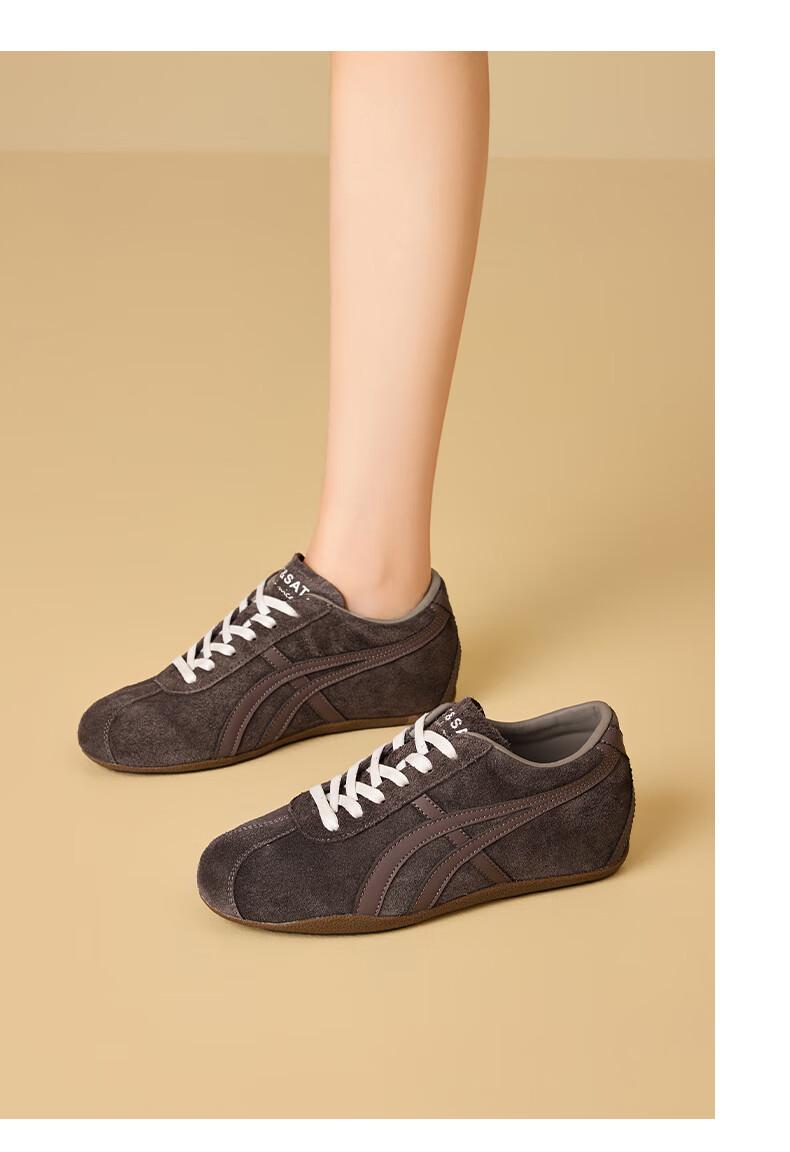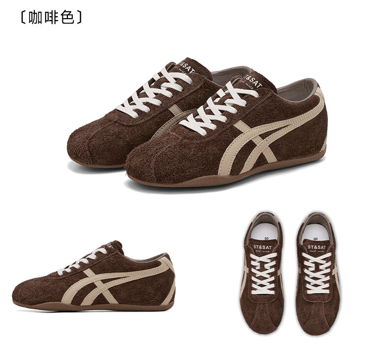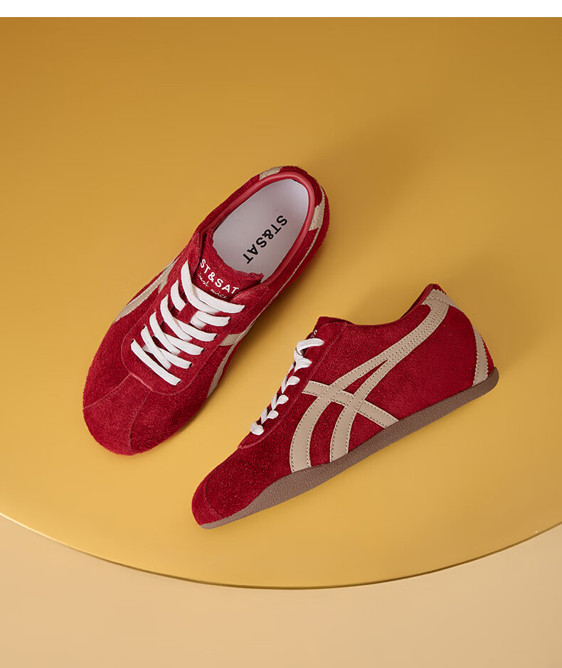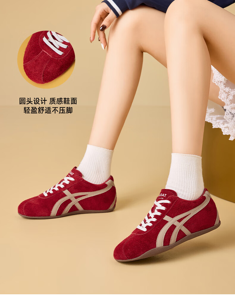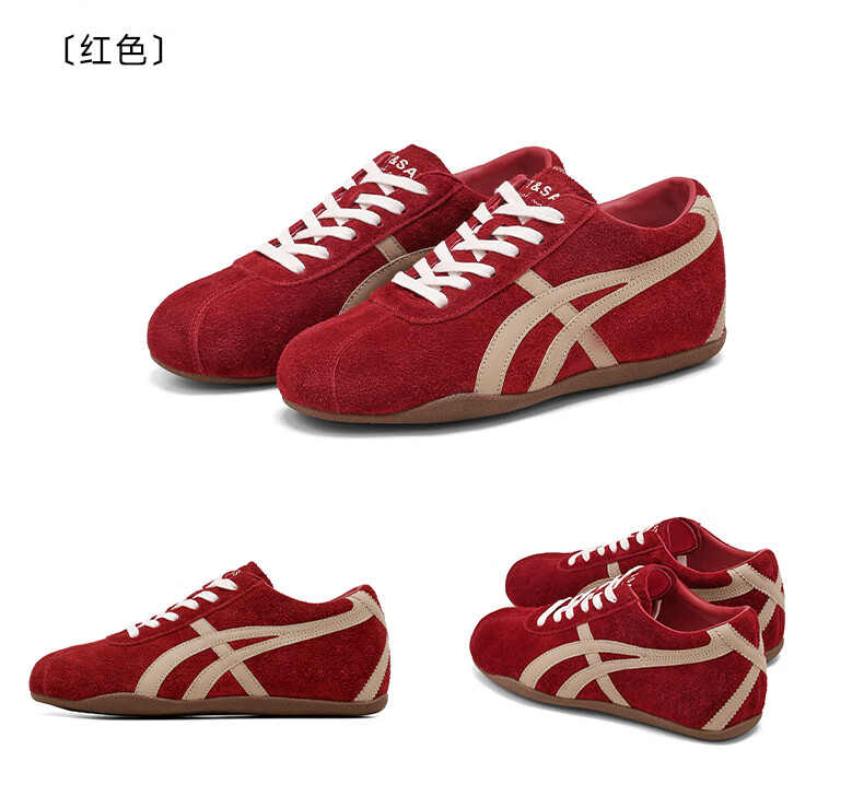 星期六红色德训鞋女2025新款秋季女鞋爆款复古百搭增高阿甘运动鞋 红色 37