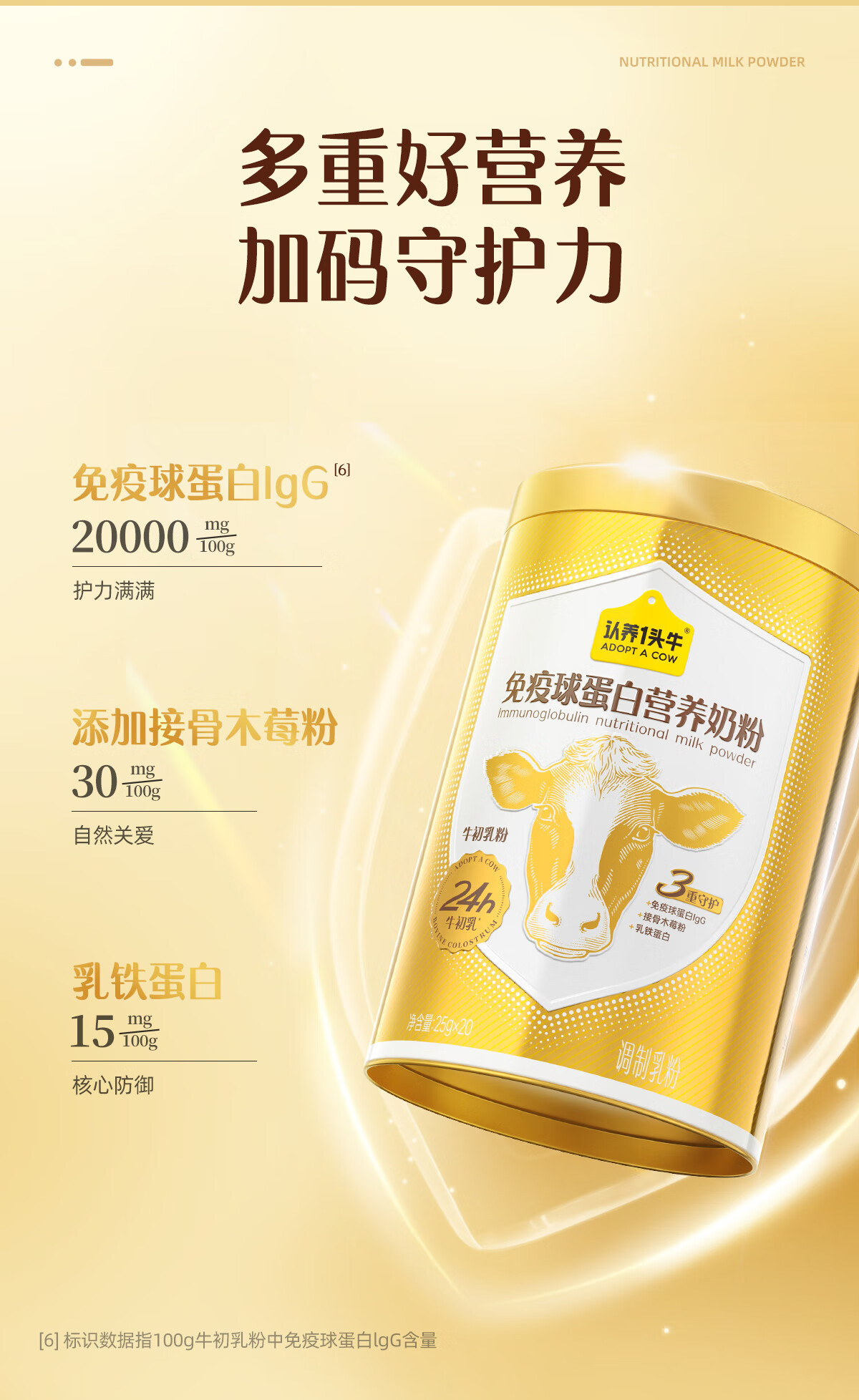 认养一头牛24h黄金牛初乳 免疫球蛋白儿童成人高钙营养奶粉 金装升级25g*1条