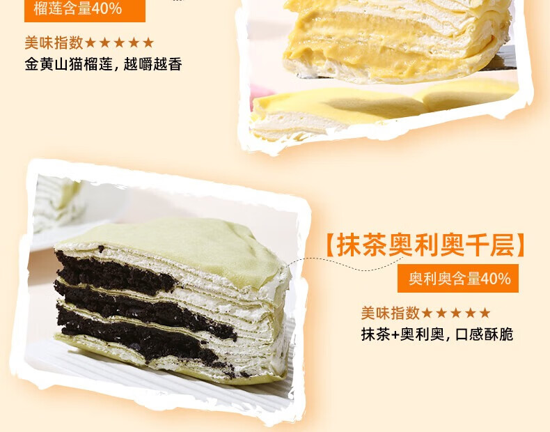 榴食喵猫山王榴莲千层蛋糕小蛋糕千层榴莲蛋糕盒子蛋糕动物奶油西点甜品 榴莲千层400g*1盒【顺丰冷链