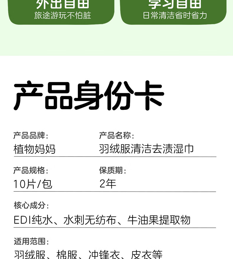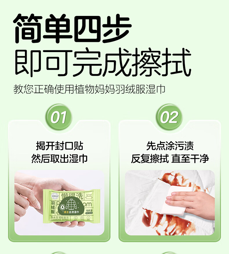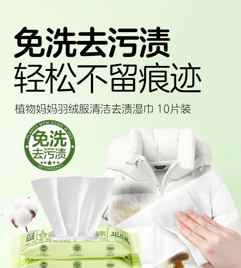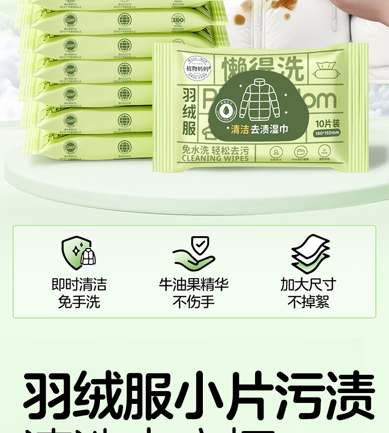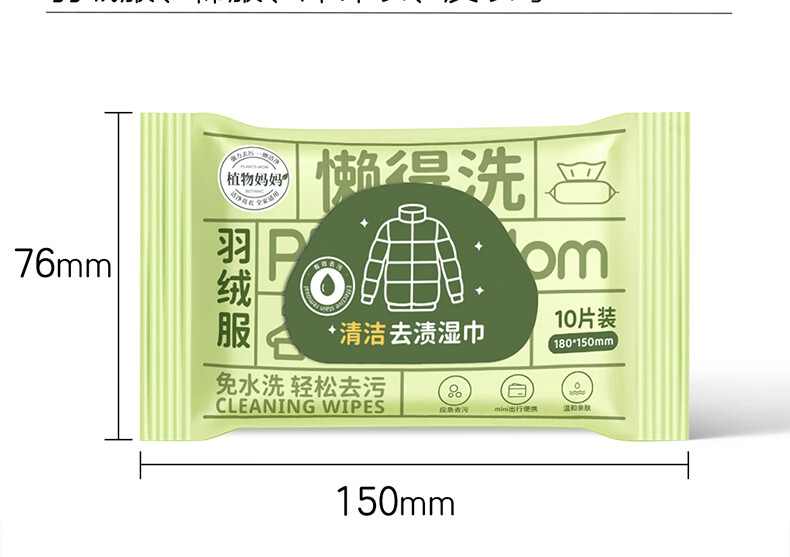 植物妈妈儿童羽绒服湿巾 去污免洗衣物去渍专用 【全家够用】 100抽 10包