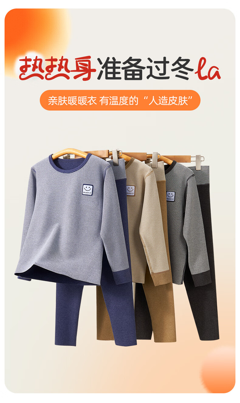 棉致儿童保暖内衣套装无痕男童秋衣秋裤男孩睡衣中大童全棉加绒德秋冬 【蓝色套装+紫色套装】组合2套 170cm 建议体重100-115斤