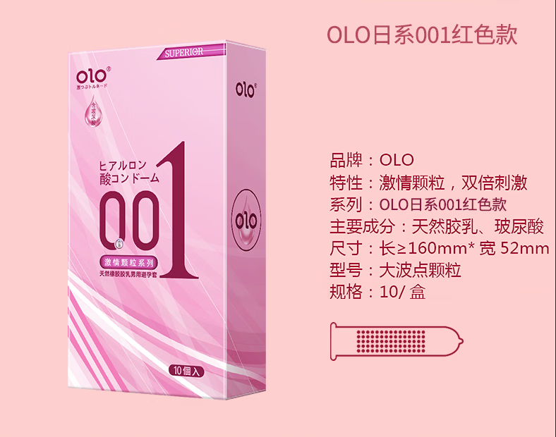 OLO超薄001玻尿酸快感颗粒延时持久安全套001免洗情趣男女成人性用品 【30只】激情颗粒系列*3盒