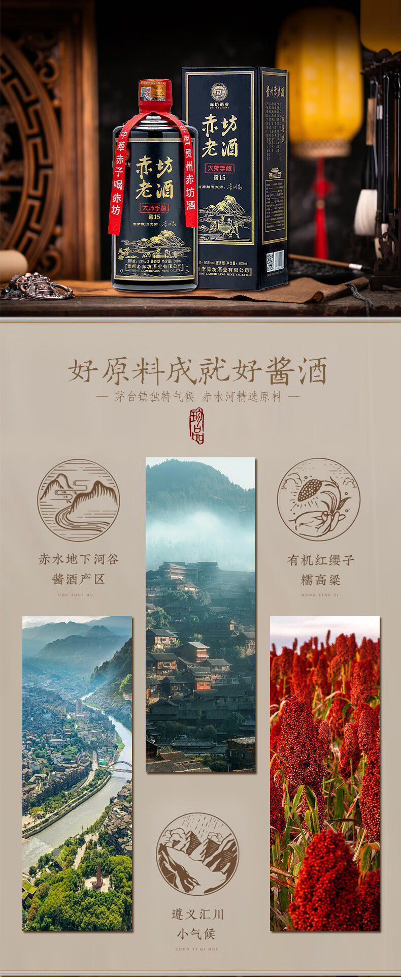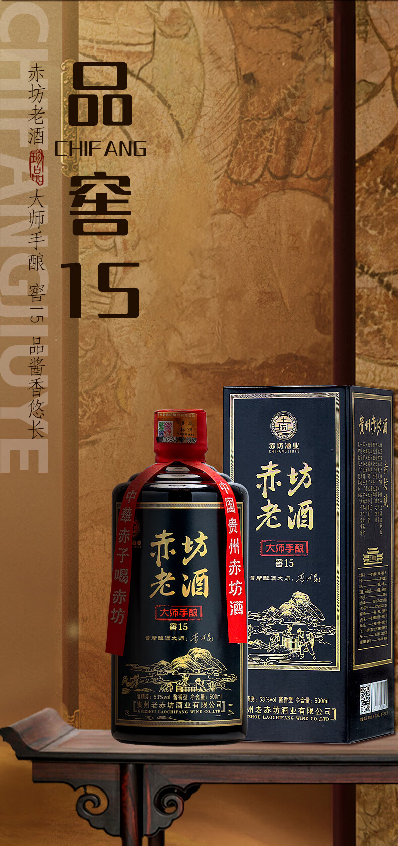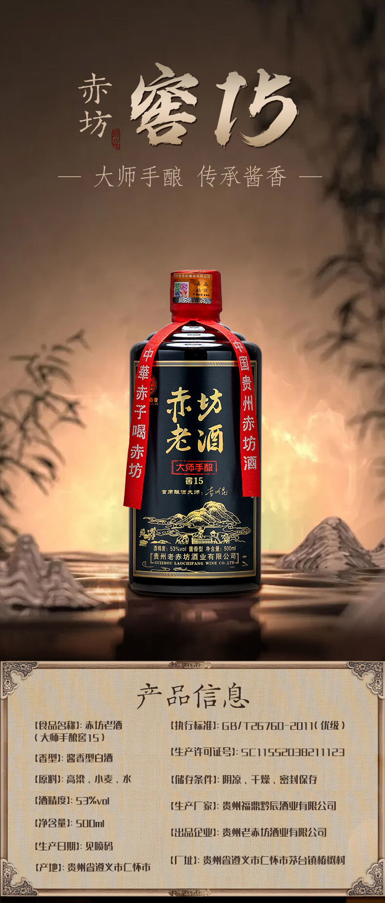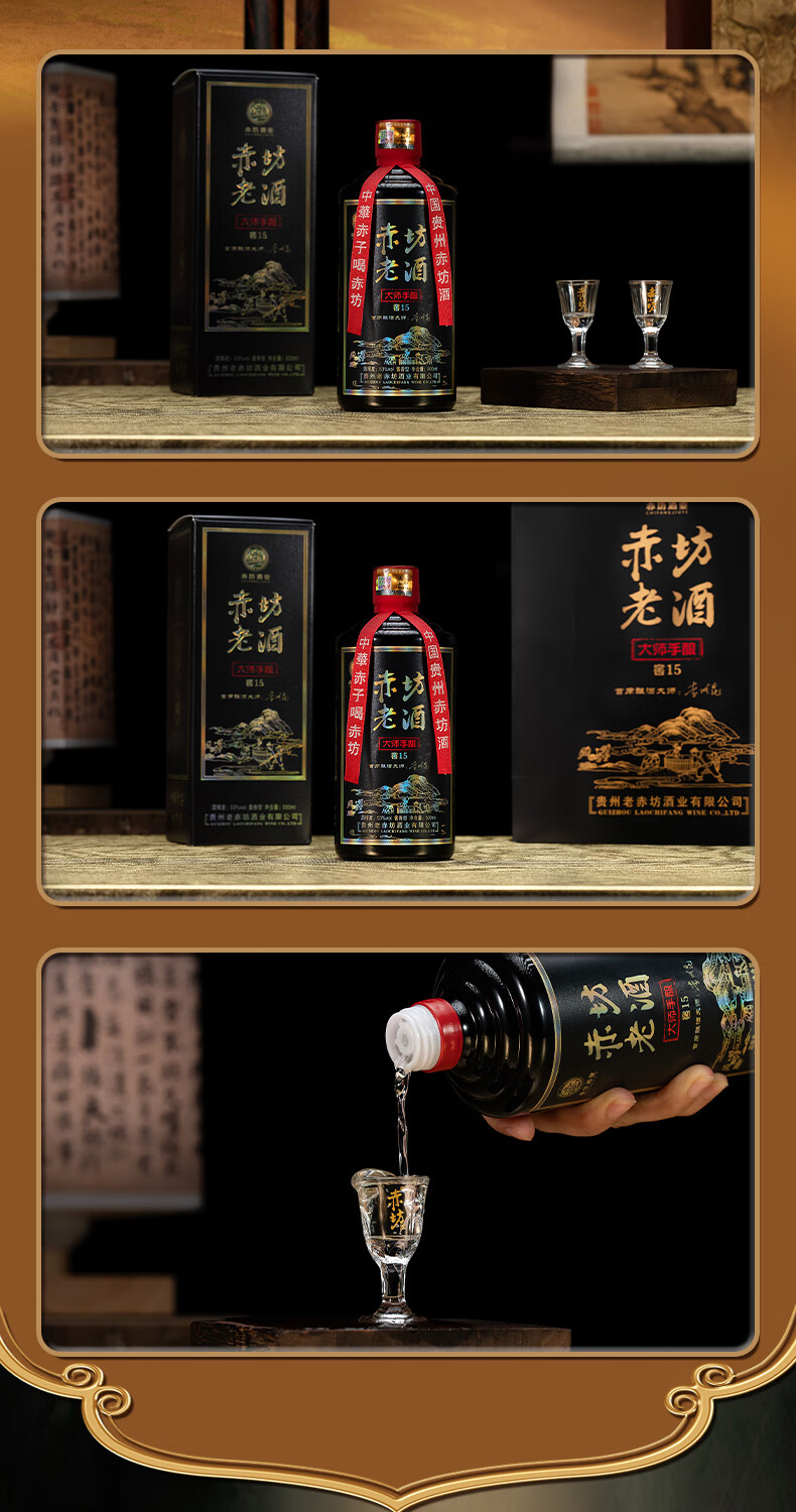 赤坊大师手酿 窖15茅台镇酱香型白酒53度纯粮酿造高粱酒 53度 500mL 2瓶 无礼品袋