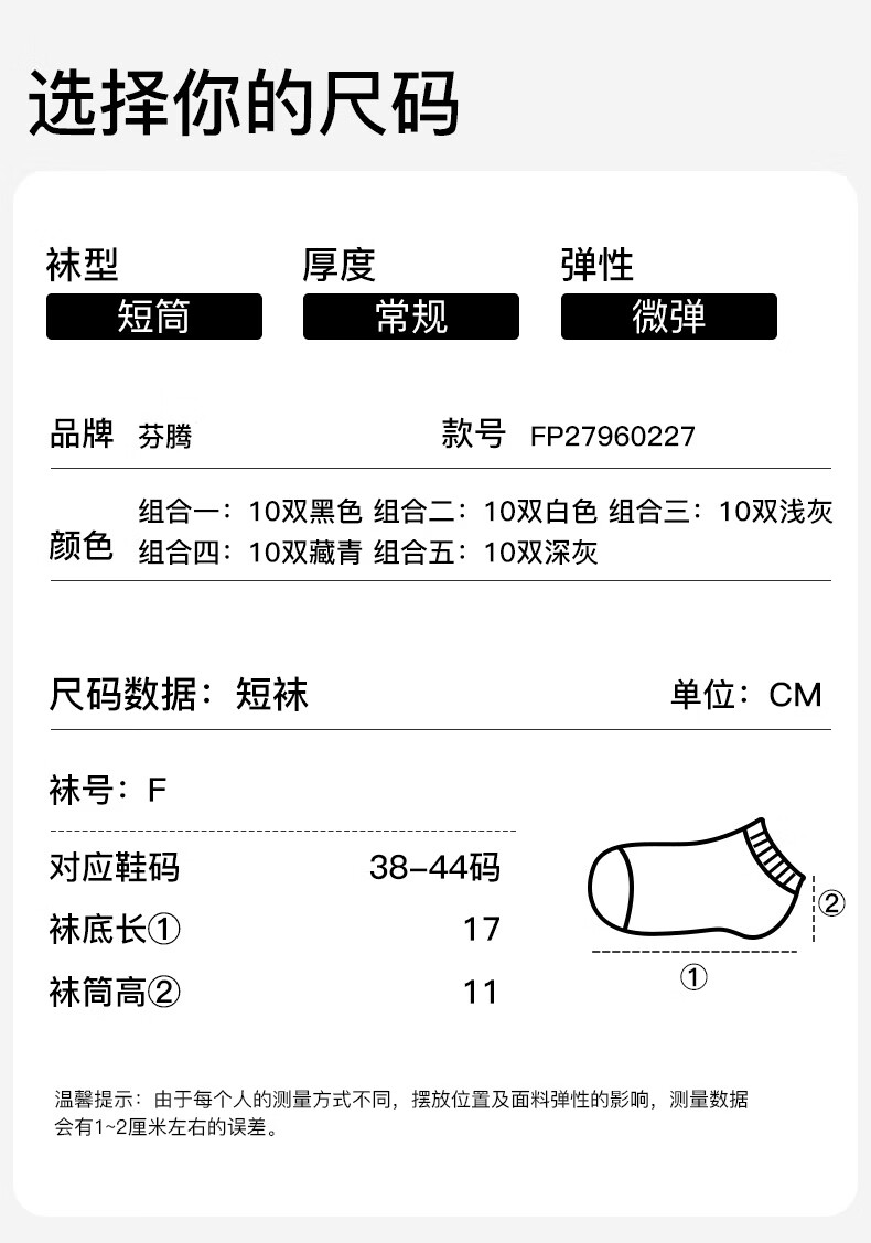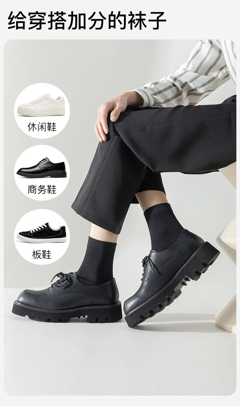芬腾袜子男2025新款10双装商务休闲柔软透气短筒袜免洗出差 黑色 10双 均码