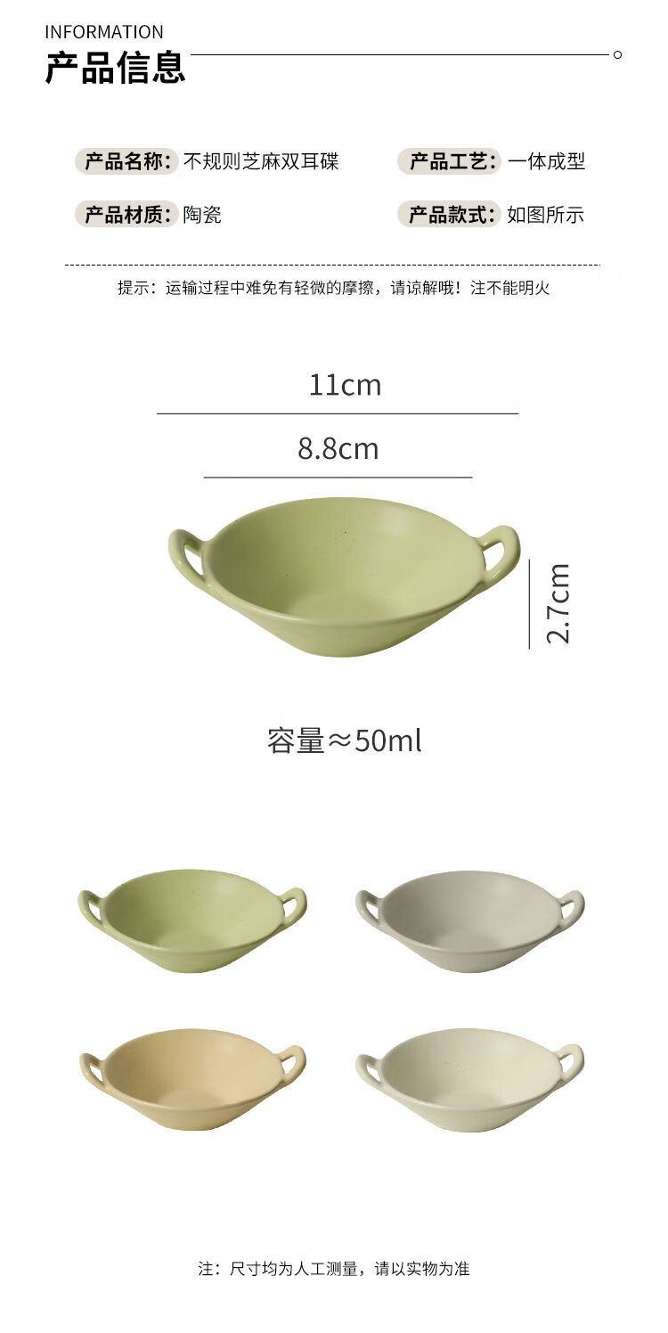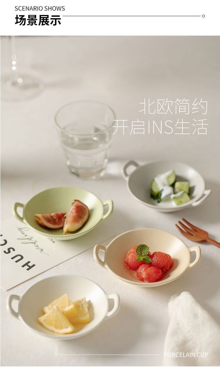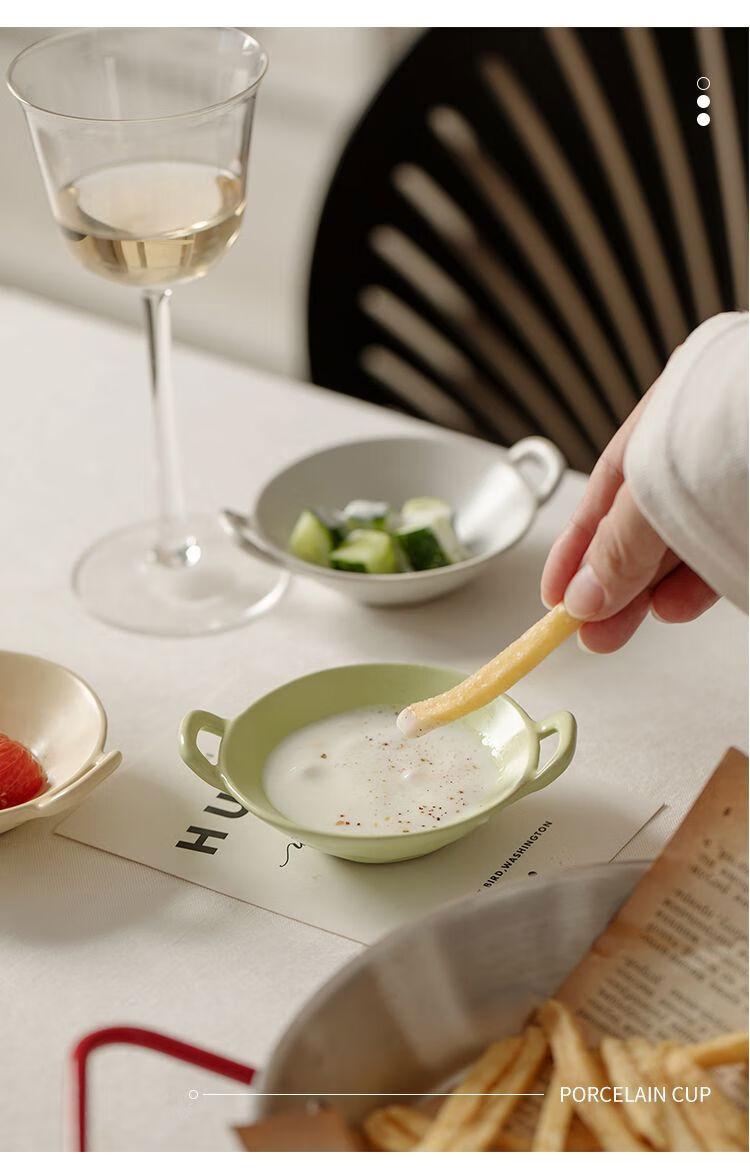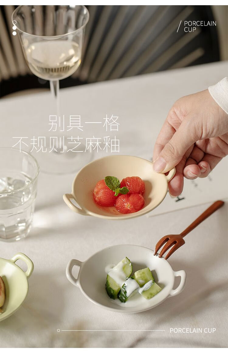 蘸料碟味碟调料碟小碟子调味碟酱料碟小号碗ins陶瓷家用INS风餐具 迷你双耳锅绿色1个装
